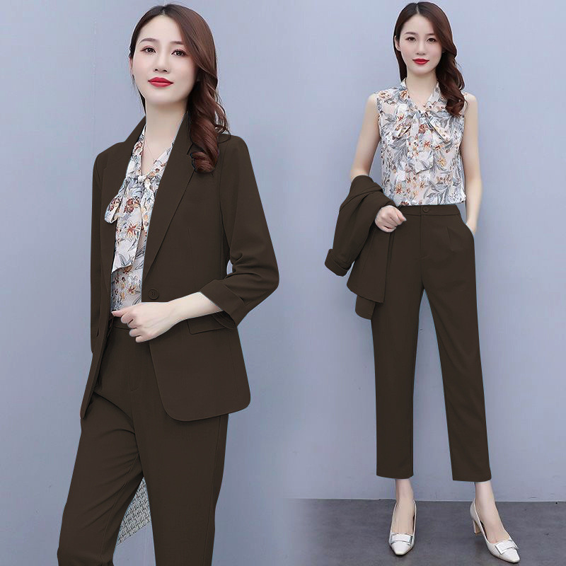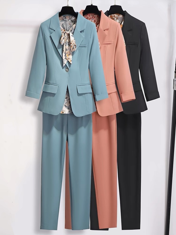 2025 새로운 작은 세트 세트 봄과 가을 전문 착용 슬림 핏 세트 재킷 3 피스 우아한 패션 작업 옷스토어 가기
