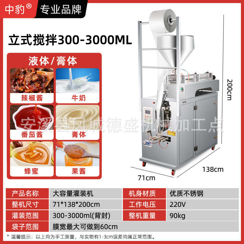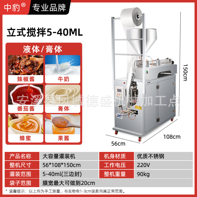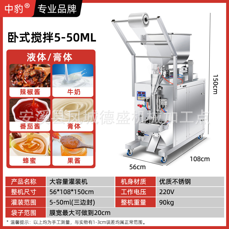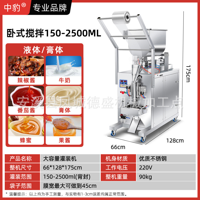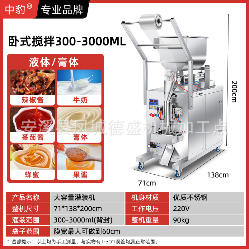 자동 액체 포장 기계 우유 한약 아이스 백 칠리 소스 조미료 물 꿀 물 양적 충전 기계 상업스토어 가기