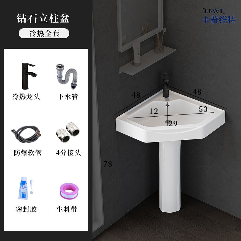 • 48*48 [삼각형] 기둥 세면대 - 냉온수 풀세트 (단냉 비고)