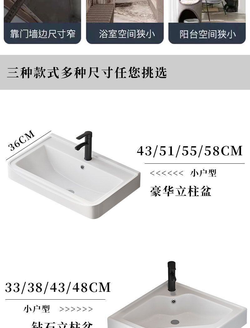 새로운 칼럼 분지 욕실 싱크 세라믹 싱크 싱크 욕실 작은 아파트 싱크 분지 통합스토어 가기