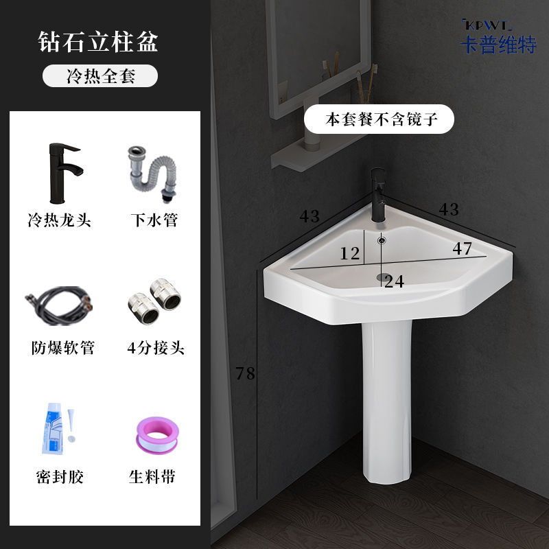 • 48*48 [삼각형] 기둥 세면대 - 온냉 풀세트 + 거울 (싱글 냉수 비고)