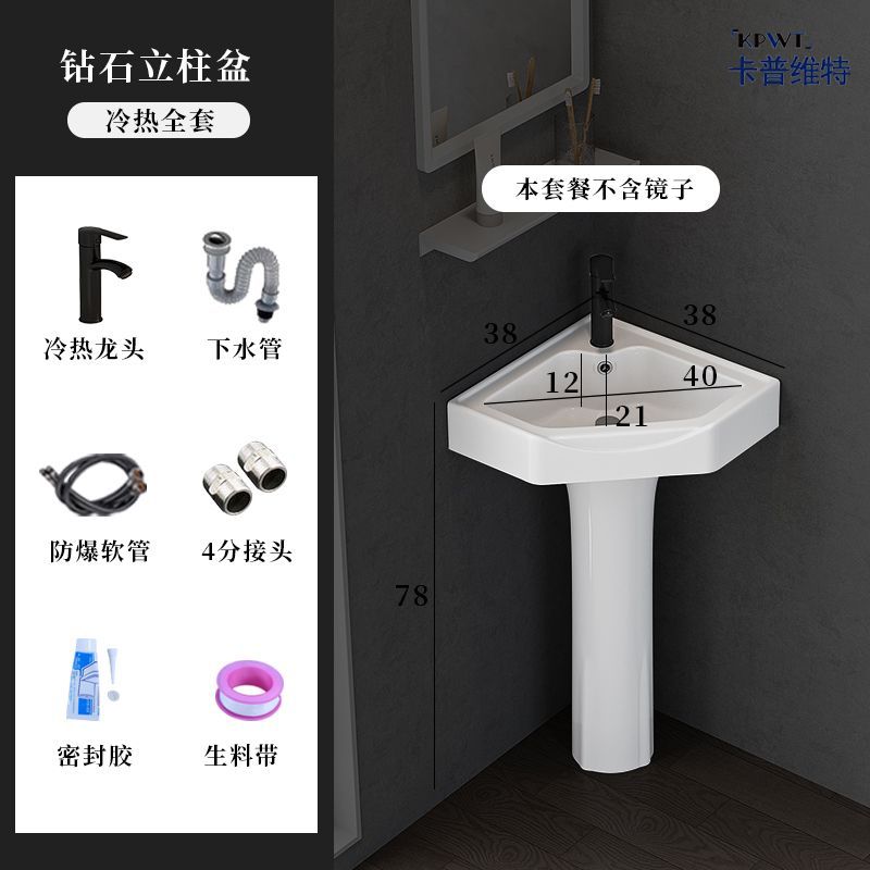 • 38*38 [삼각형] 기둥 세면대 - 냉온수 풀세트 (단냉 비고)