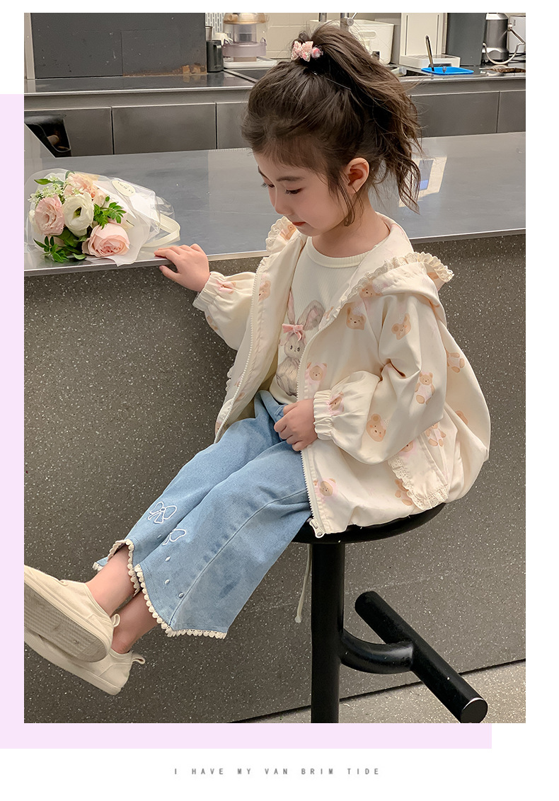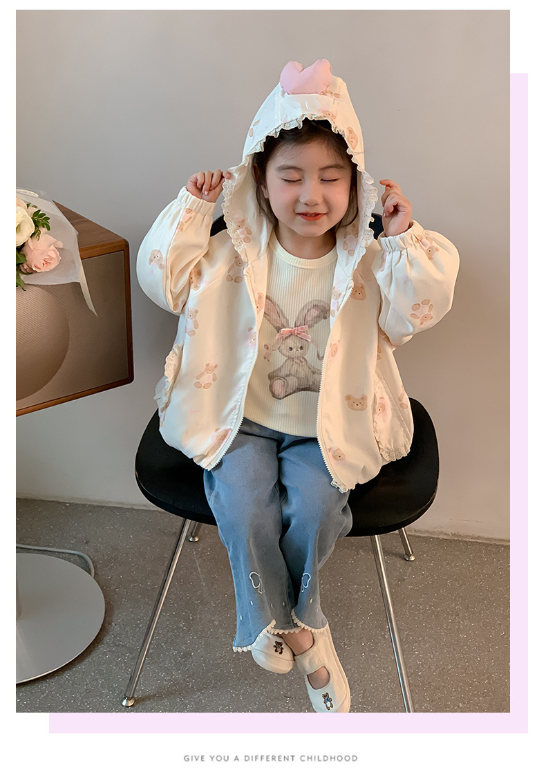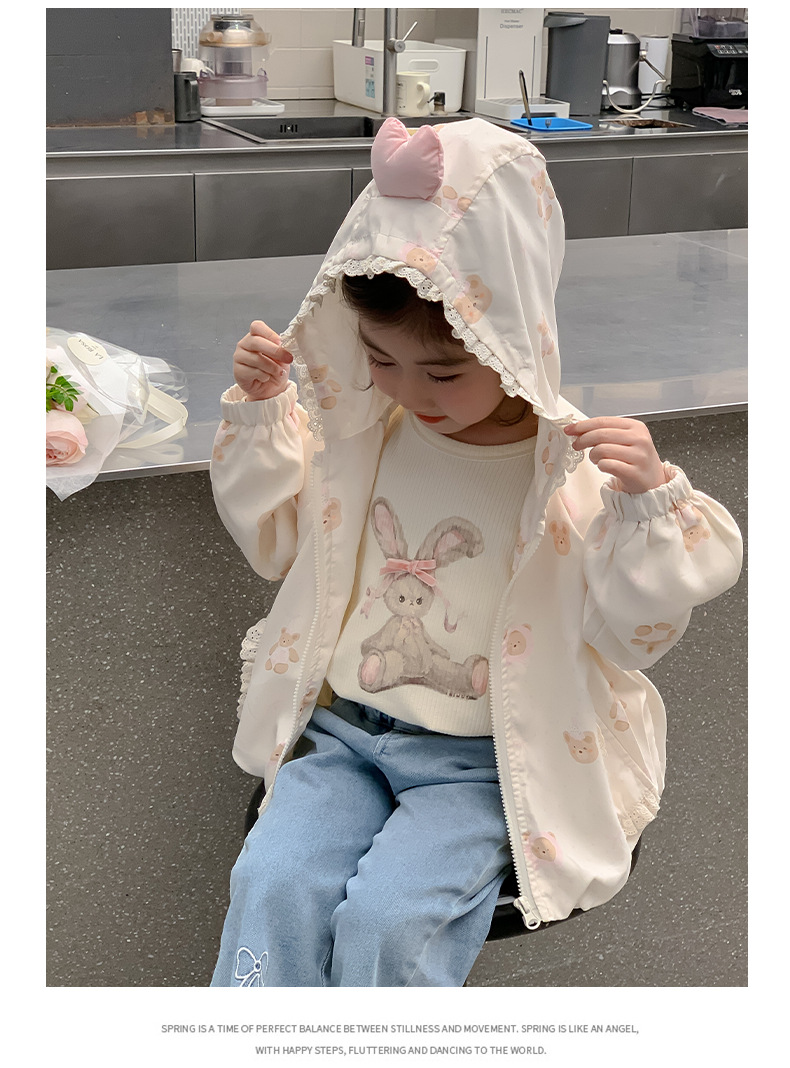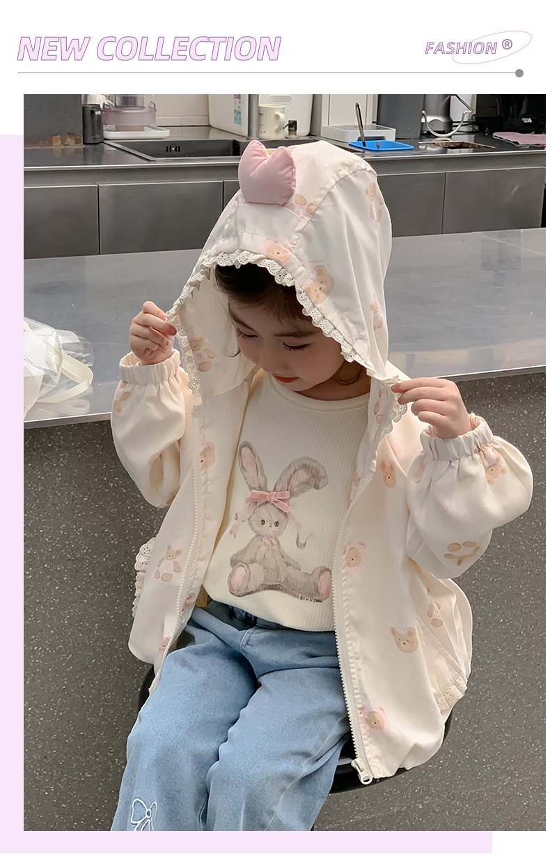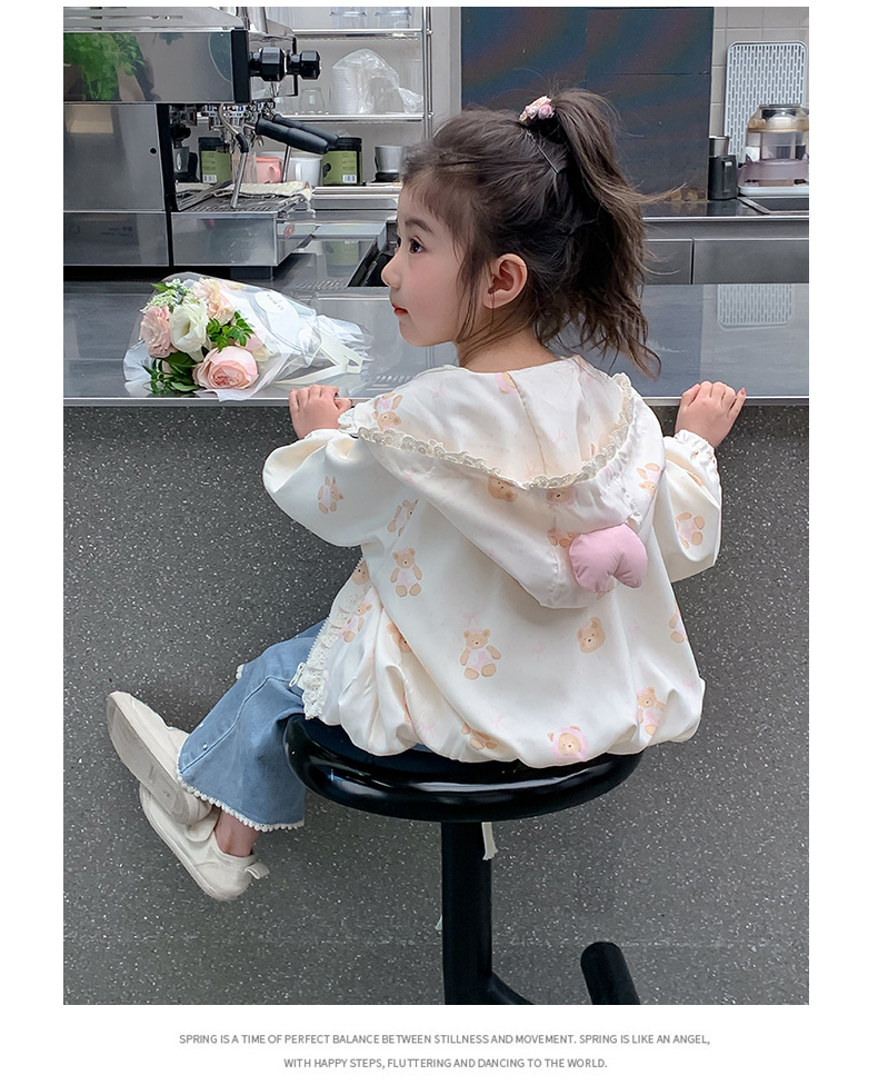 여아 봄 코트 2026 신상 봄 곰돌이 레이스 코트 후드탑 아동용 봄 가을 방풍 재킷