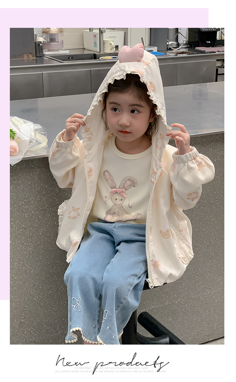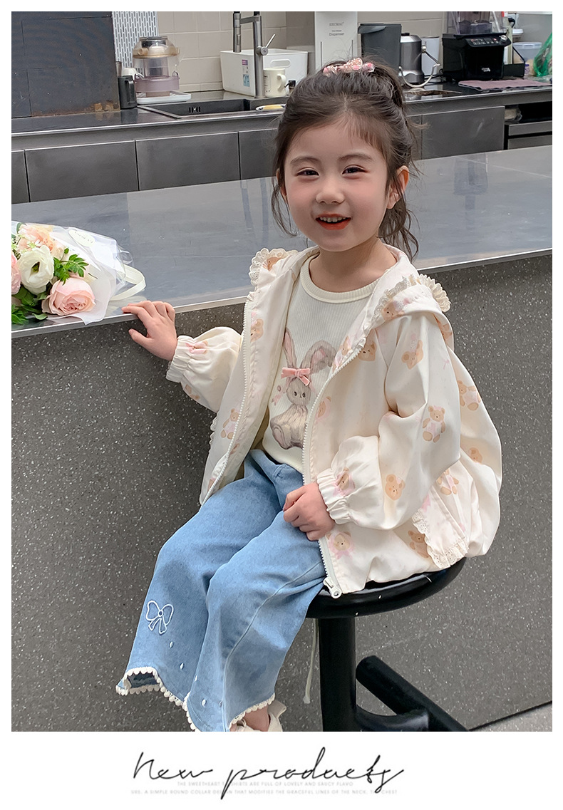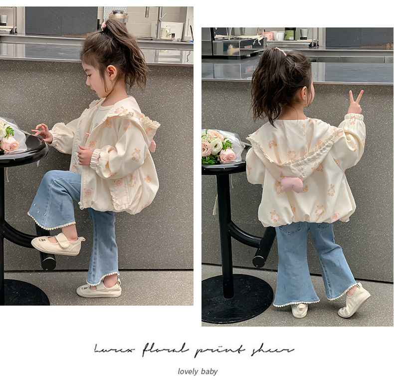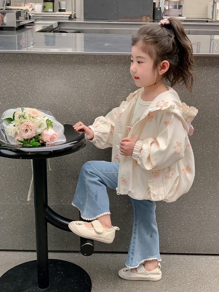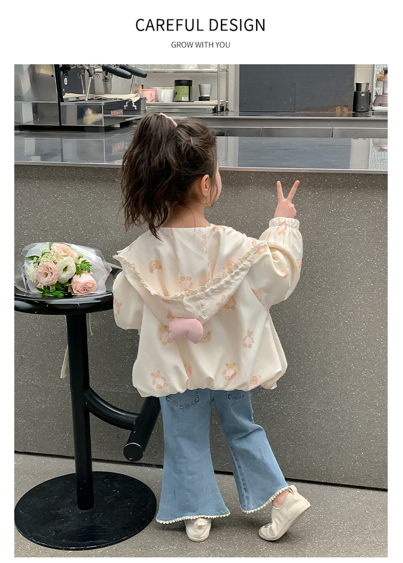 여아 봄 코트 2026 신상 봄 곰돌이 레이스 코트 후드탑 아동용 봄 가을 방풍 재킷