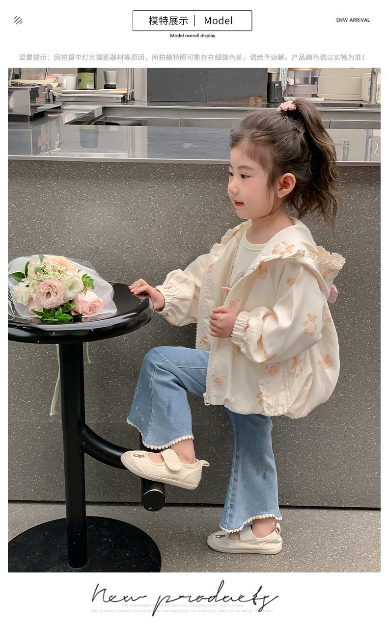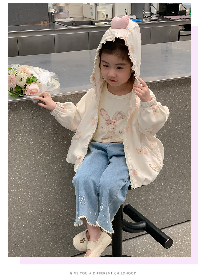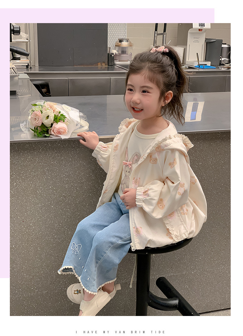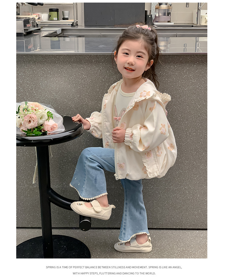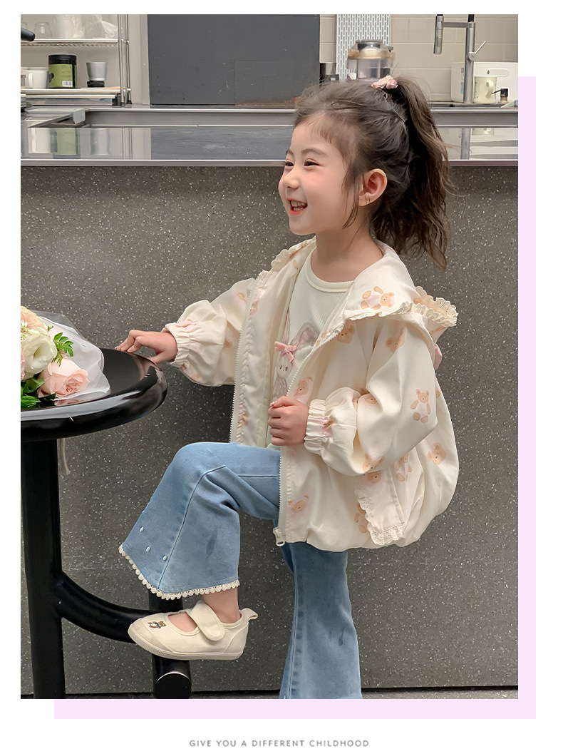 여아 봄 코트 2026 신상 봄 곰돌이 레이스 코트 후드탑 아동용 봄 가을 방풍 재킷