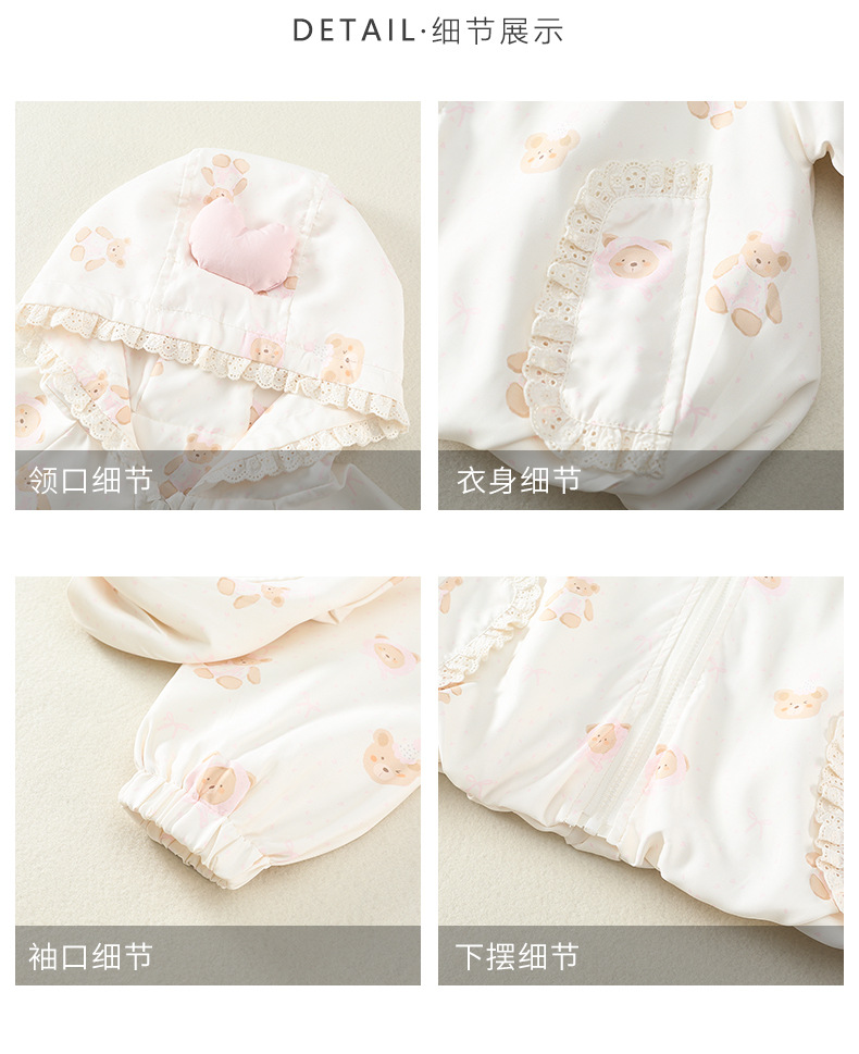 여아 봄 코트 2026 신상 봄 곰돌이 레이스 코트 후드탑 아동용 봄 가을 방풍 재킷스토어 가기
