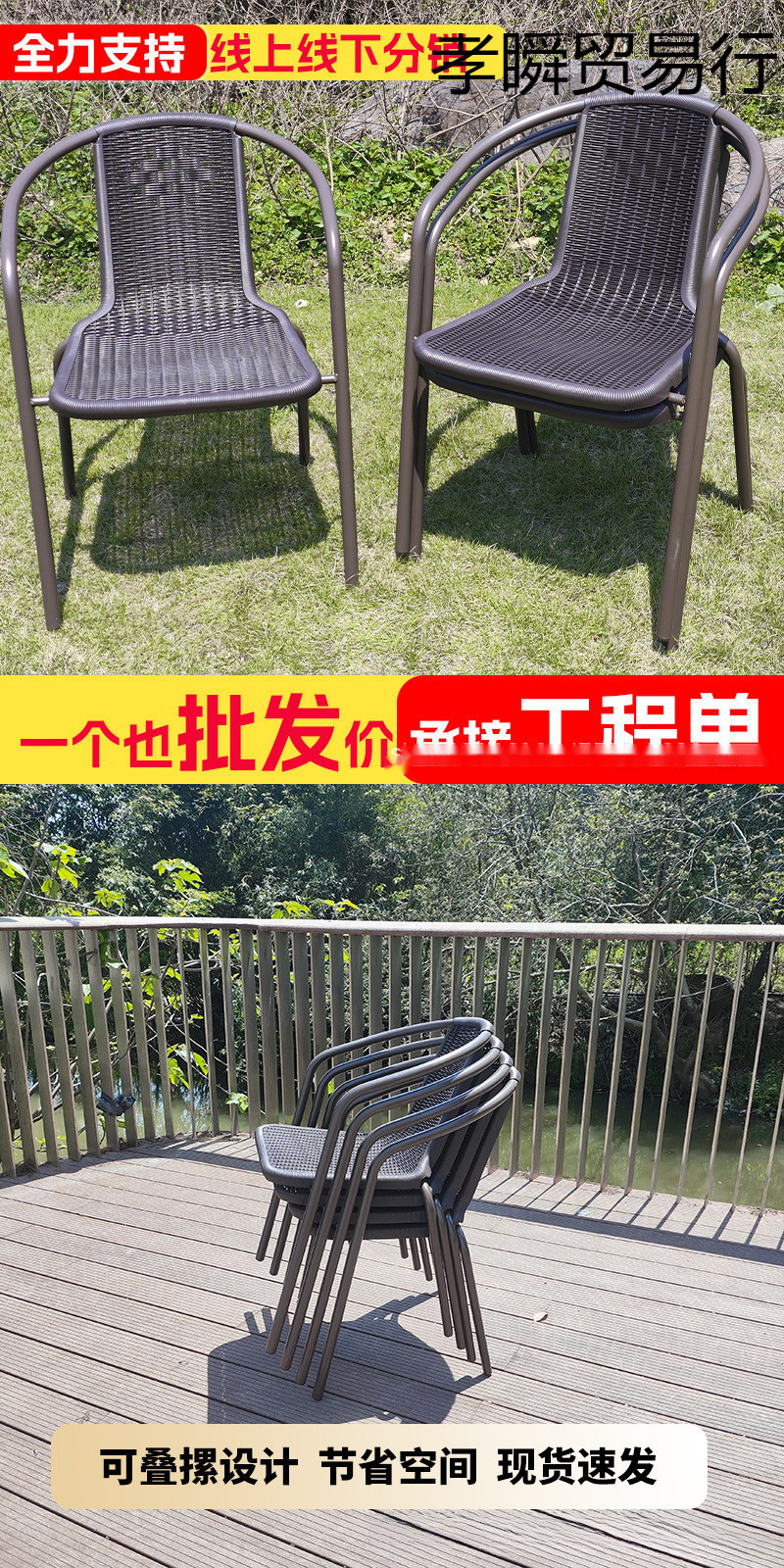야외 의자 플라스틱 캐주얼 단일 의자 야외 마당 회의 의자 아이언 홈 등나무 의자 발코니