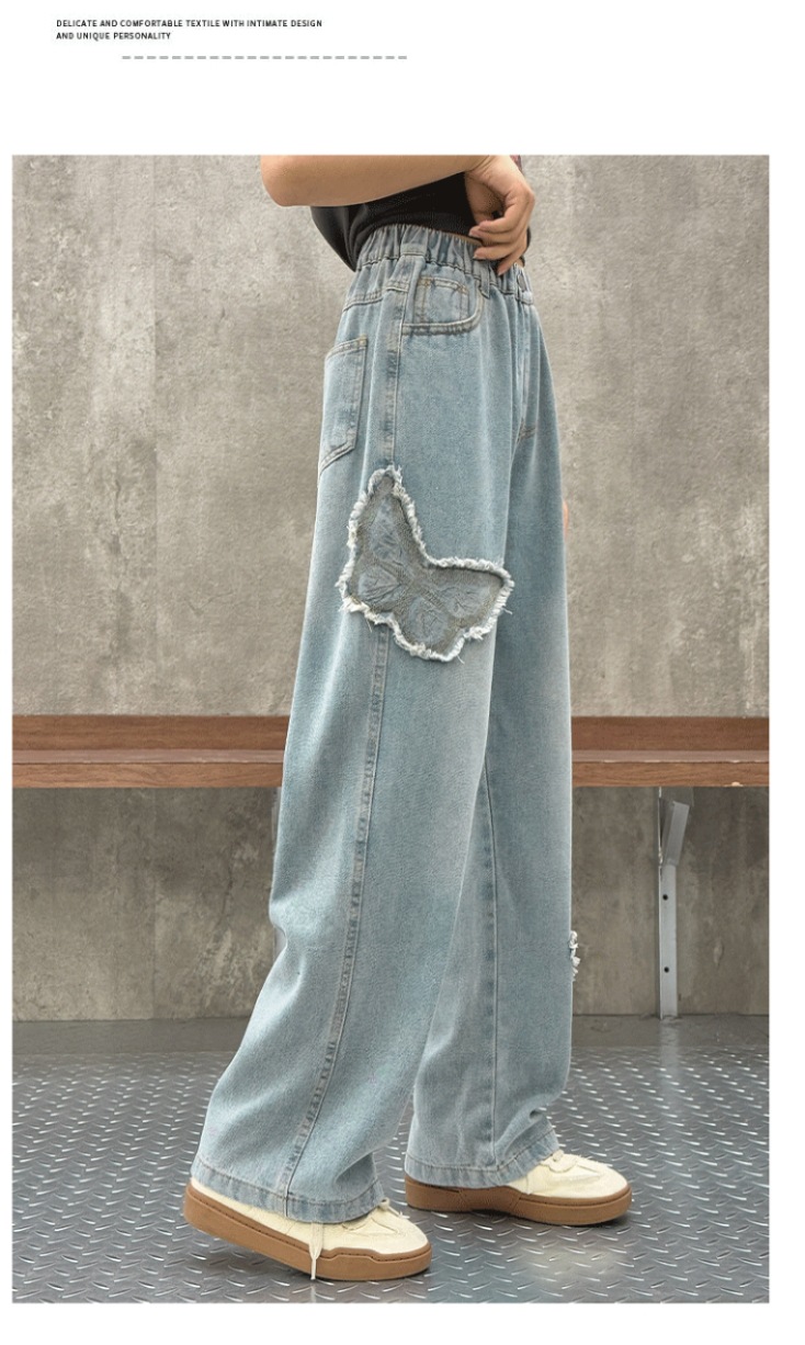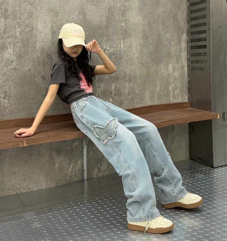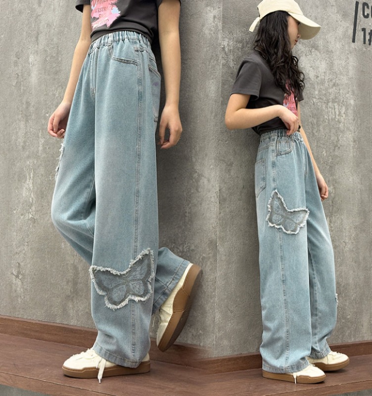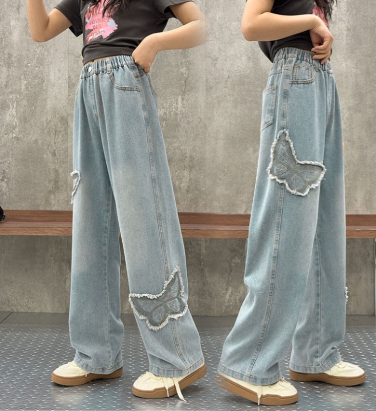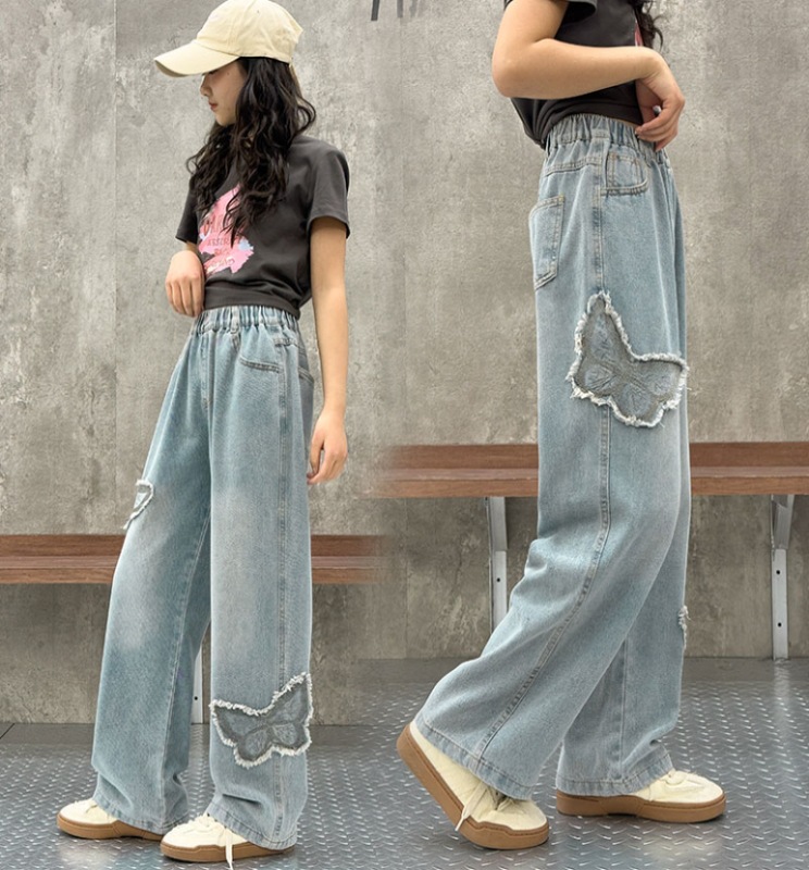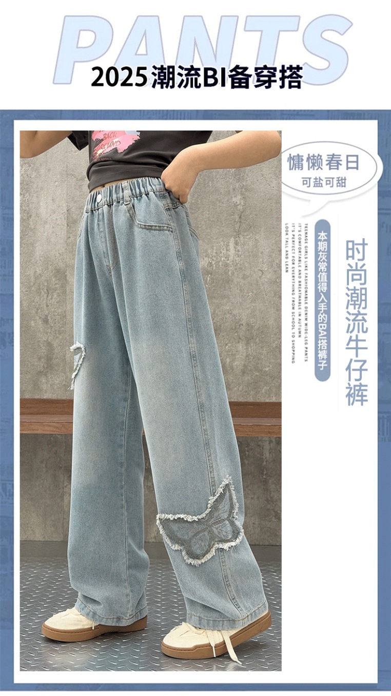 소녀 2025 봄 데님 넓은 다리 바지 어린이 청바지 얇은 직선 다리 바지 높은 허리 부드럽고 편안한스토어 가기