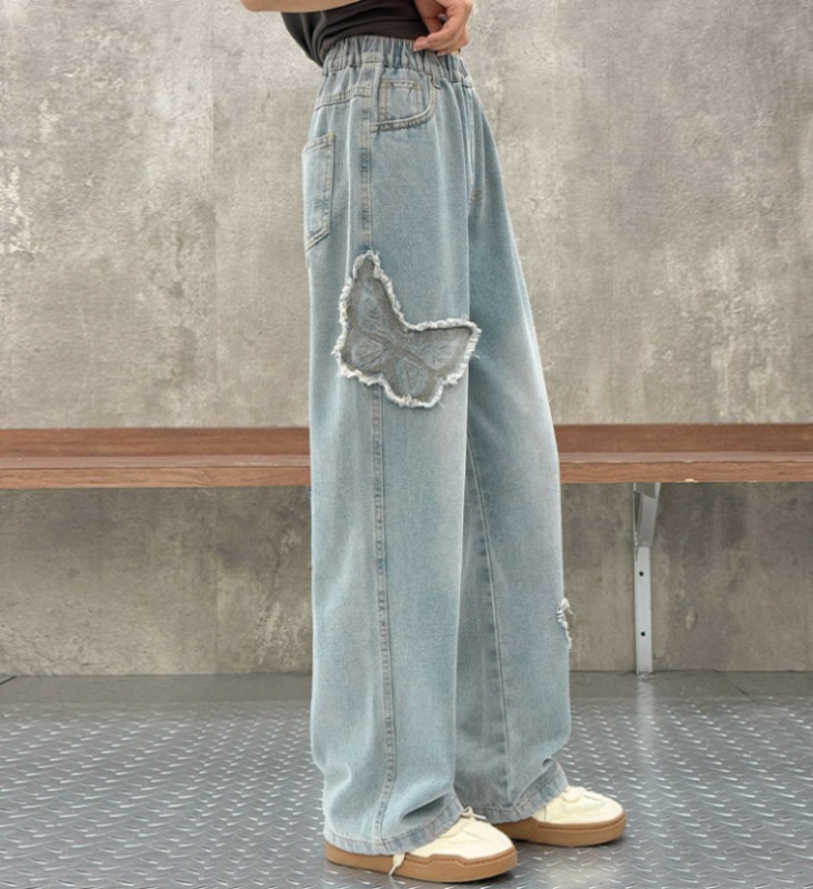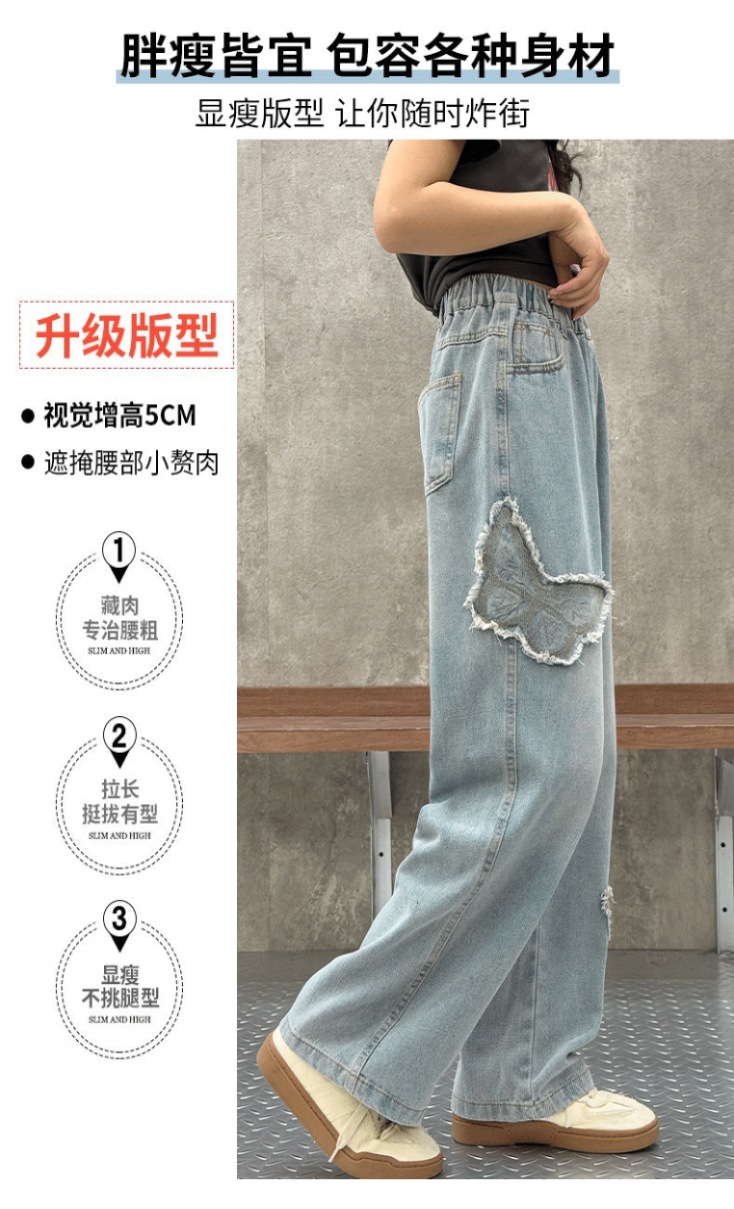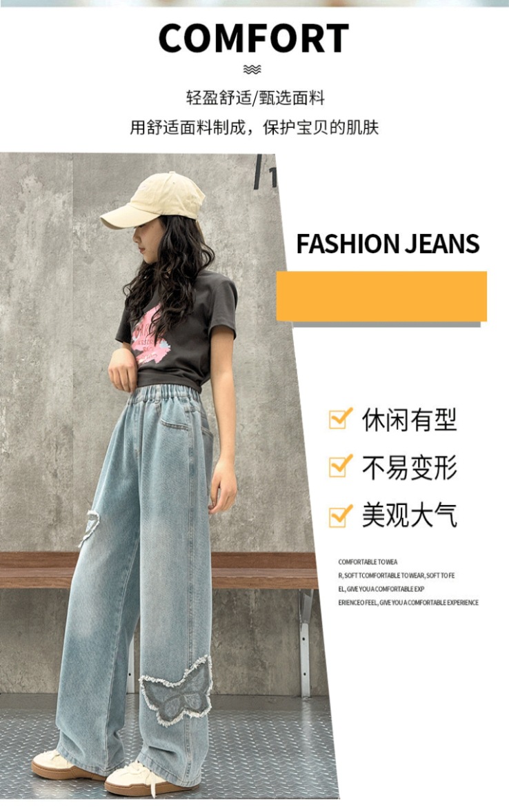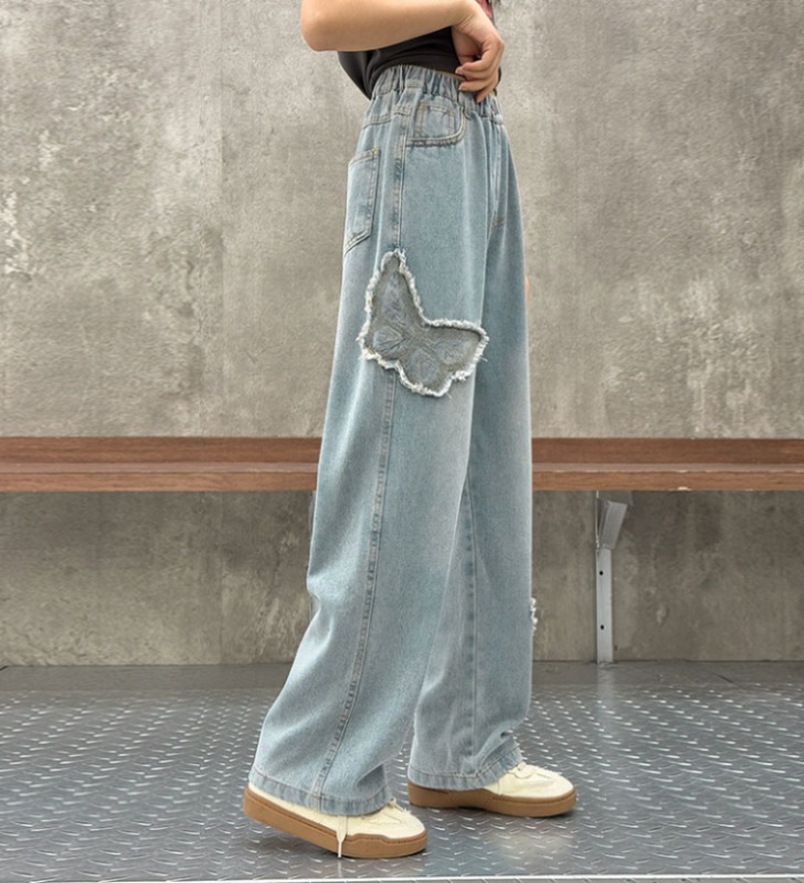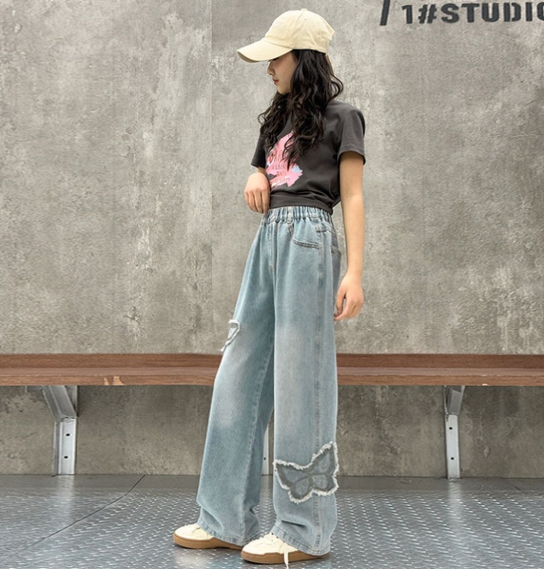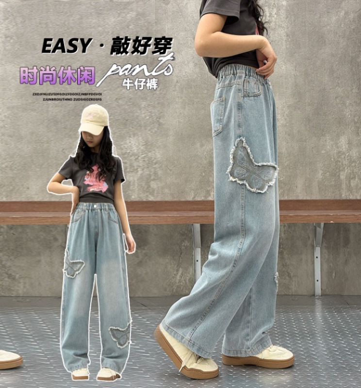 소녀 2025 봄 데님 넓은 다리 바지 어린이 청바지 얇은 직선 다리 바지 높은 허리 부드럽고 편안한스토어 가기