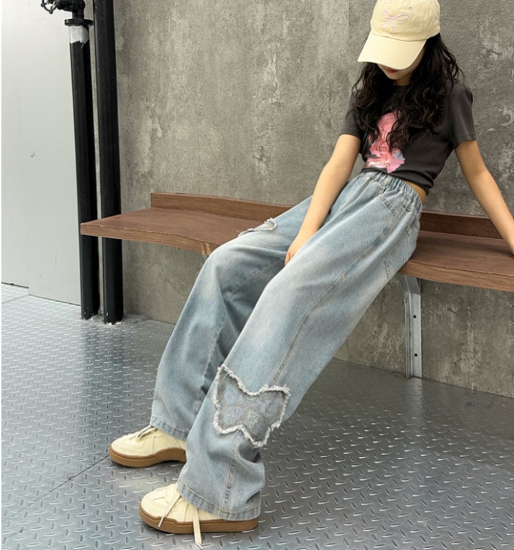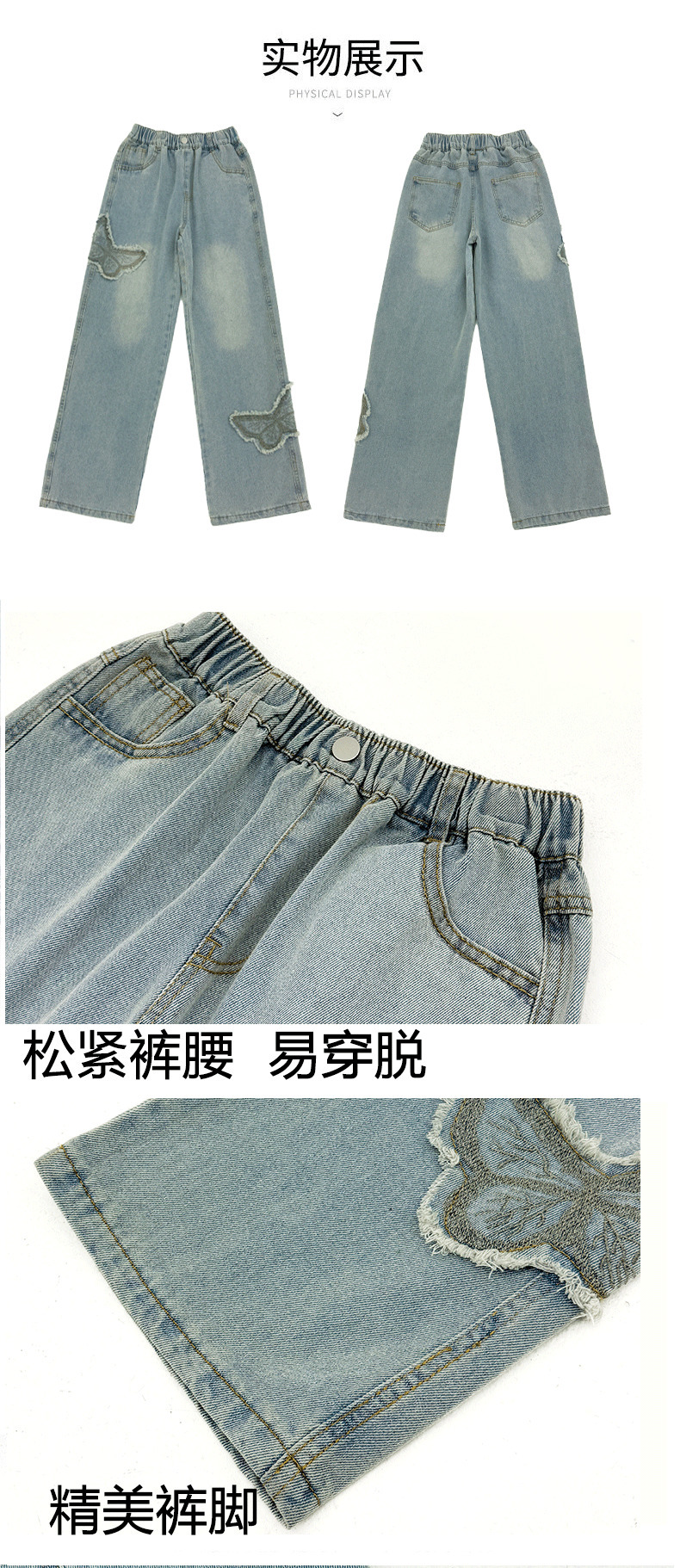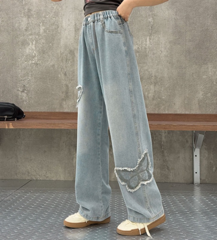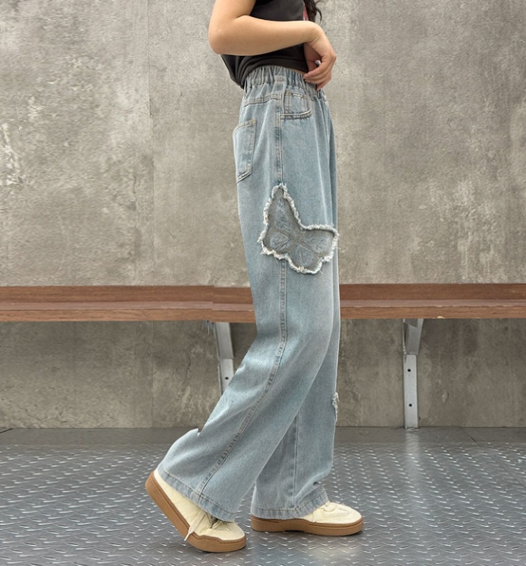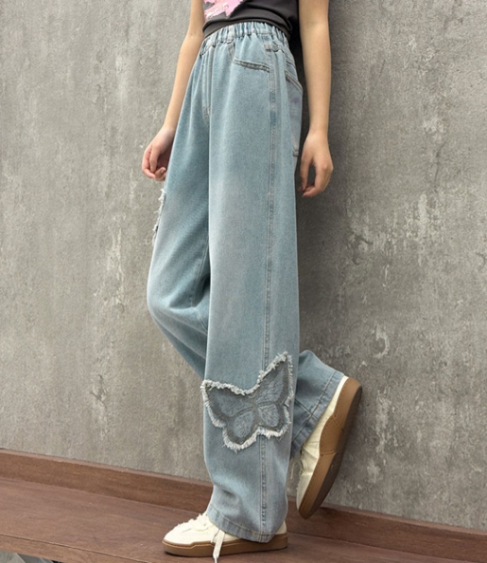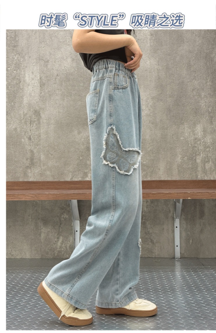 소녀 2025 봄 데님 넓은 다리 바지 어린이 청바지 얇은 직선 다리 바지 높은 허리 부드럽고 편안한스토어 가기
