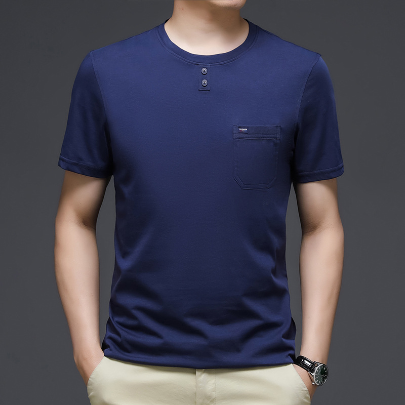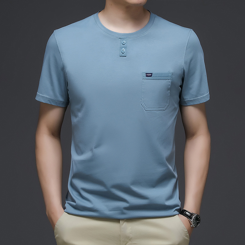 씻은 코튼 크루 넥 반팔 남성 티셔츠 2025 여름 새로운 패션 캐주얼 솔리드 컬러 올 매치 남성용 티셔츠