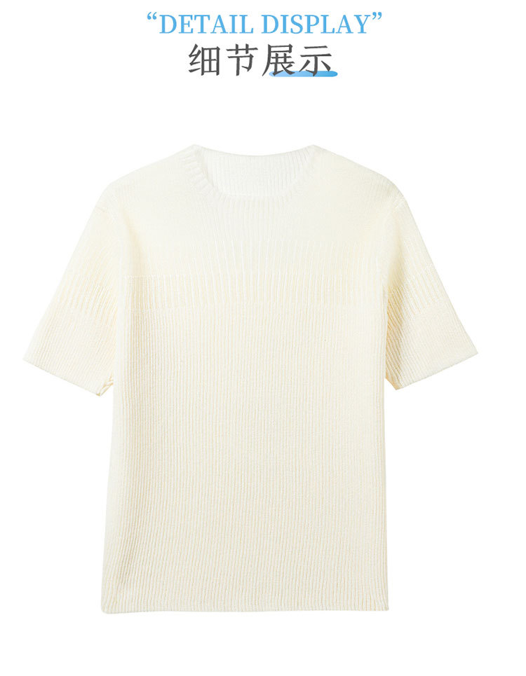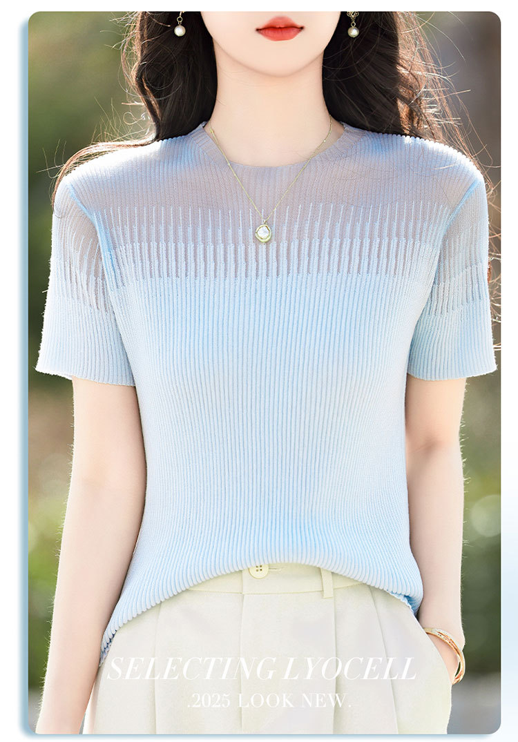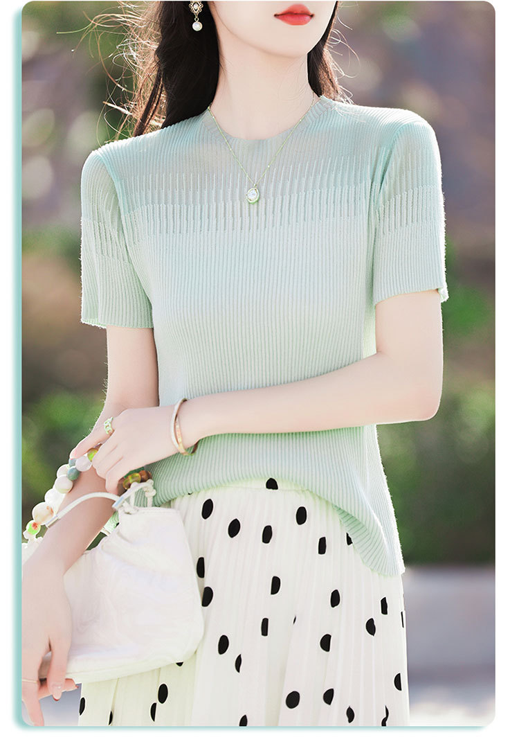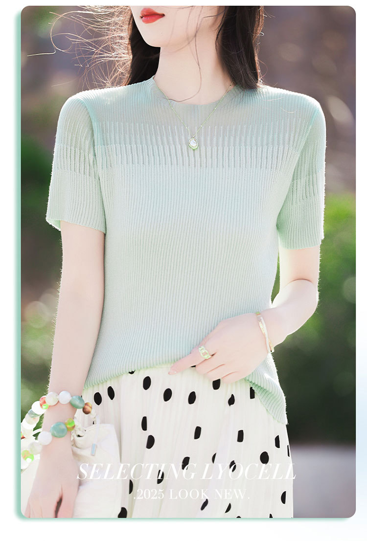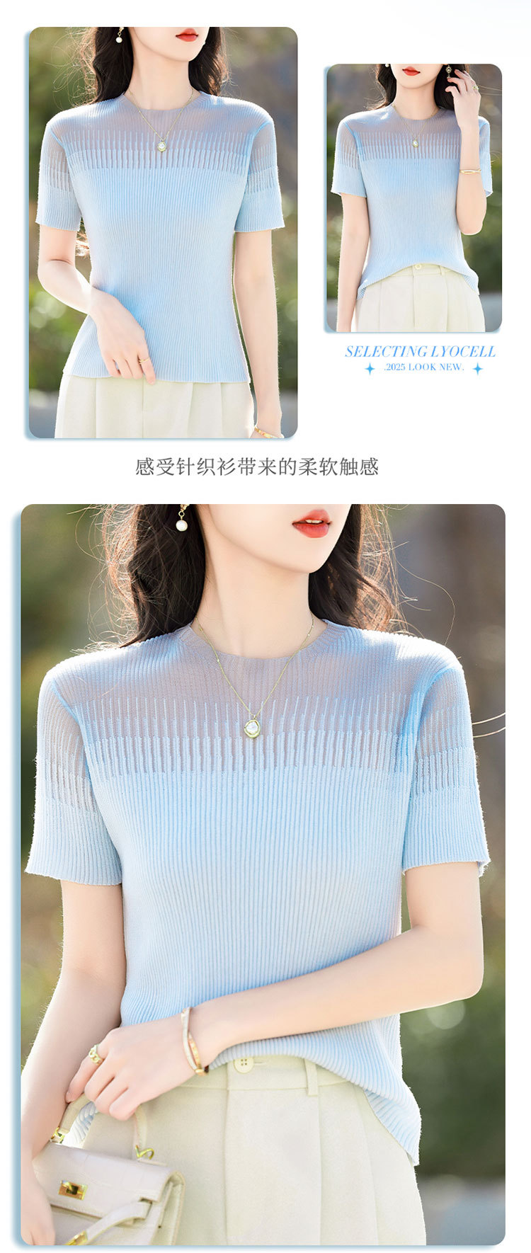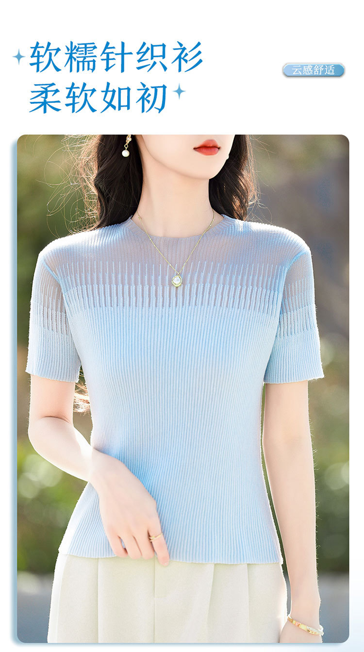 2025 년 여름 실크 울 오간자 밝은 실크 반팔 새 반팔 터틀넥 스티칭 니트 베이스 여성용 슬림 핏 티셔츠스토어 가기