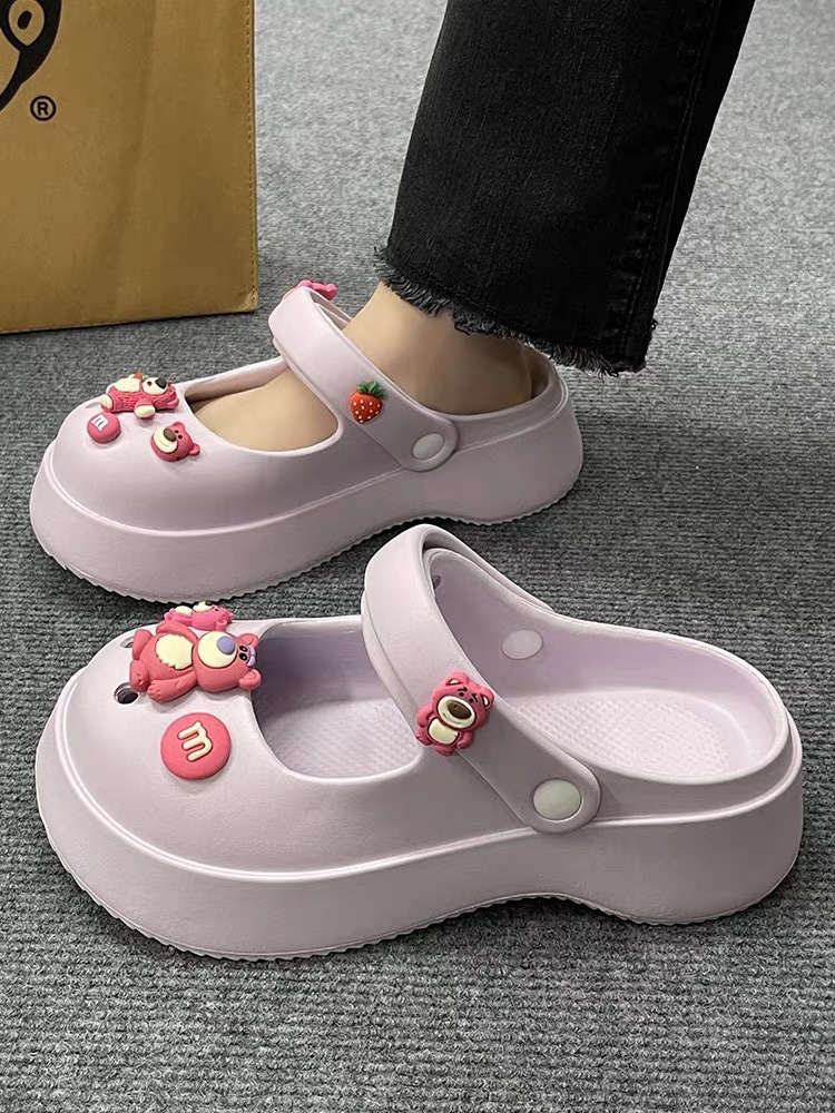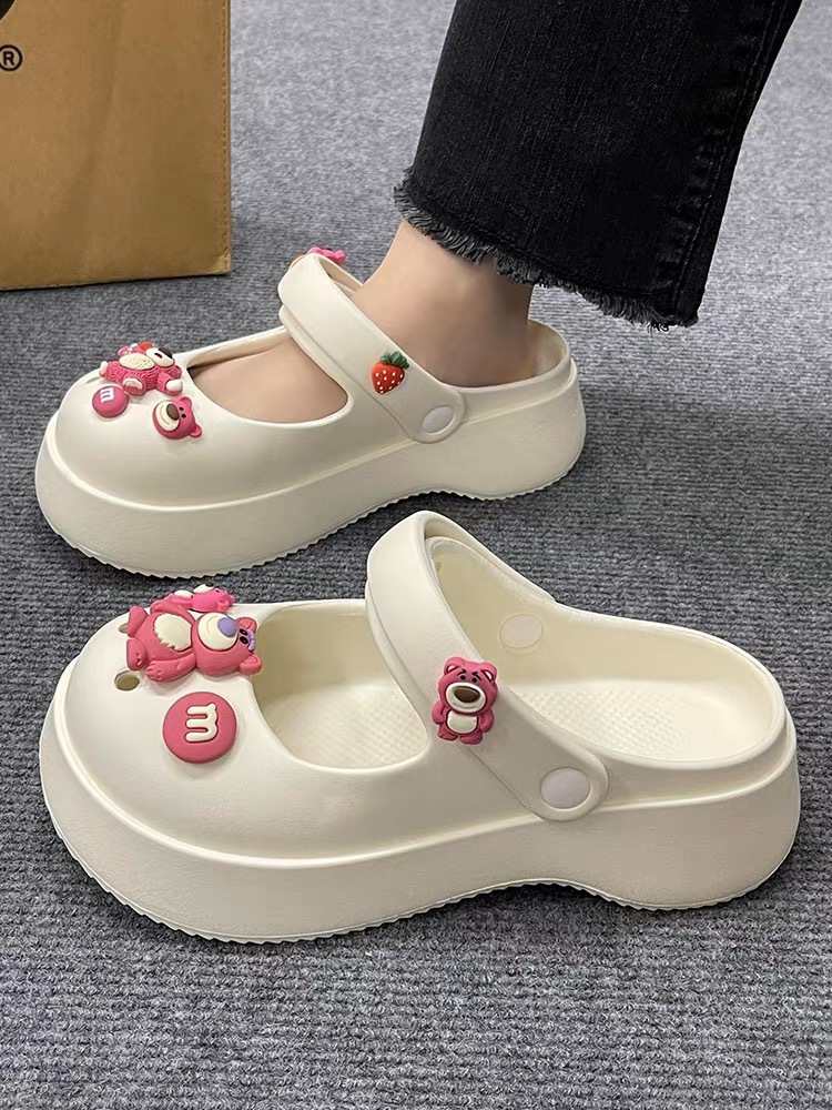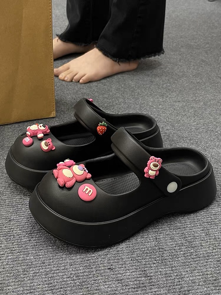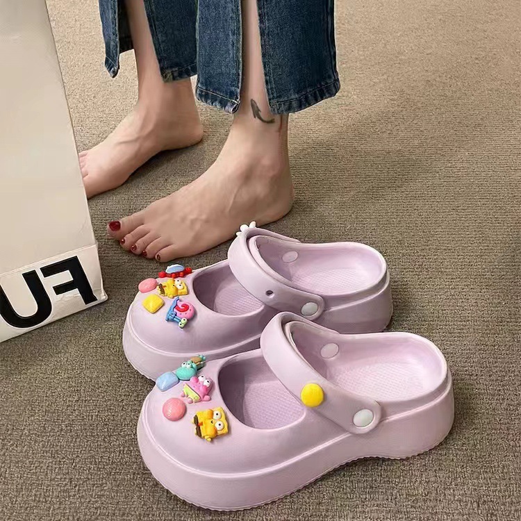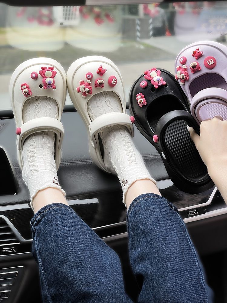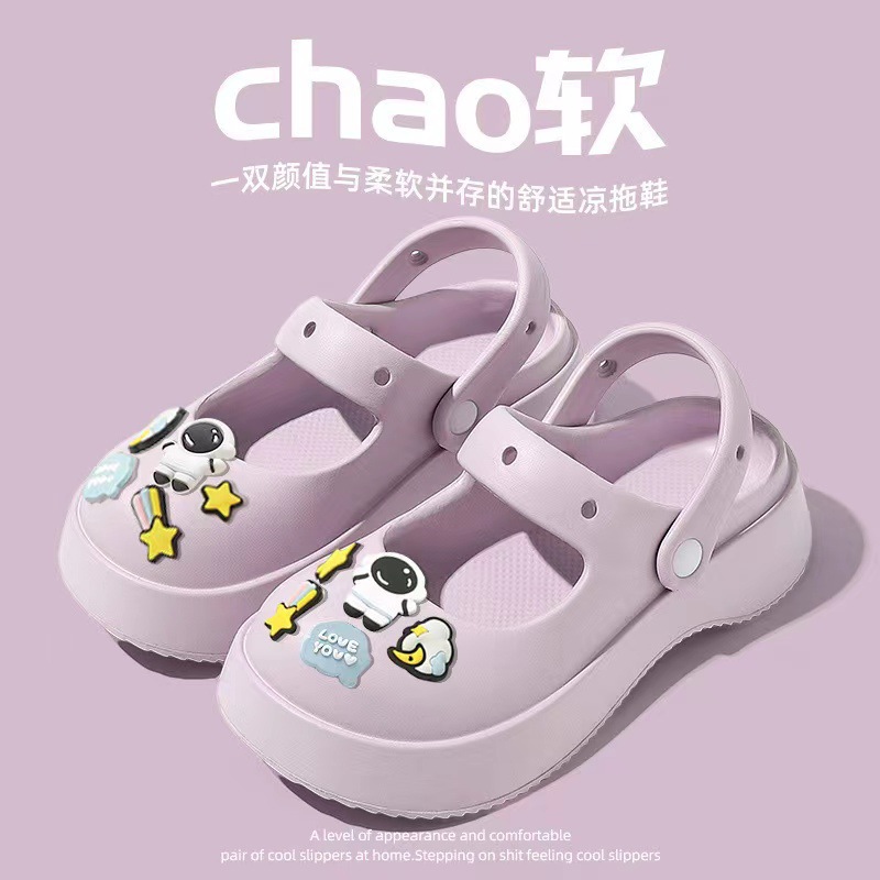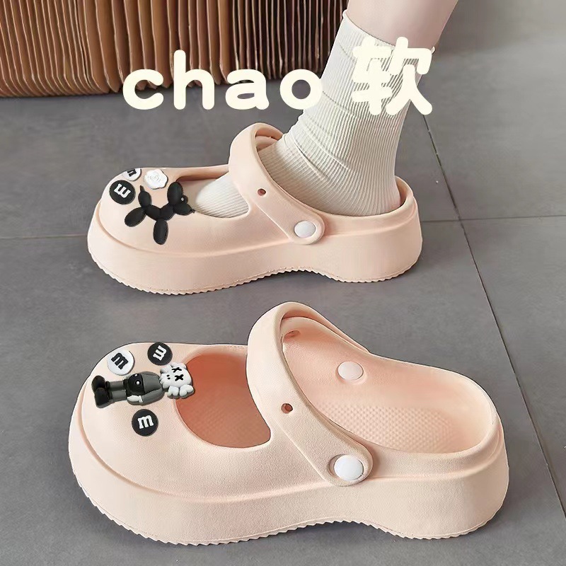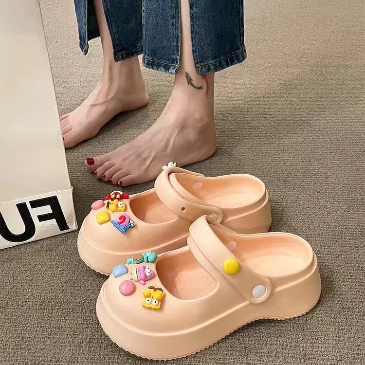 동굴 신발 바오터우 슬리퍼 여성용 외부 착용감 미끄럼 방지 두꺼운 바닥 홈 만화 소녀 하트 비치 슬리퍼 여름스토어 가기