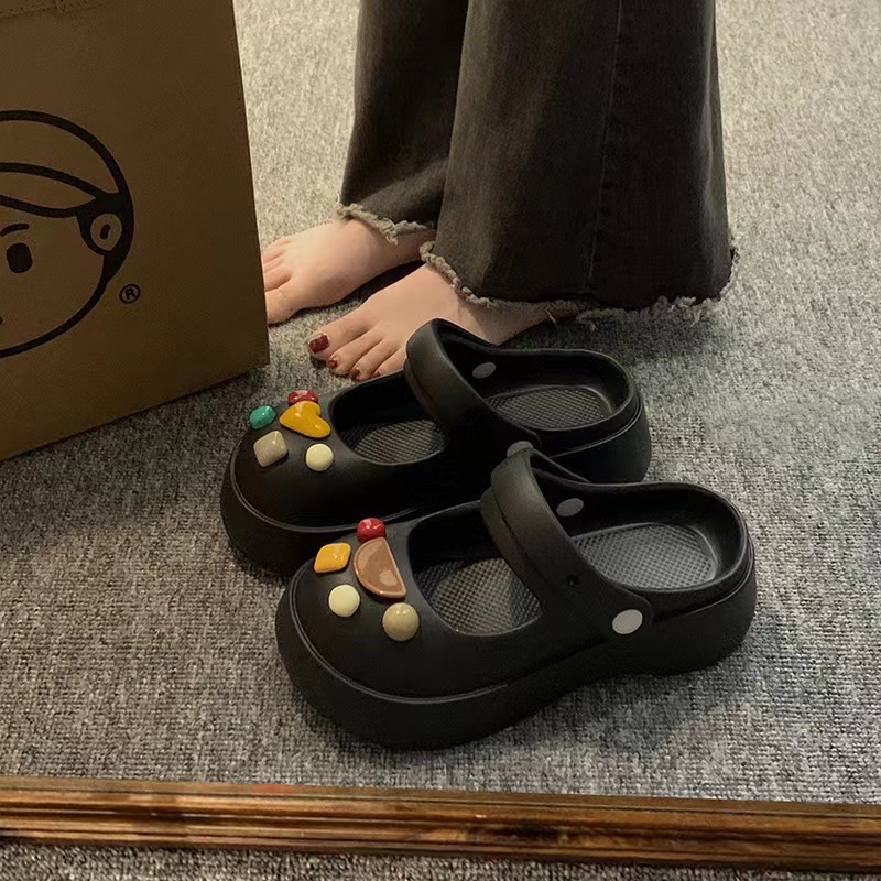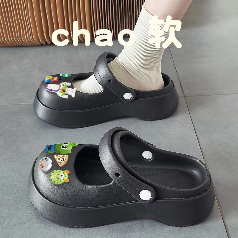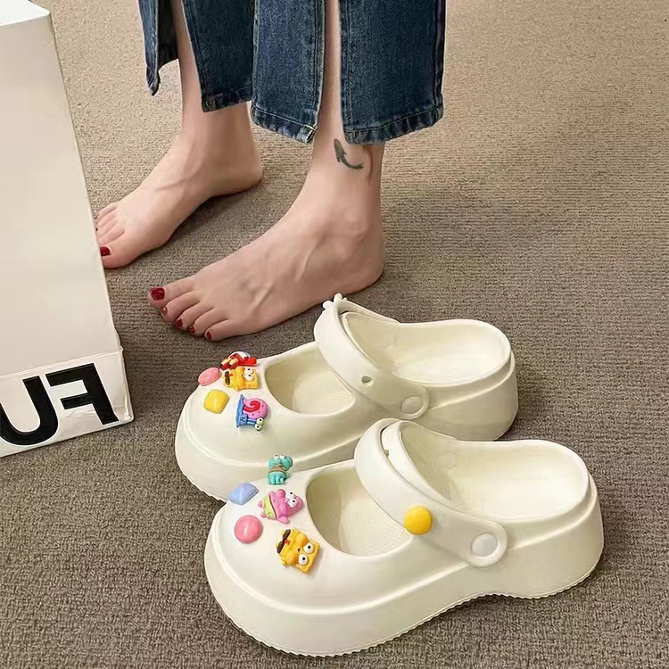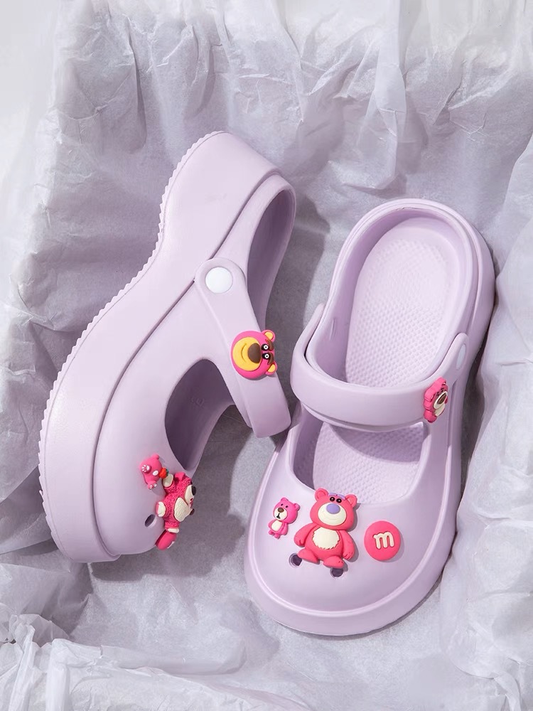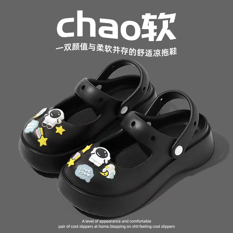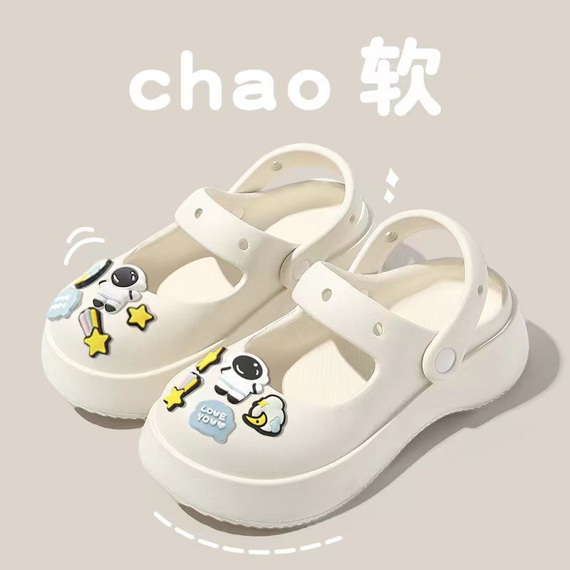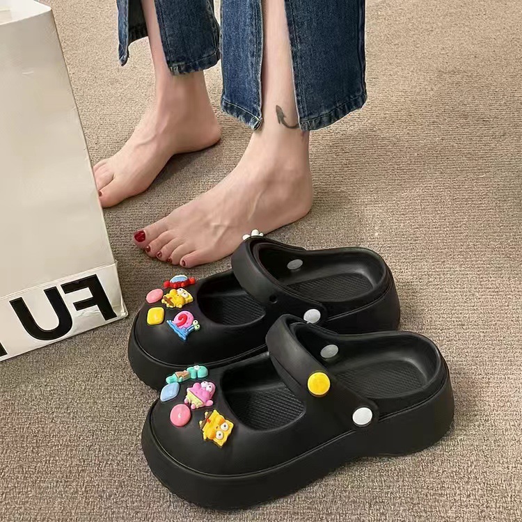 동굴 신발 바오터우 슬리퍼 여성용 외부 착용감 미끄럼 방지 두꺼운 바닥 홈 만화 소녀 하트 비치 슬리퍼 여름스토어 가기