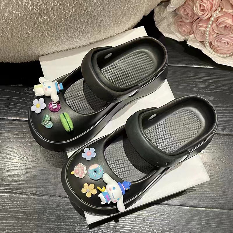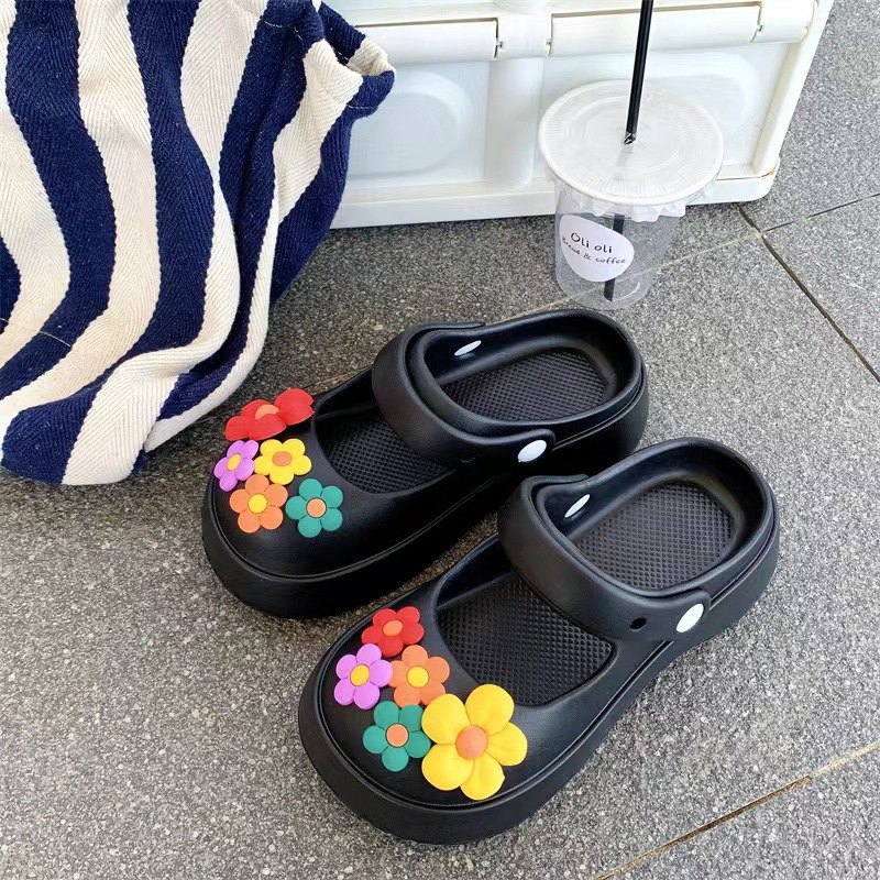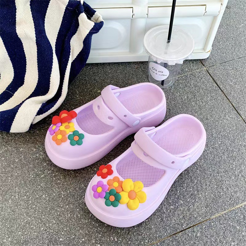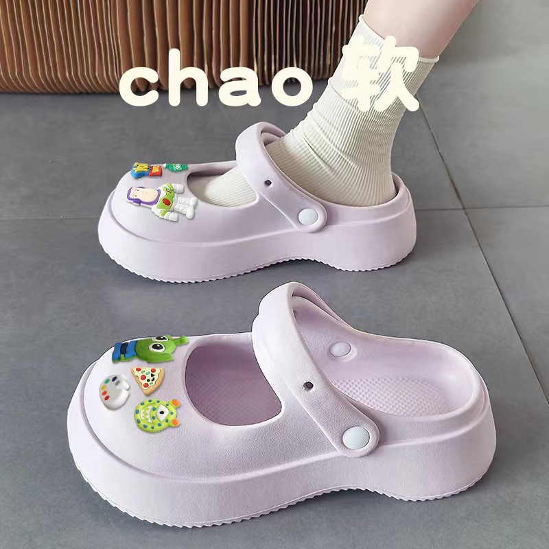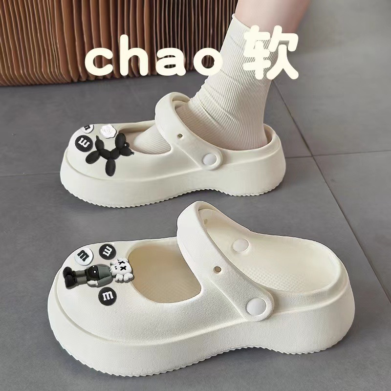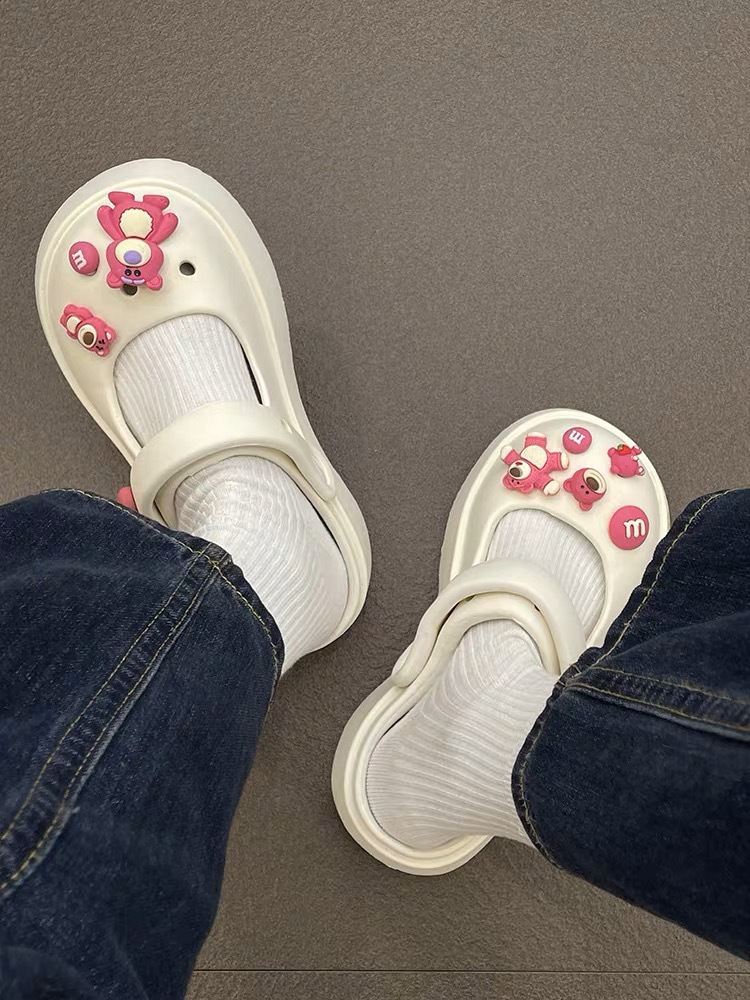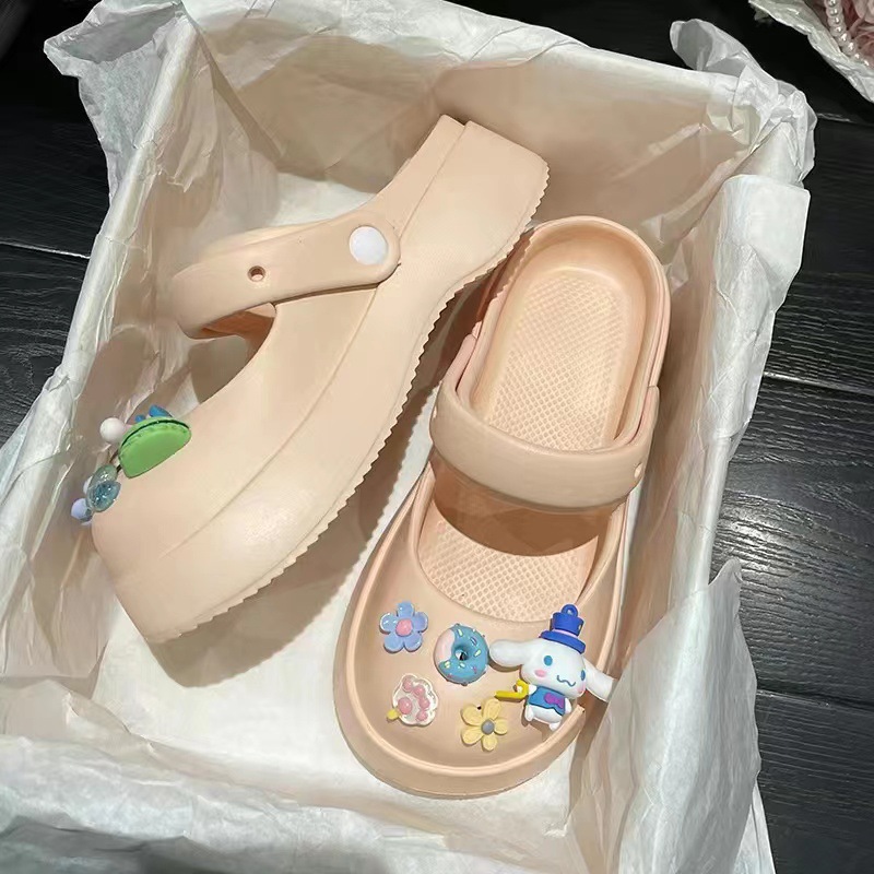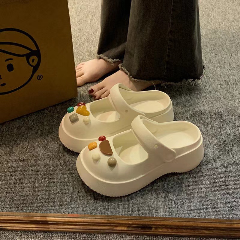 동굴 신발 바오터우 슬리퍼 여성용 외부 착용감 미끄럼 방지 두꺼운 바닥 홈 만화 소녀 하트 비치 슬리퍼 여름스토어 가기
