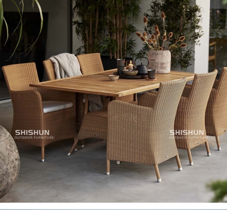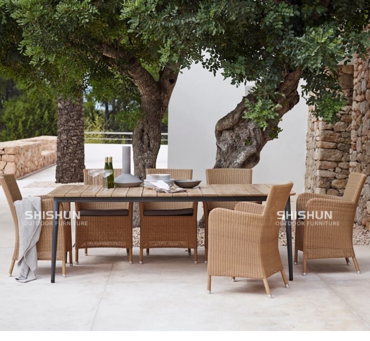야외 레저 테이블과 의자 조합 안뜰 정원 야외 발코니 마당 테라스 식탁과 의자 직조 실내 가구스토어 가기