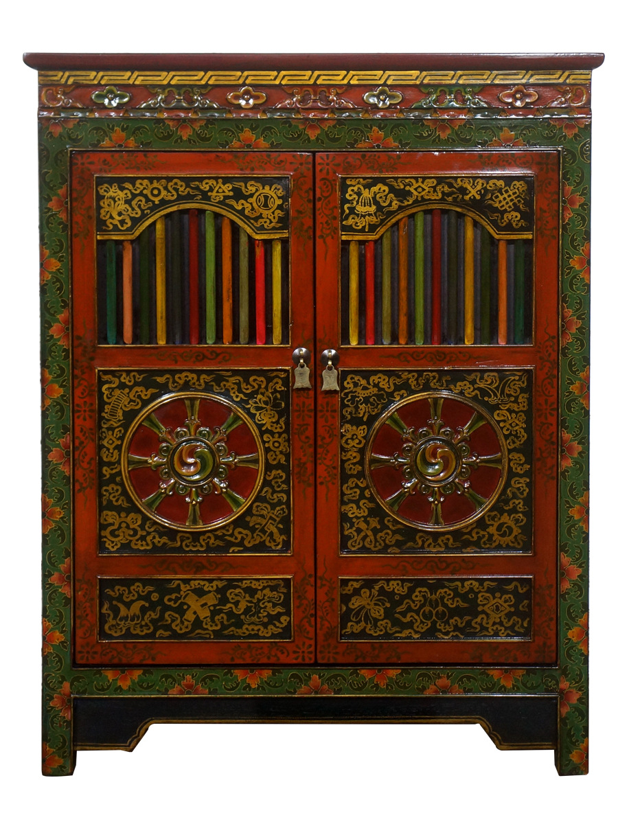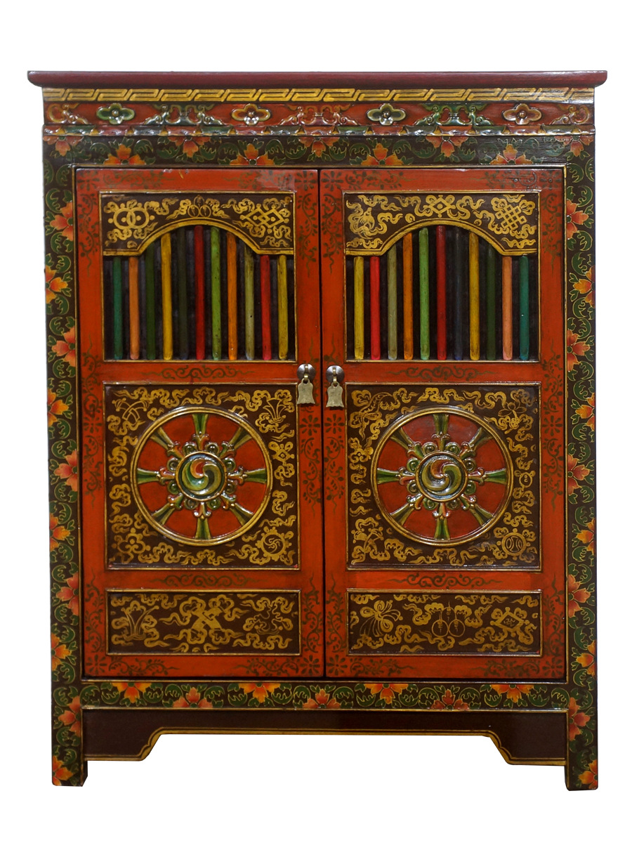티베트 스타일 페인트 로커 단단한 나무 조각 부처 내각 손으로 그린 오래된 사물함 태국 빈티지 다채로운 가정용 신발 캐비닛