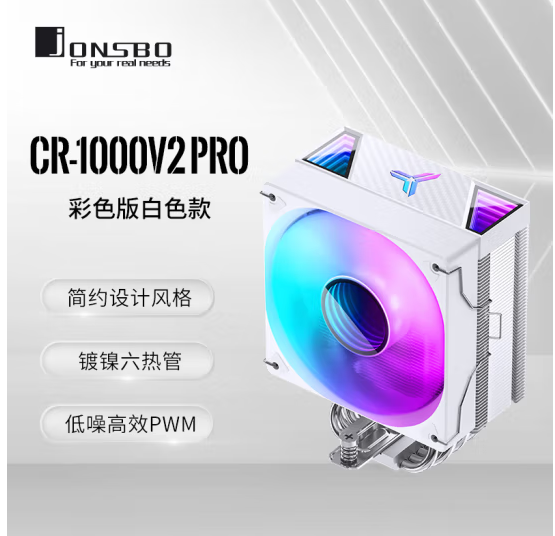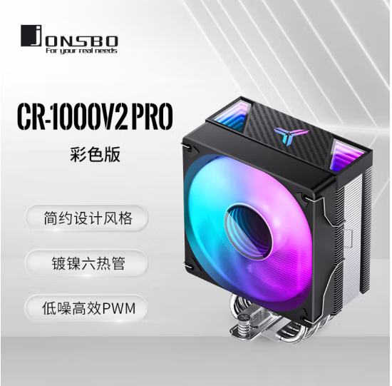 乔思伯(JONSBO)CR-1000 V2 Pro彩色版 CPU风冷散热器(镀镍6热管/七彩光效/PWM风扇/多平台/附硅脂)