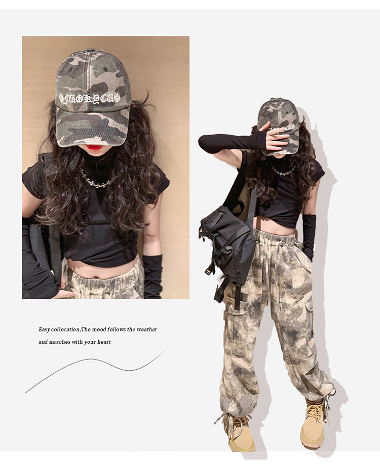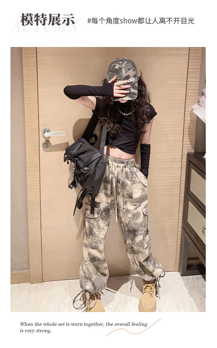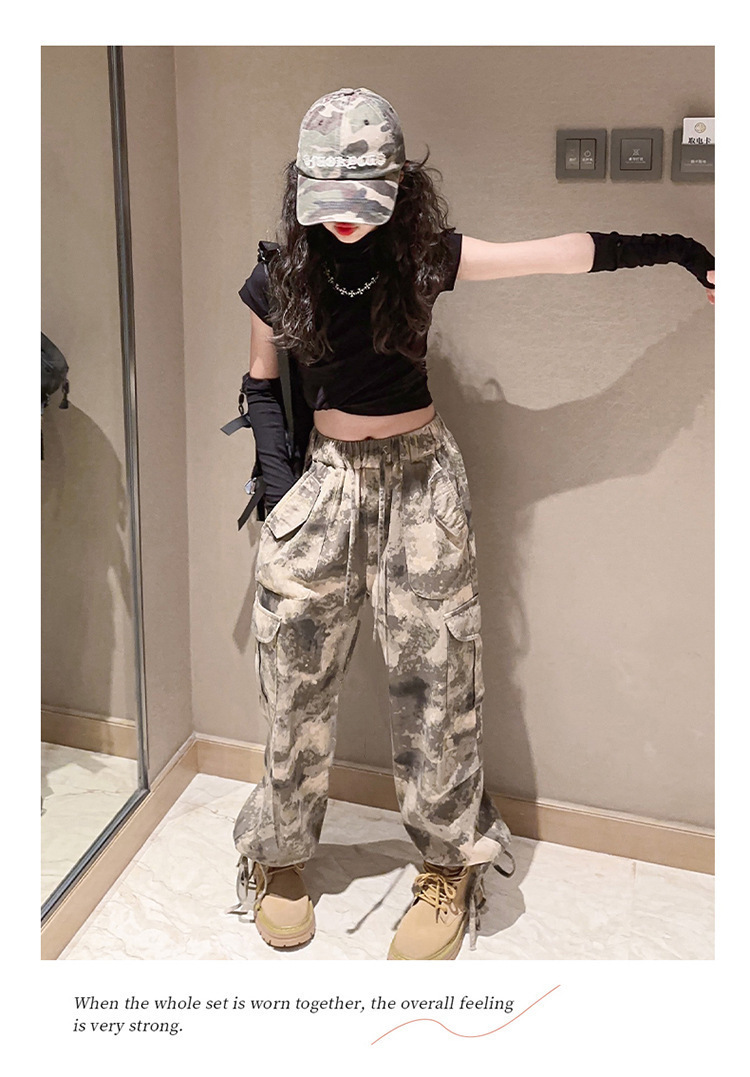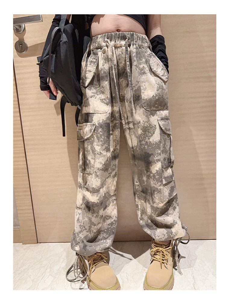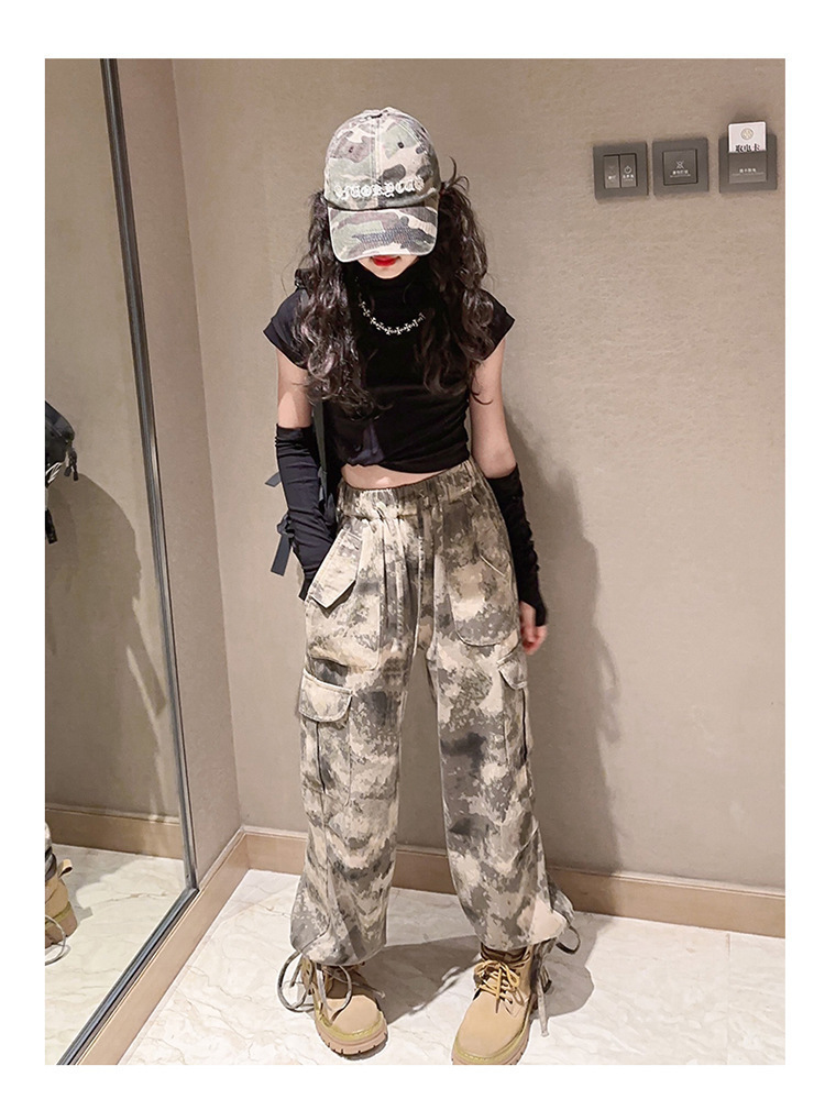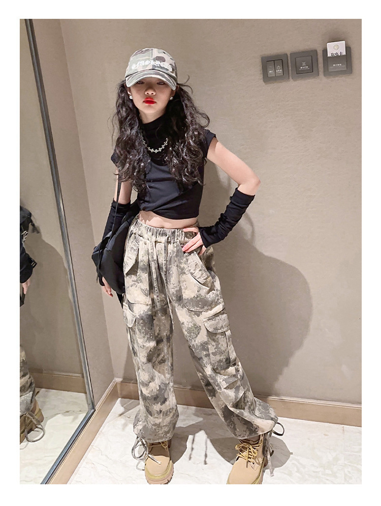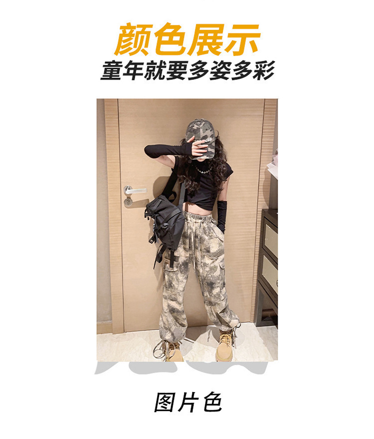 어린이 위장 바지 2023 봄과 가을 새로운 서양식 소녀 크레인 바지 인터넷 기념 거리 댄스 중 큰 어린이 캐주얼 와이드 레그 바지스토어 가기