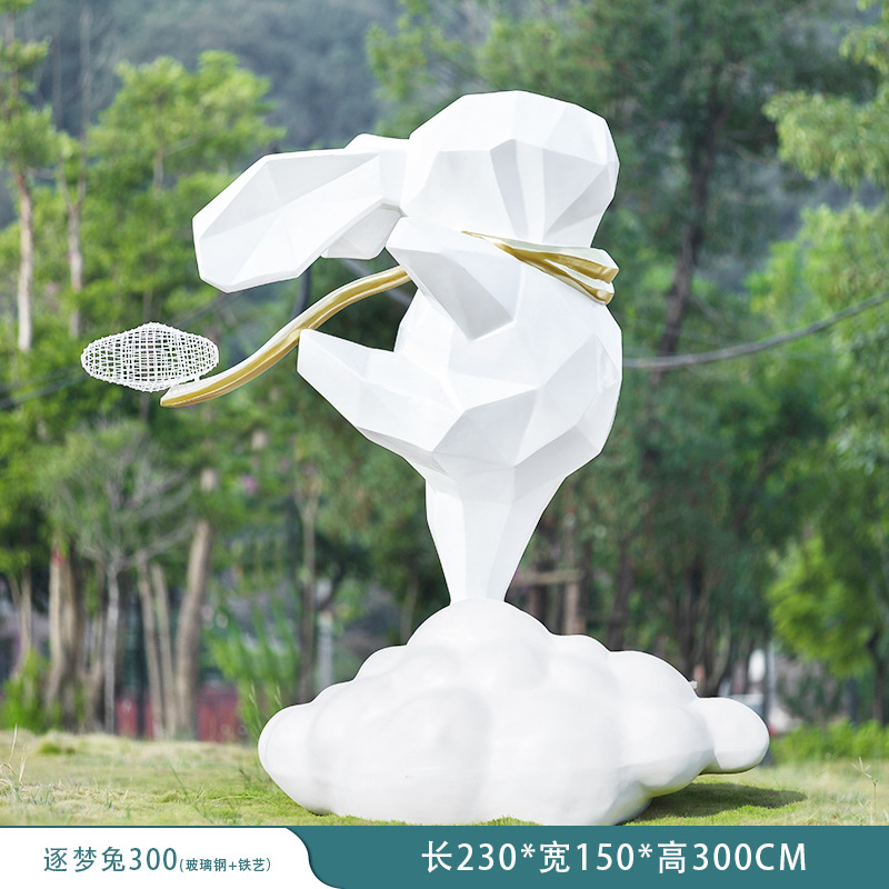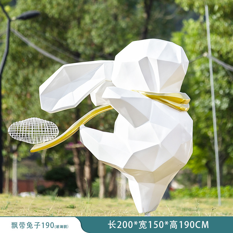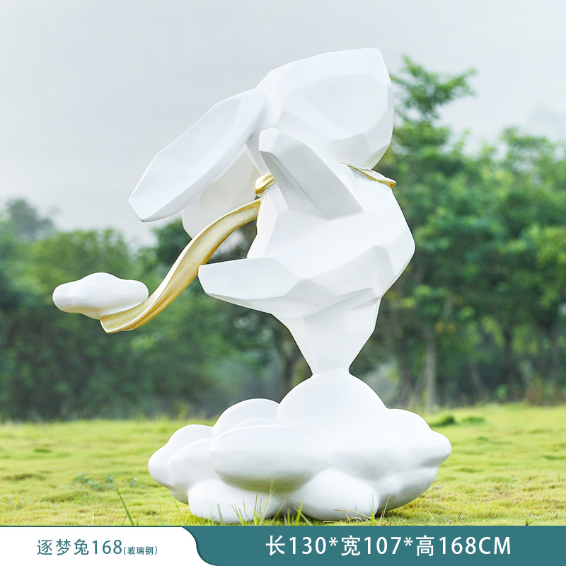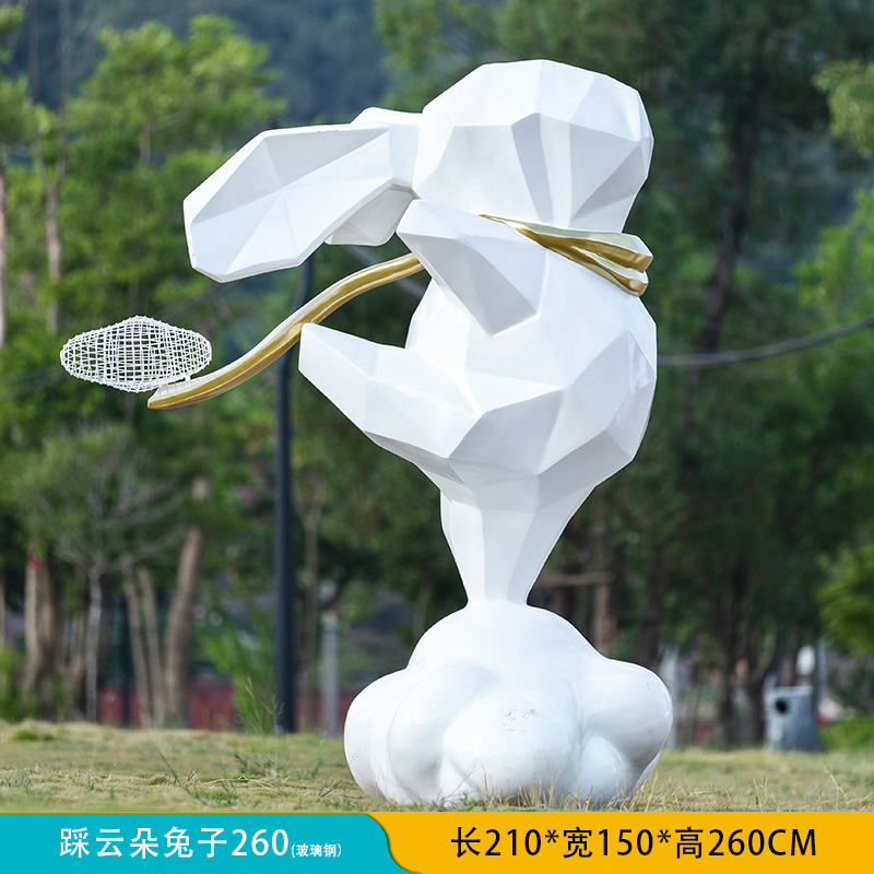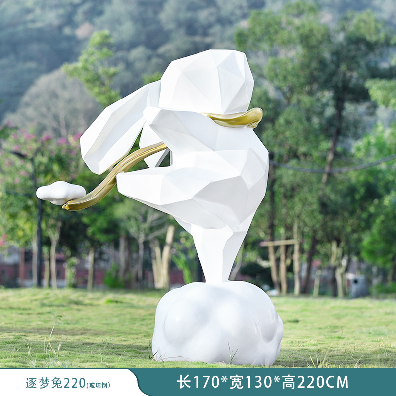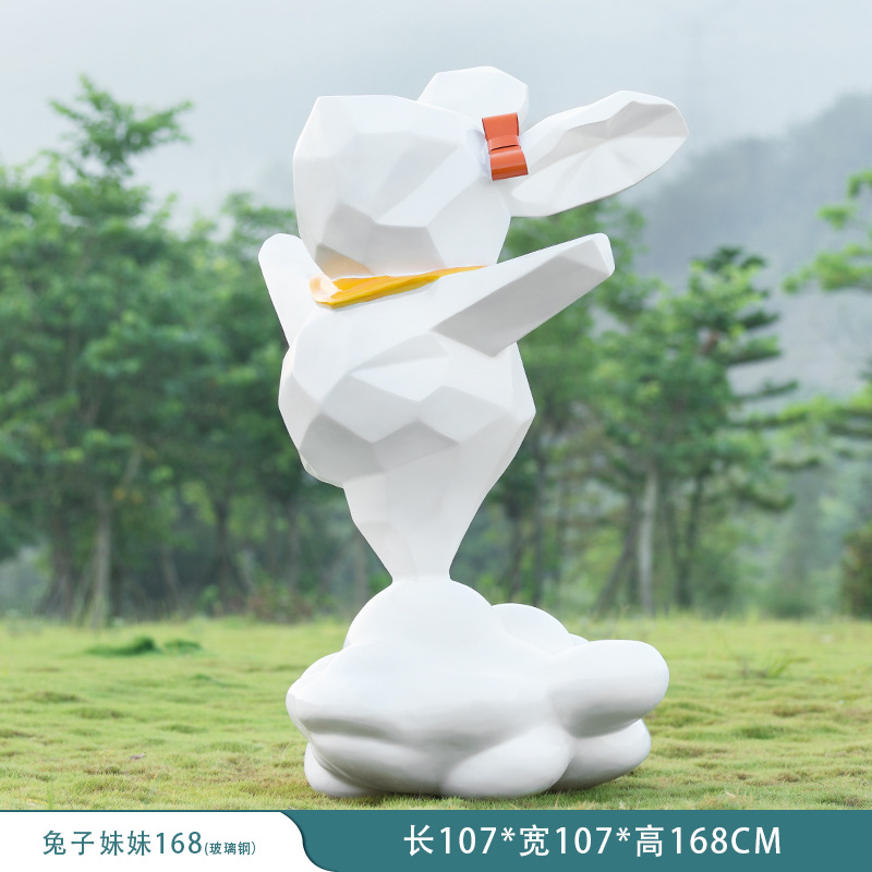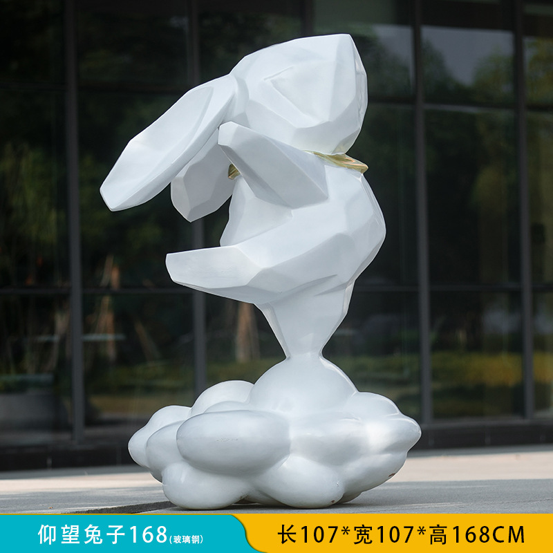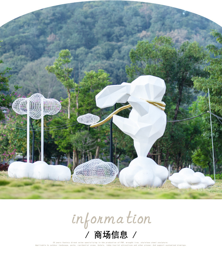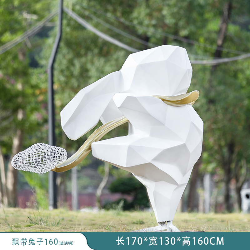 야외 인터넷 기념 추상 기하학적 토끼 유리 섬유 강화 플라스틱 조각 스테인레스 스틸 구름 그림 커뮤니티 잔디 장식 장식품스토어 가기