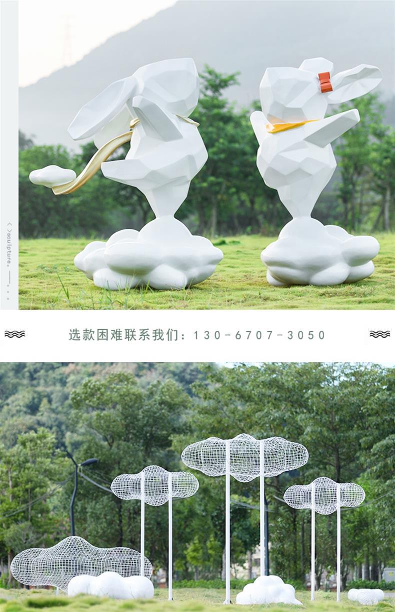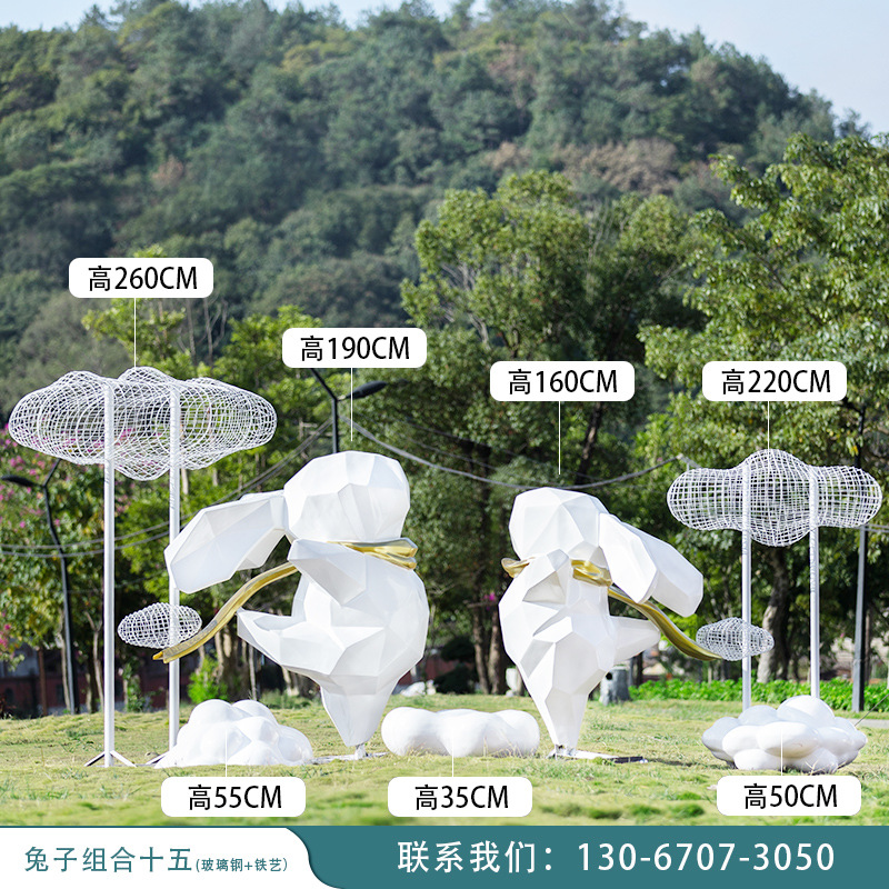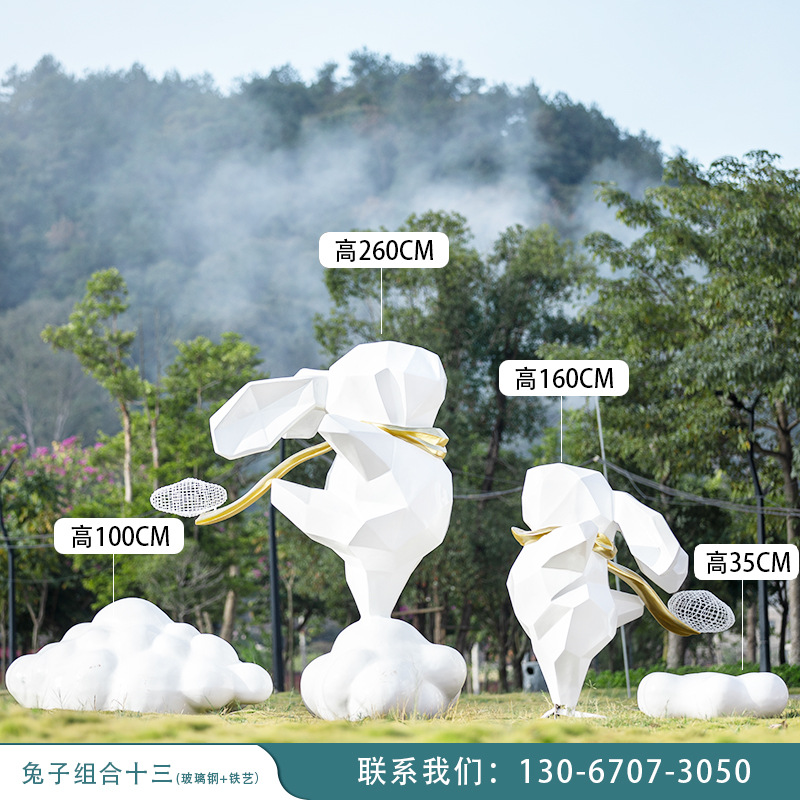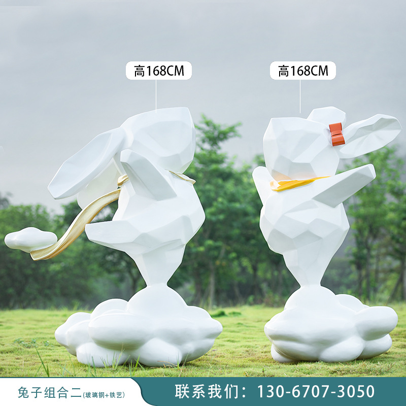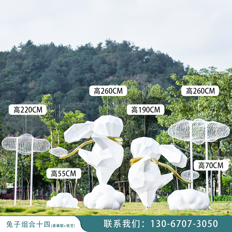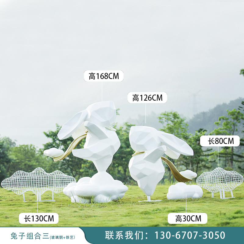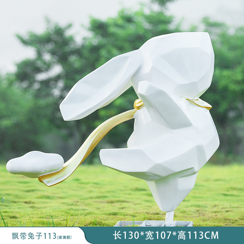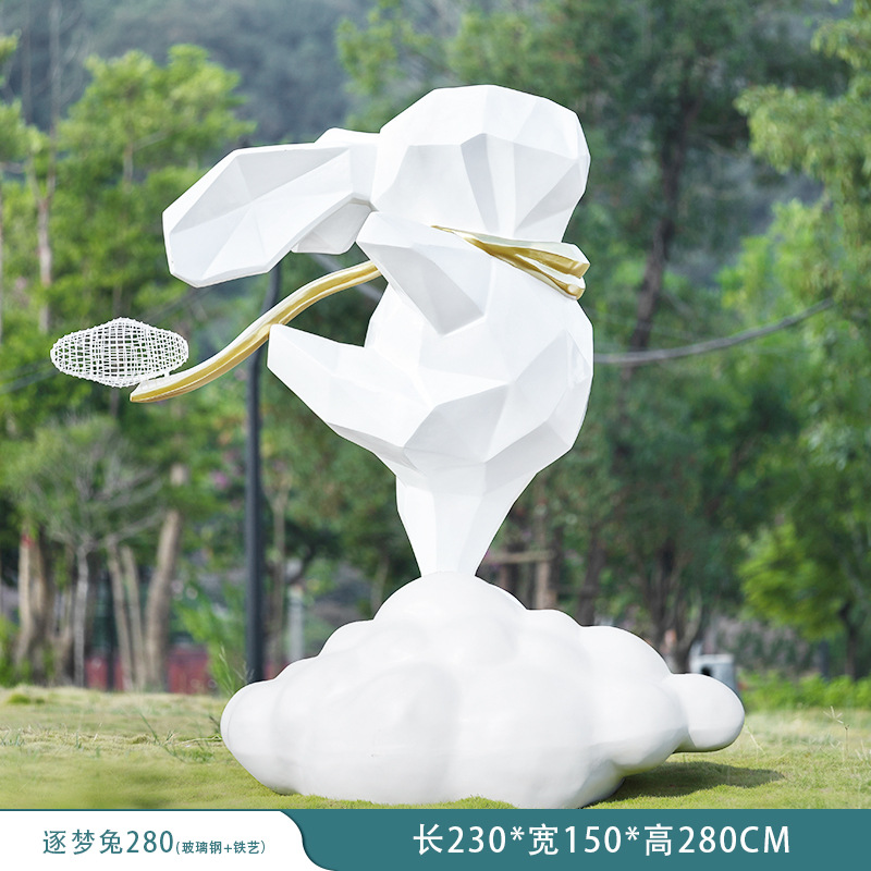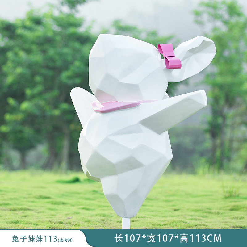 야외 인터넷 기념 추상 기하학적 토끼 유리 섬유 강화 플라스틱 조각 스테인레스 스틸 구름 그림 커뮤니티 잔디 장식 장식품스토어 가기