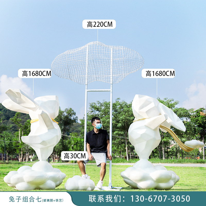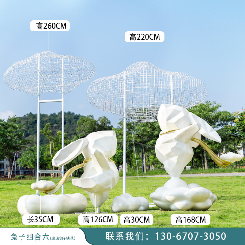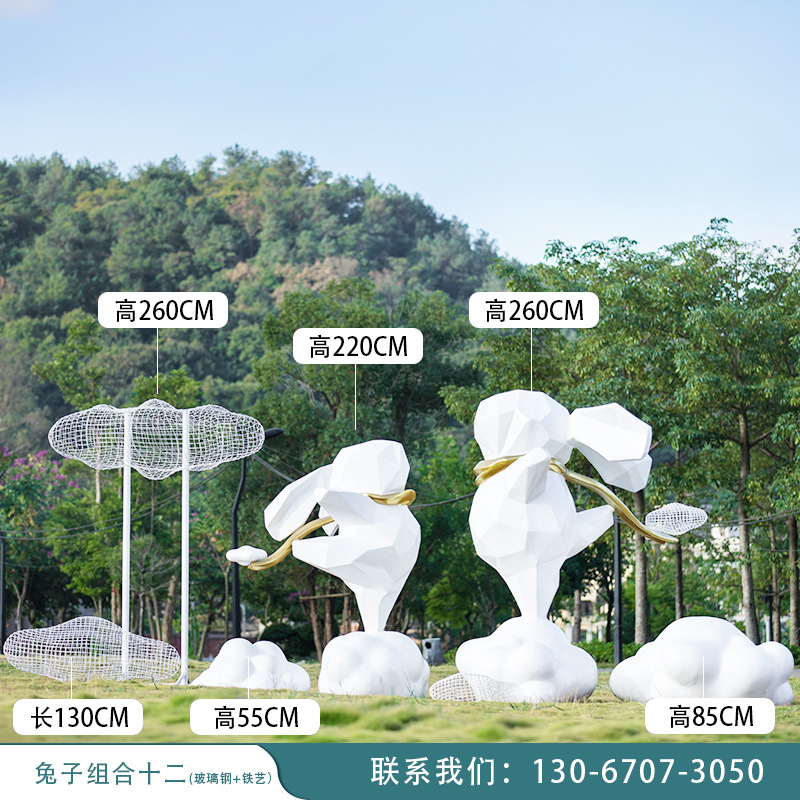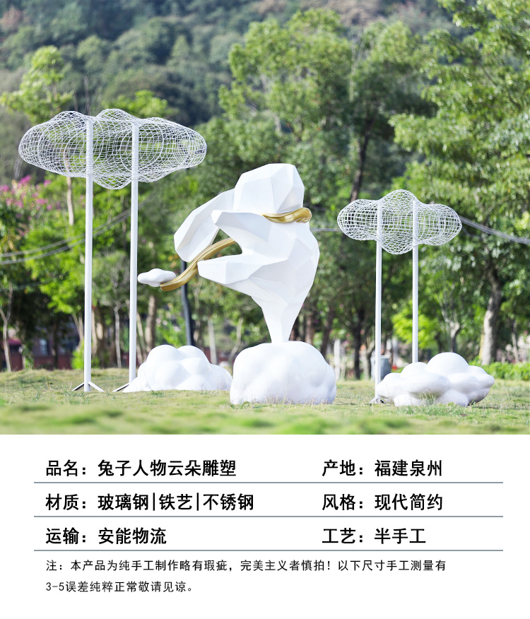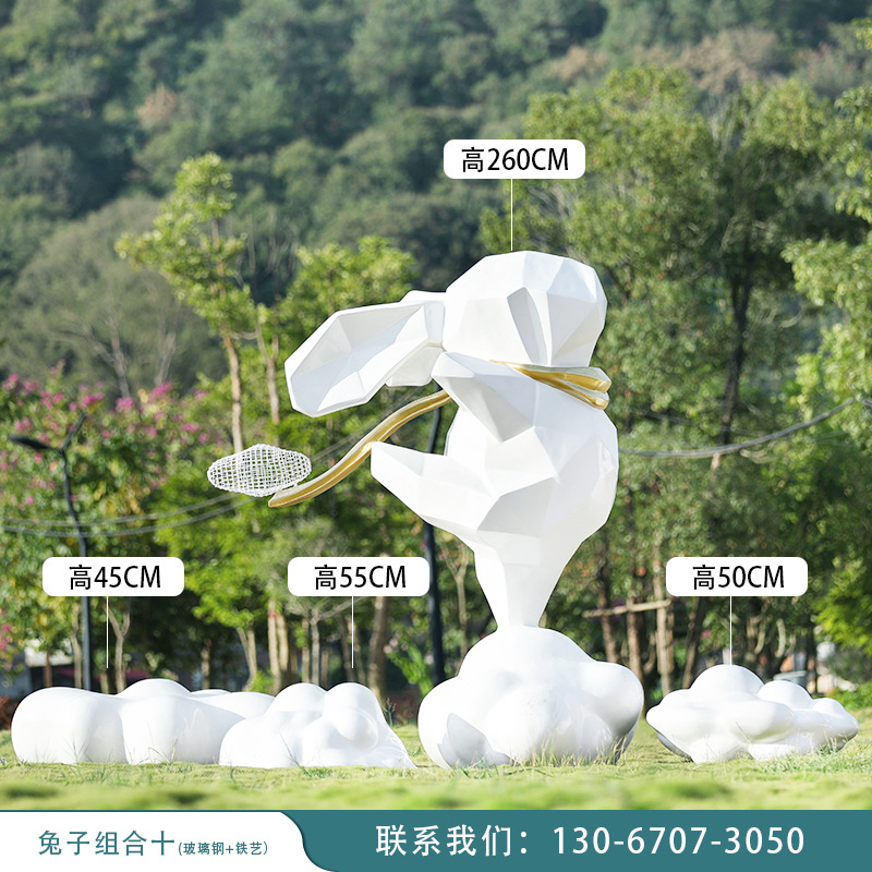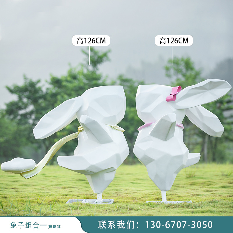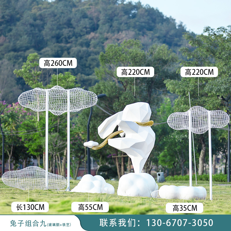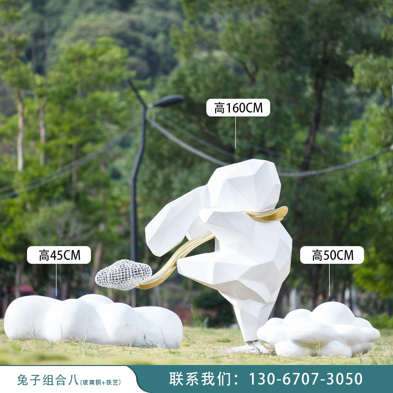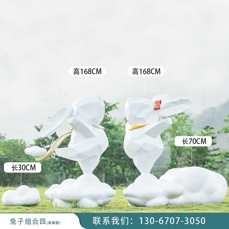 야외 인터넷 기념 추상 기하학적 토끼 유리 섬유 강화 플라스틱 조각 스테인레스 스틸 구름 그림 커뮤니티 잔디 장식 장식품스토어 가기