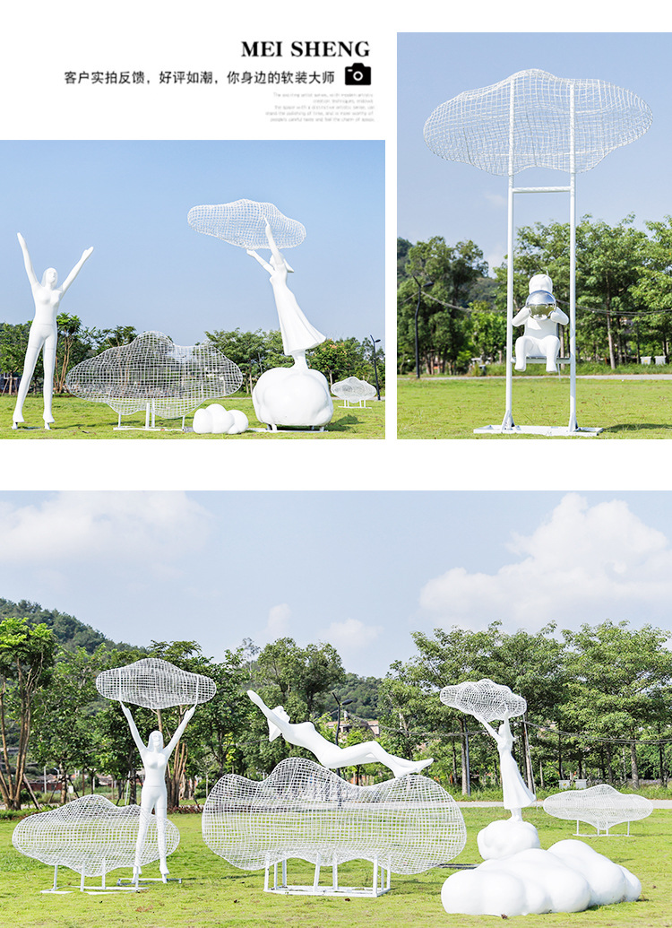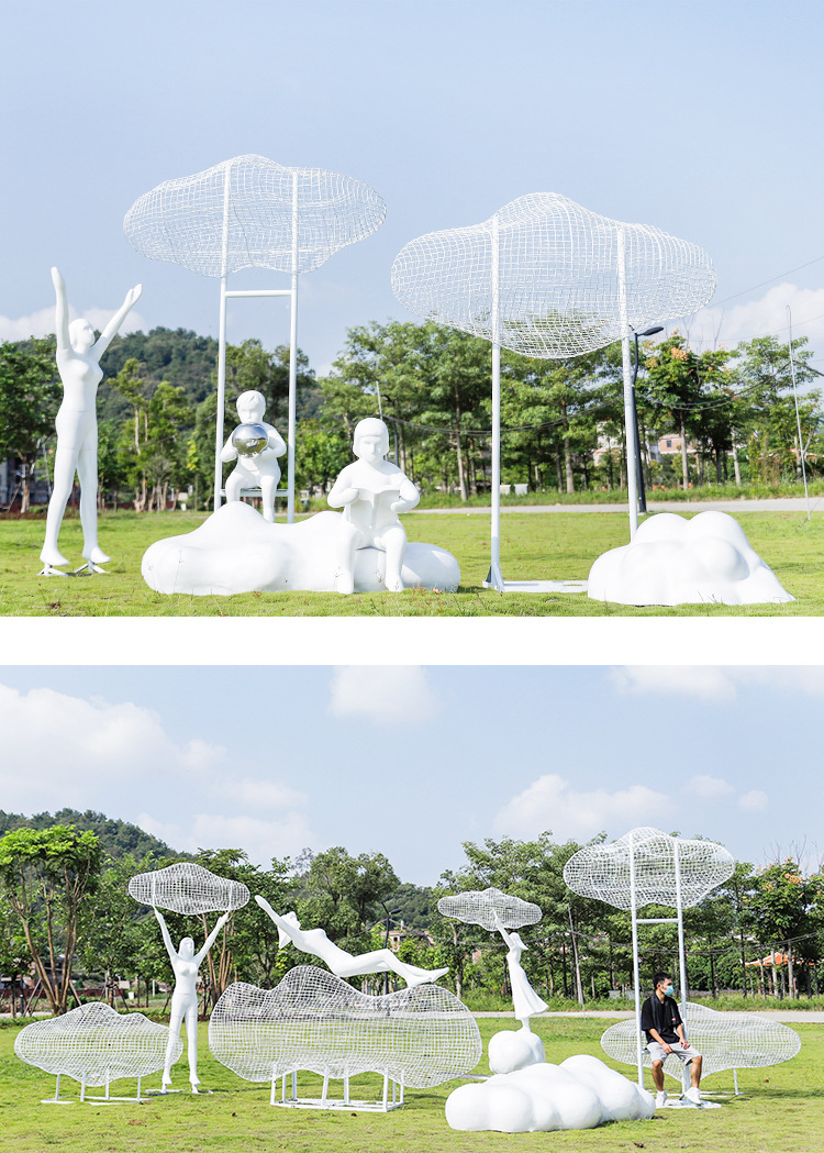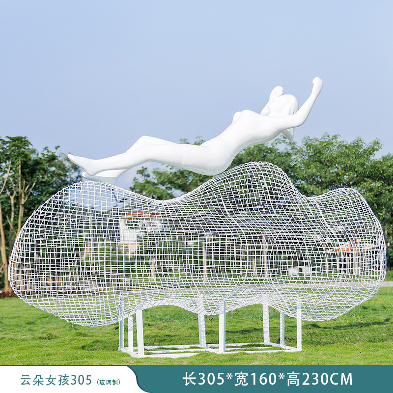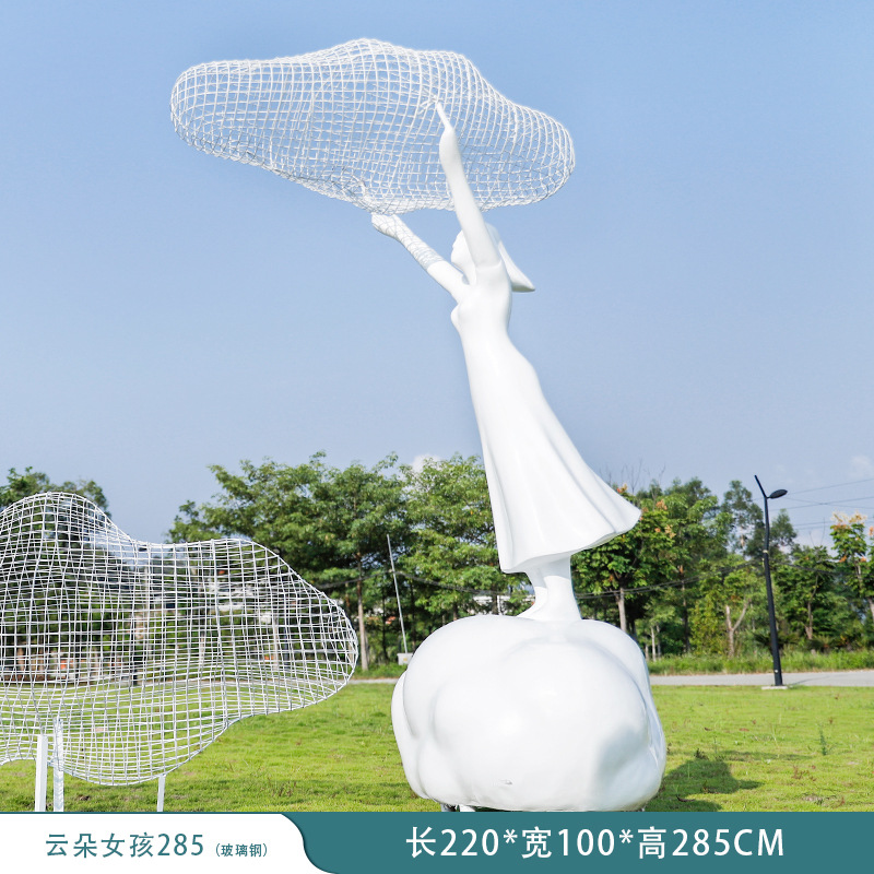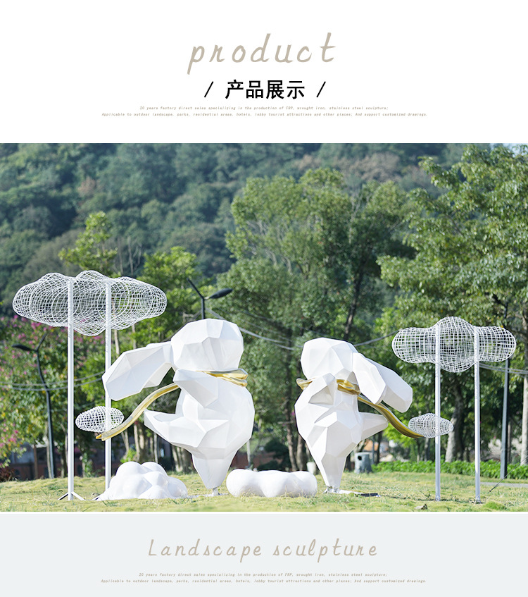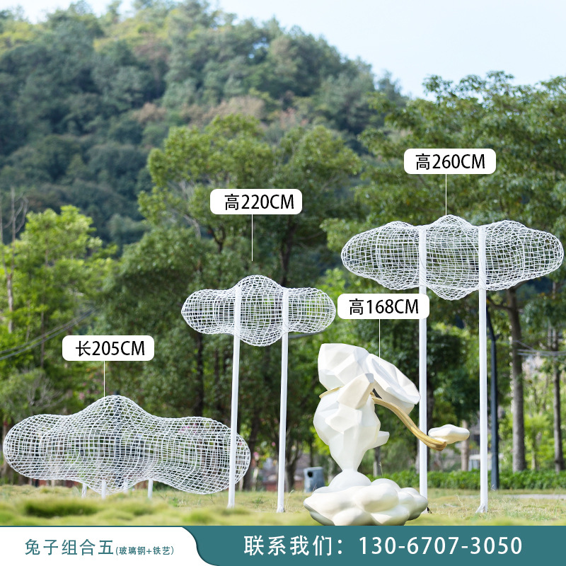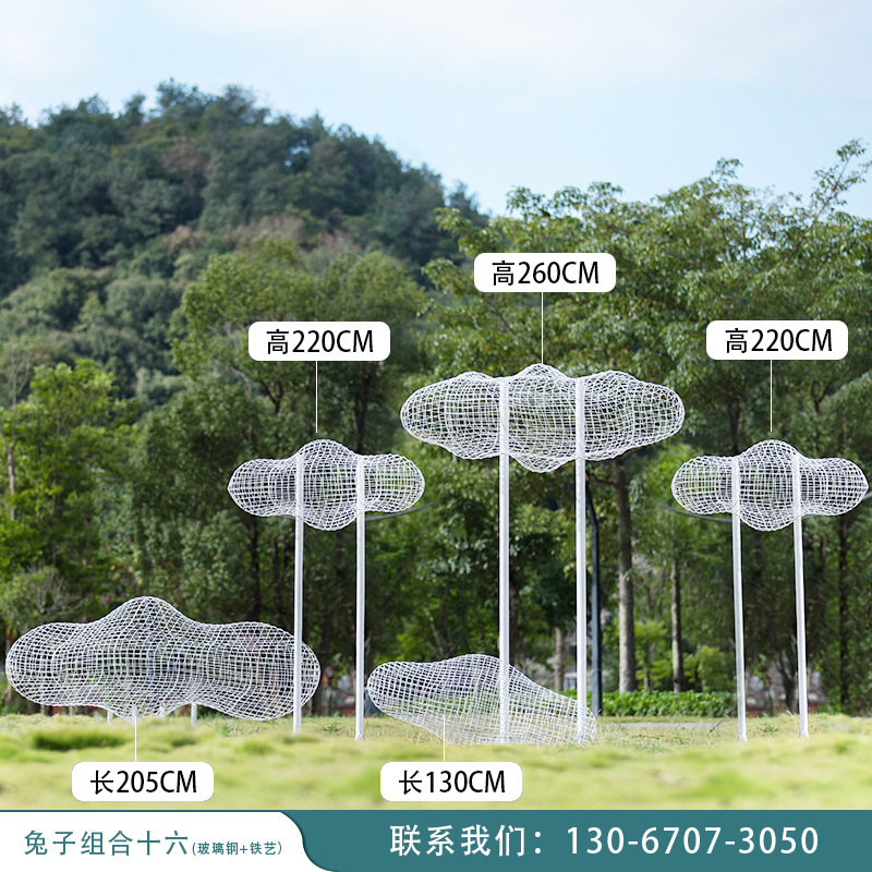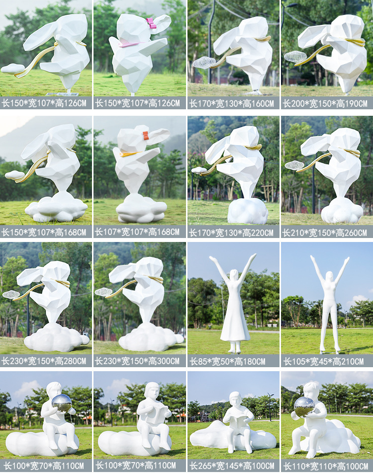 야외 인터넷 기념 추상 기하학적 토끼 유리 섬유 강화 플라스틱 조각 스테인레스 스틸 구름 그림 커뮤니티 잔디 장식 장식품스토어 가기