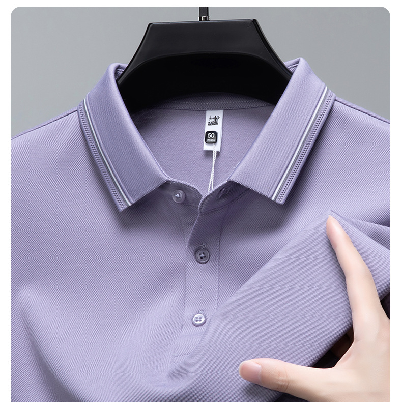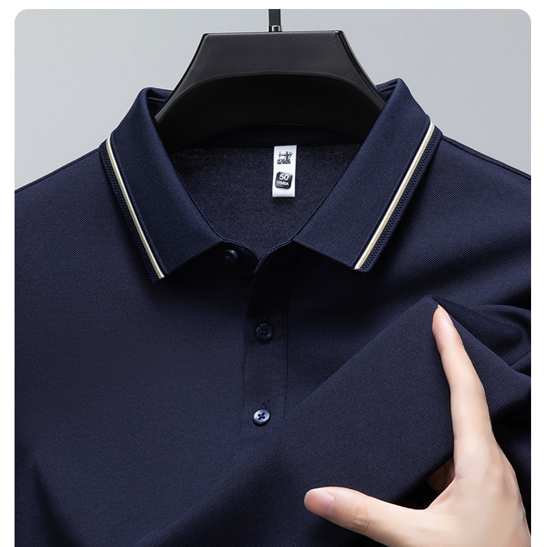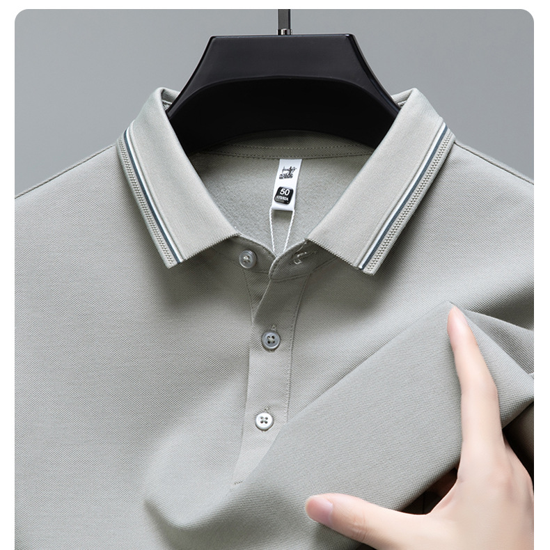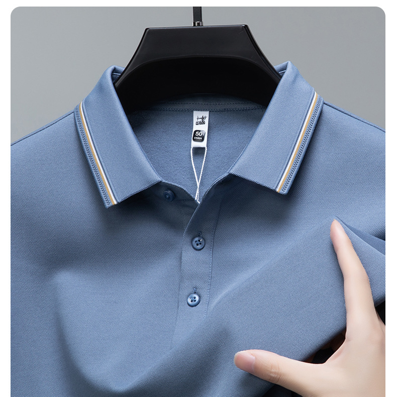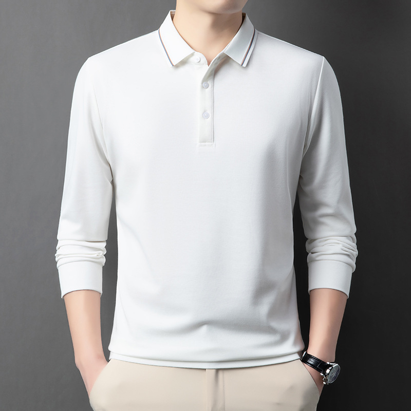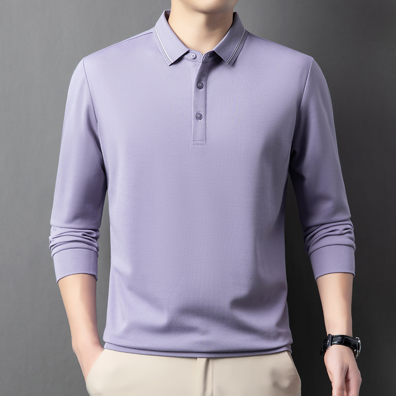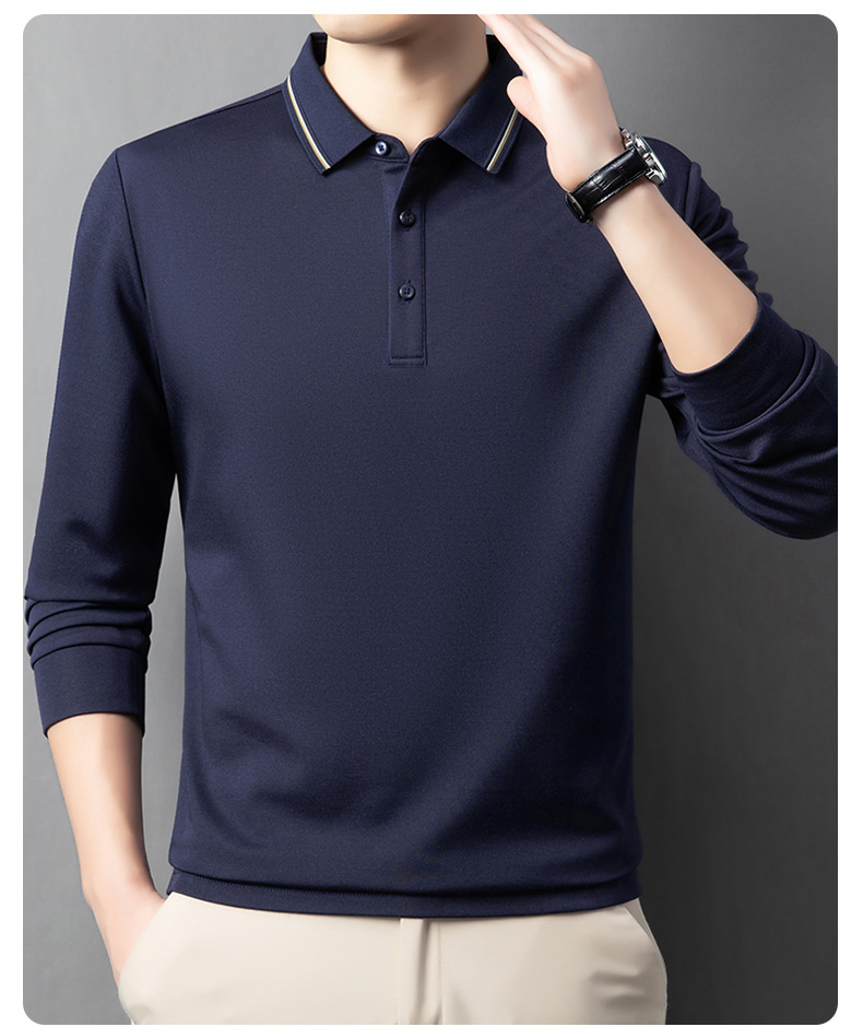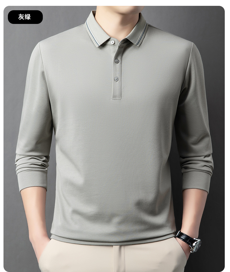 고급 센스 뽕나무 실크 긴팔 남성 폴로 셔츠 2025 봄 새로운 간단한 단색 캐주얼 남성용 긴팔 티셔츠