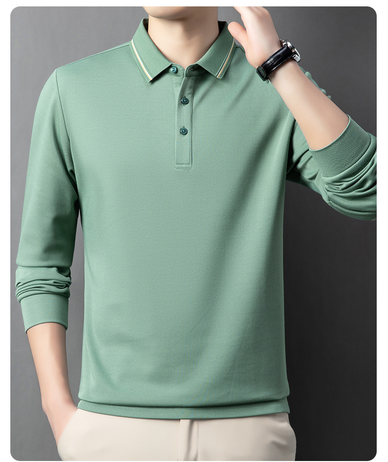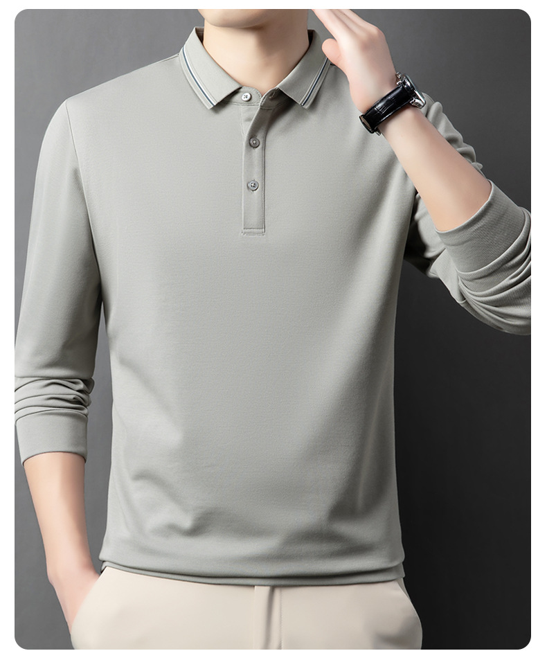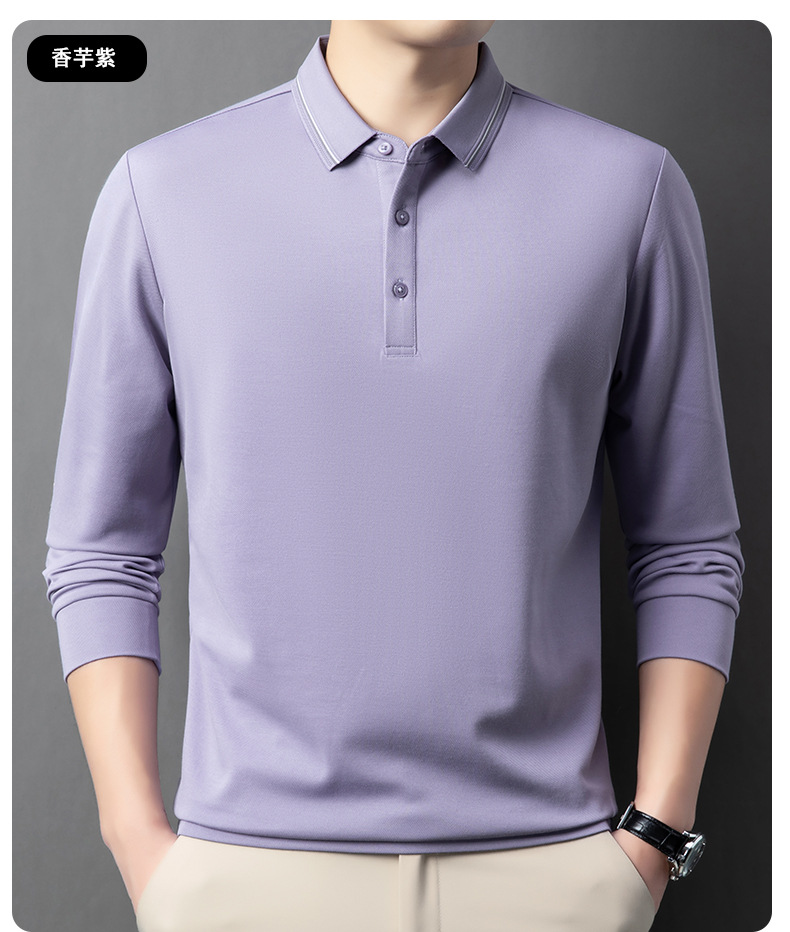 고급 센스 뽕나무 실크 긴팔 남성 폴로 셔츠 2025 봄 새로운 간단한 단색 캐주얼 남성용 긴팔 티셔츠스토어 가기