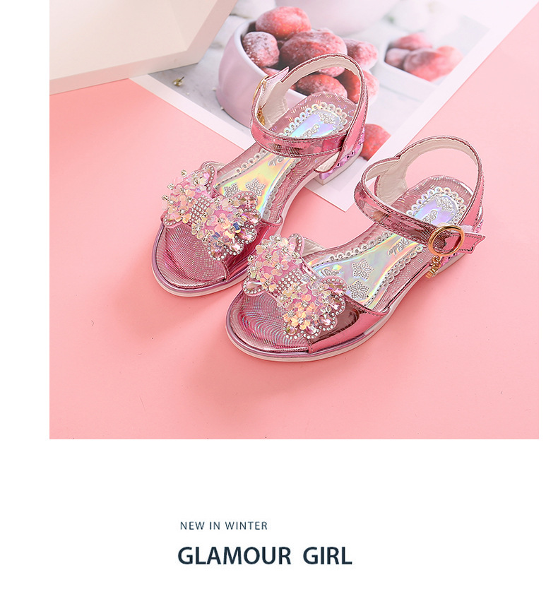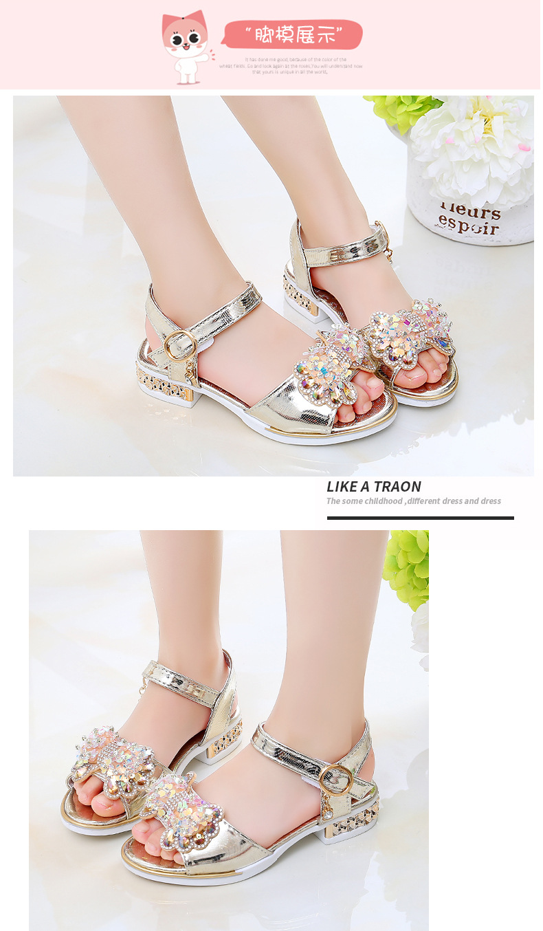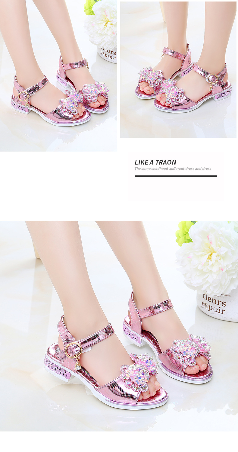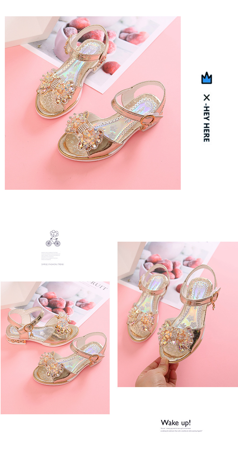 여자 오픈 발가락 샌들 2025 여름 새 한국식 크리스탈 브라이트 다이아몬드 캐주얼 소프트 솔 베이비 걸스 중소 사이즈 신발스토어 가기