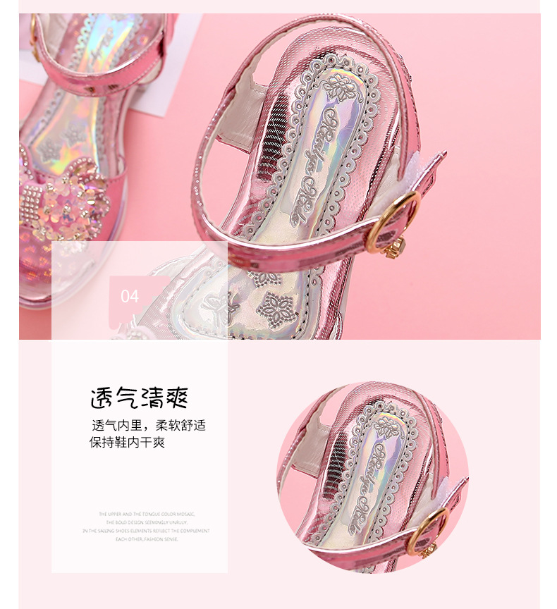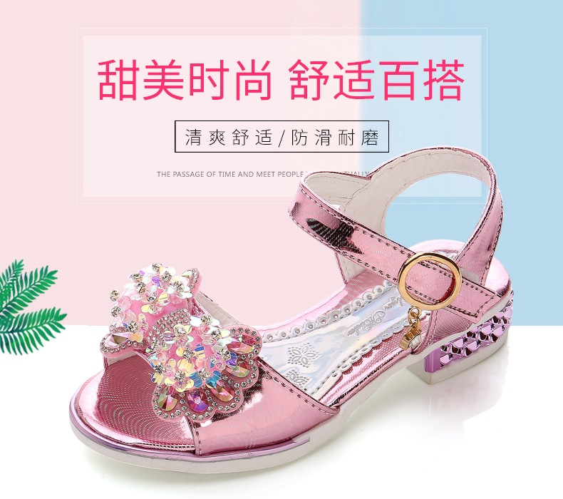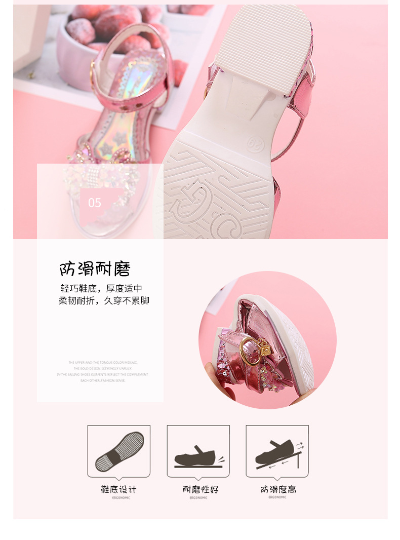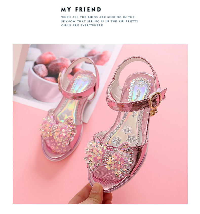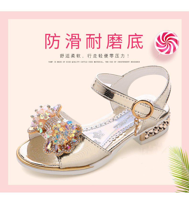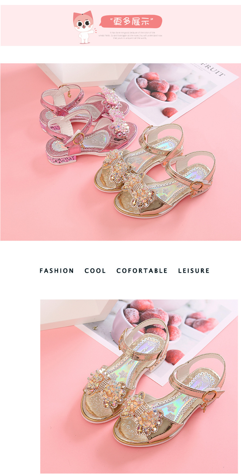 여자 오픈 발가락 샌들 2025 여름 새 한국식 크리스탈 브라이트 다이아몬드 캐주얼 소프트 솔 베이비 걸스 중소 사이즈 신발스토어 가기