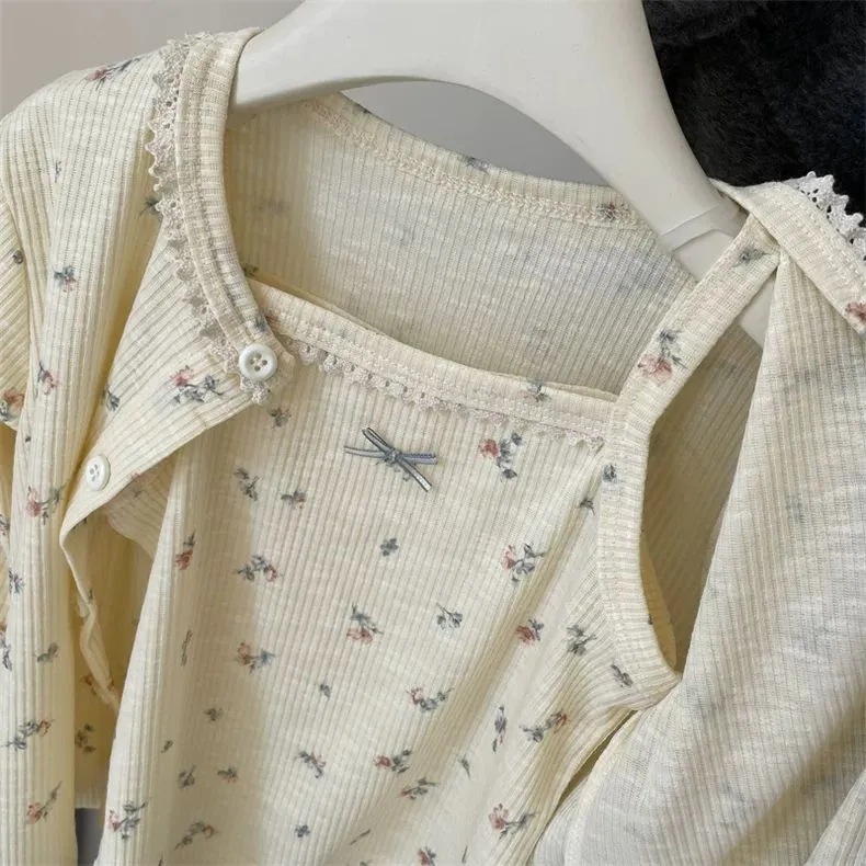 소녀의 꽃 카디건 슬링 세트 서양식 봄 새로운 2025 아기 소녀 달콤한 조끼 투피스 올 매치 세트