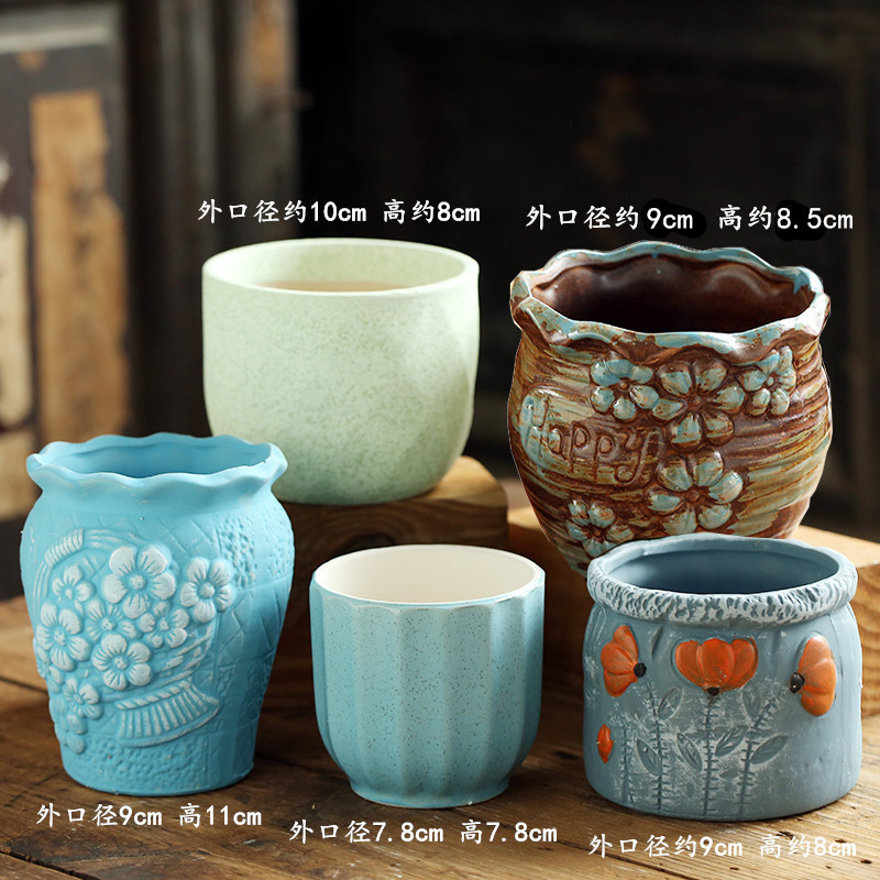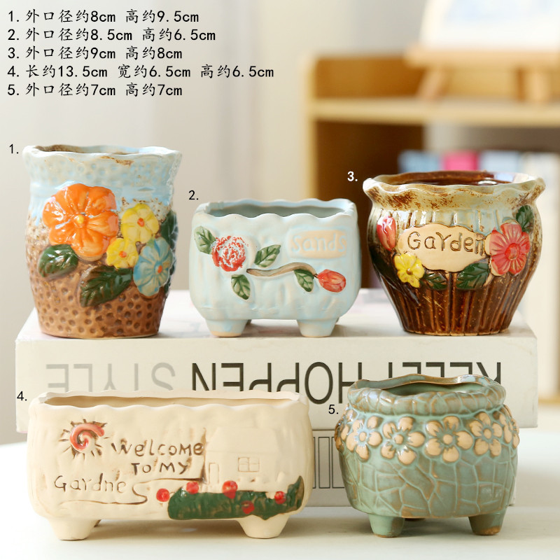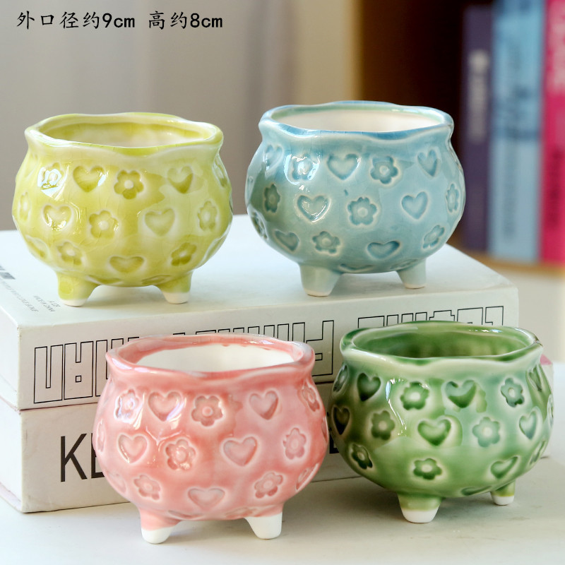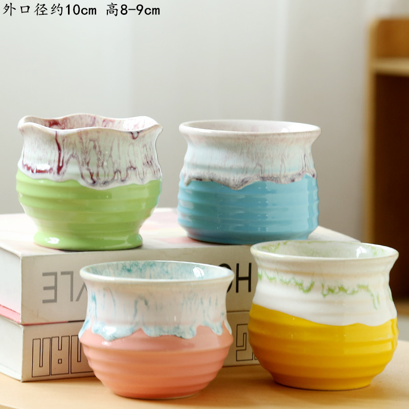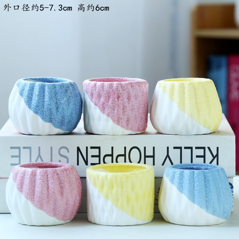 꽃 냄비 세라믹 스몰 사이즈 새로운 마카롱 뇌졸중 간단한 성격 가정용 다육 꽃 냄비 소스 공장 원피스 도매스토어 가기