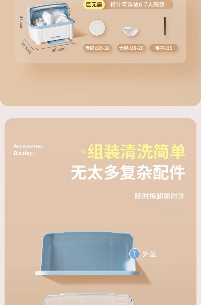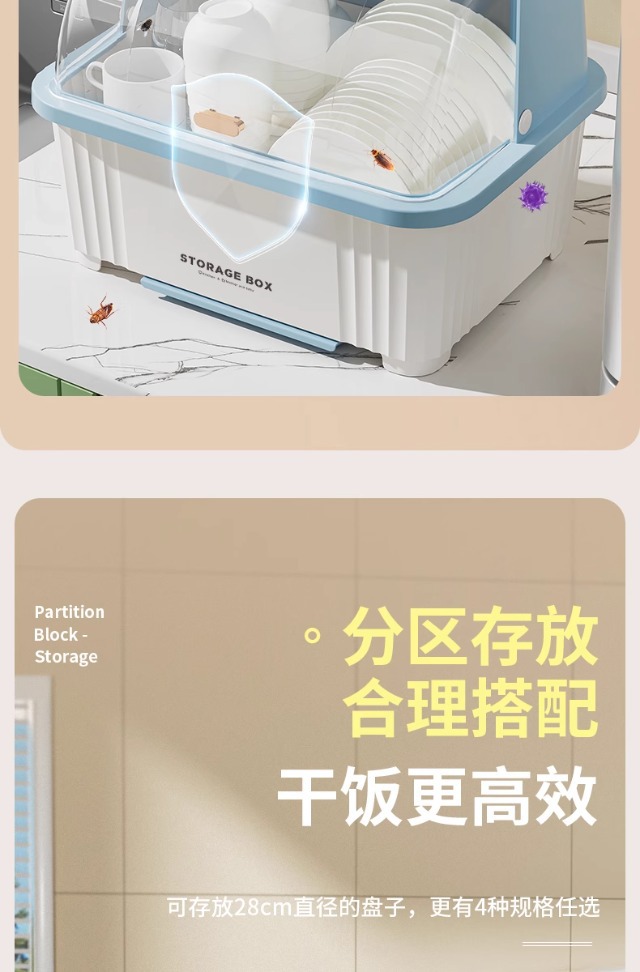 뚜껑이있는 그릇 및 젓가락 보관 상자 가정용 보관 주방 접시 페인트 칠하기 컵 보드 조리대 접시 큰 그릇