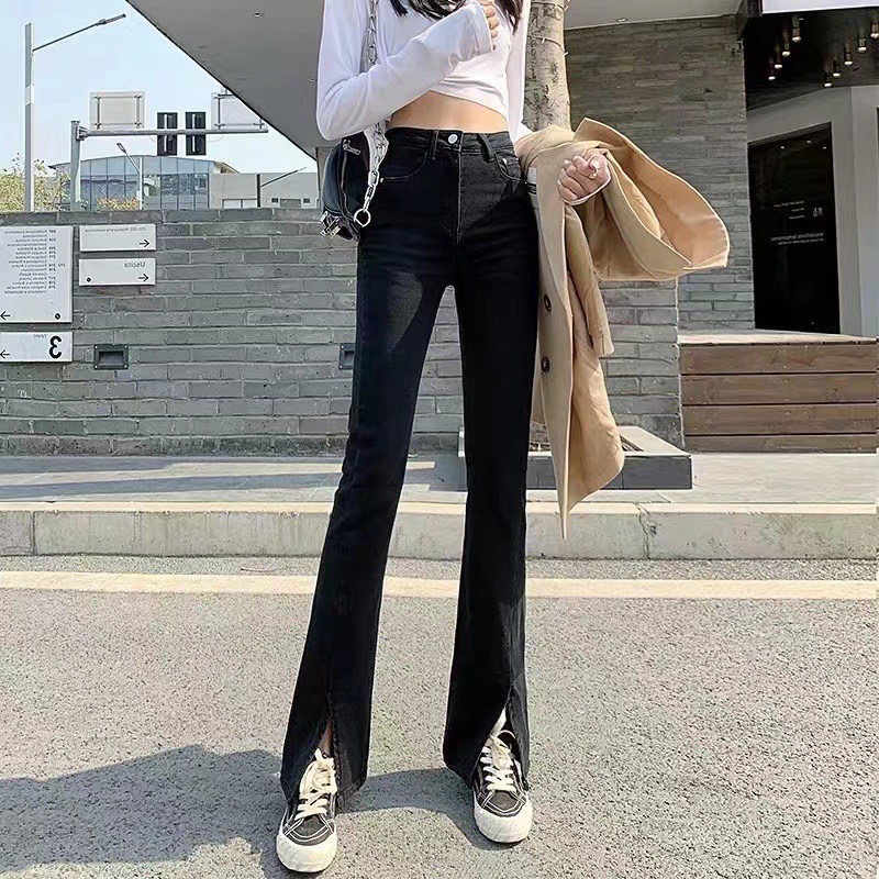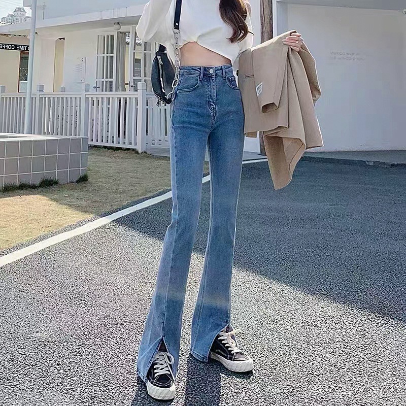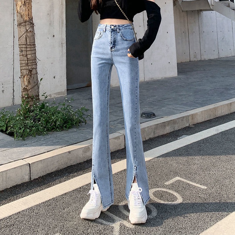 빈티지 마이크로 데님 바지 여성 봄과 여름 높은 허리 탄성 슬림 스트레이트 와이드 레그 바이 커런트 바지스토어 가기