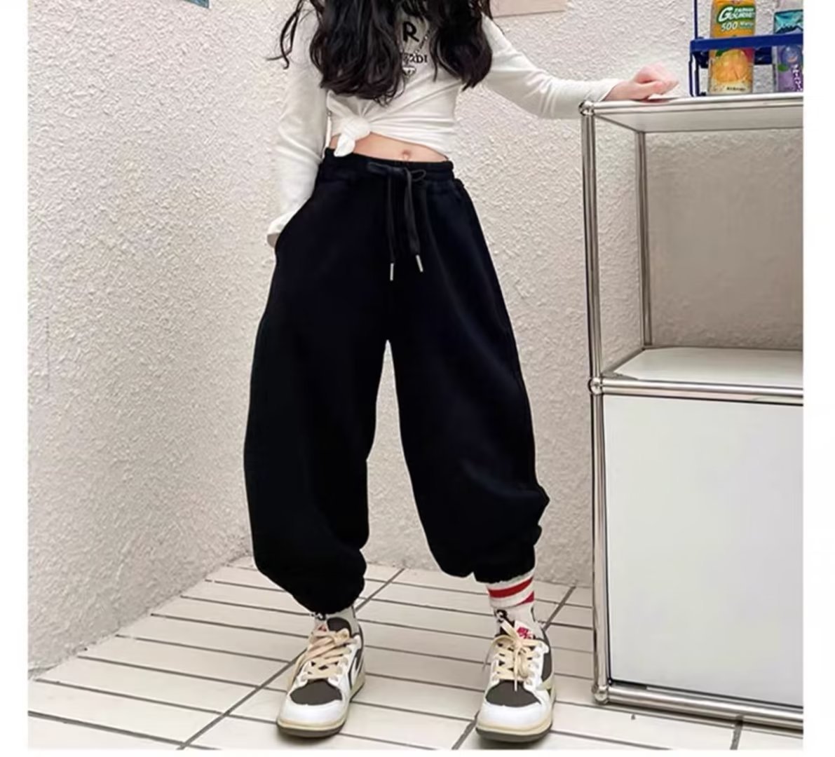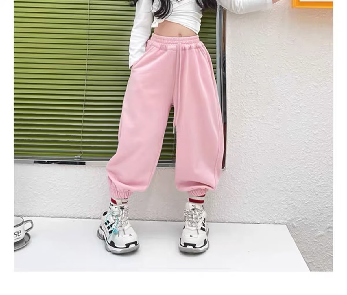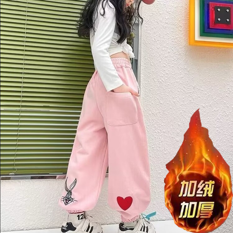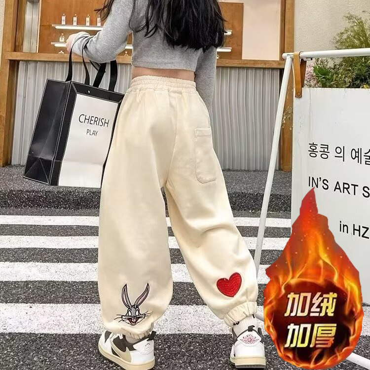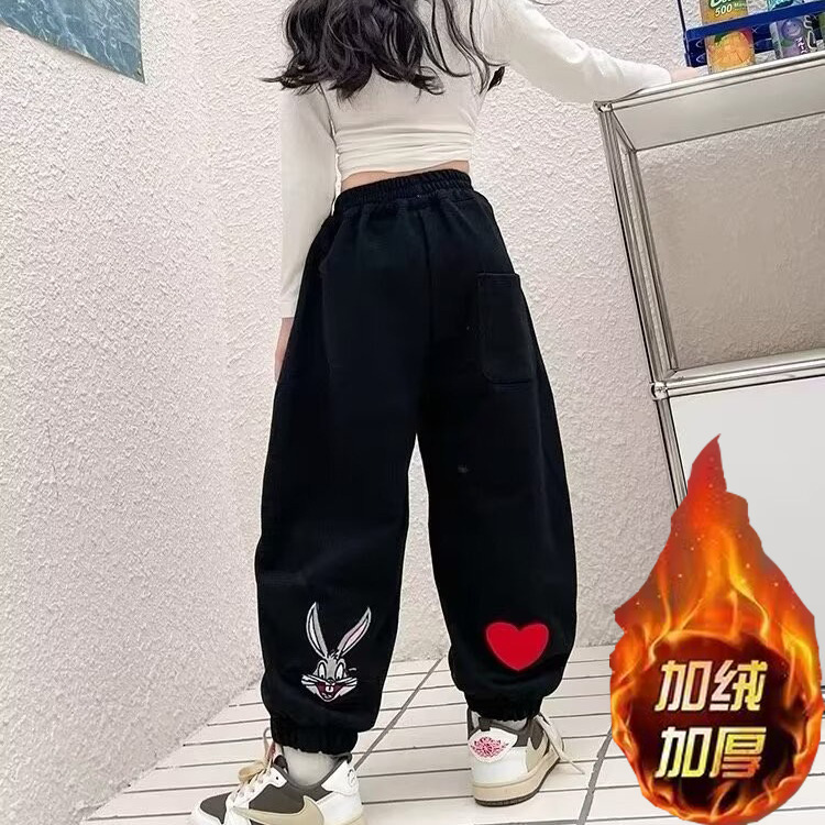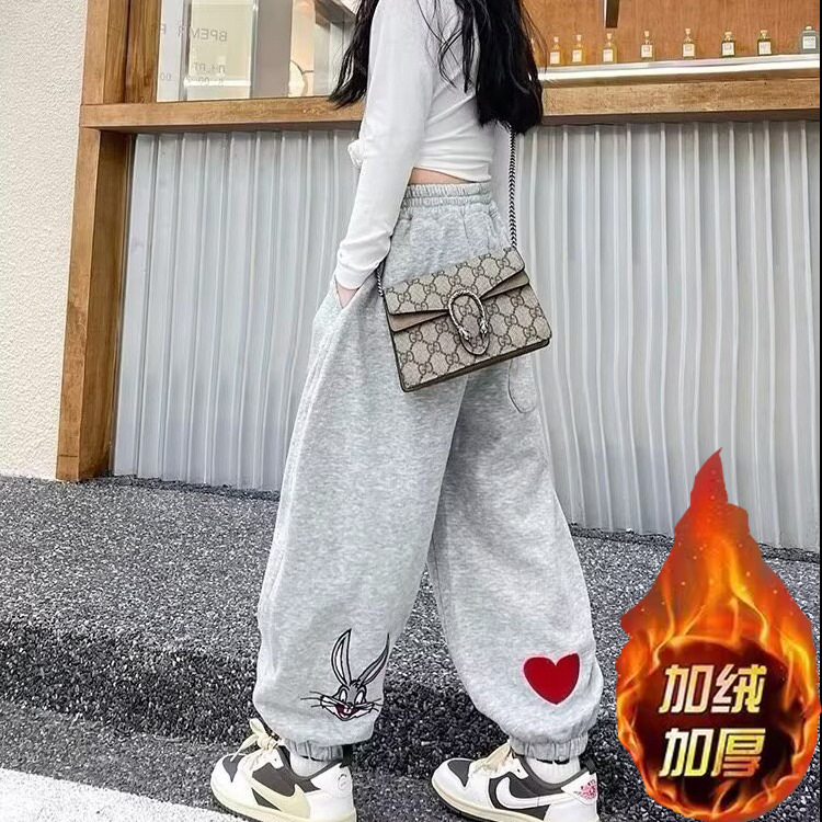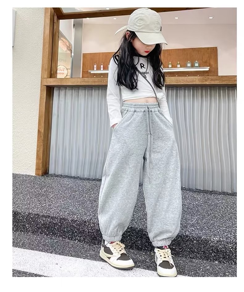 소녀 스웨트 팬츠 가을 2023 년 새 어린이 한국식 트렌디 쿨 하렌 바지 스포츠 바지 캐주얼 발목 묶은 바지스토어 가기