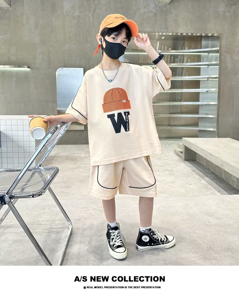 남자들의 여름 원피스 세트 2023 새로운 도착 CUHK 어린이 소년의 여름 시원하고 잘 생긴 여름 온라인 인기 잘 생긴 유행 패션스토어 가기
