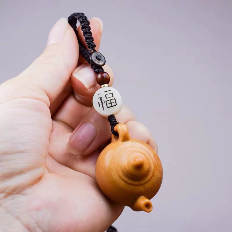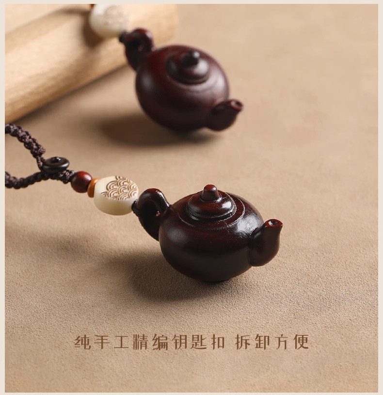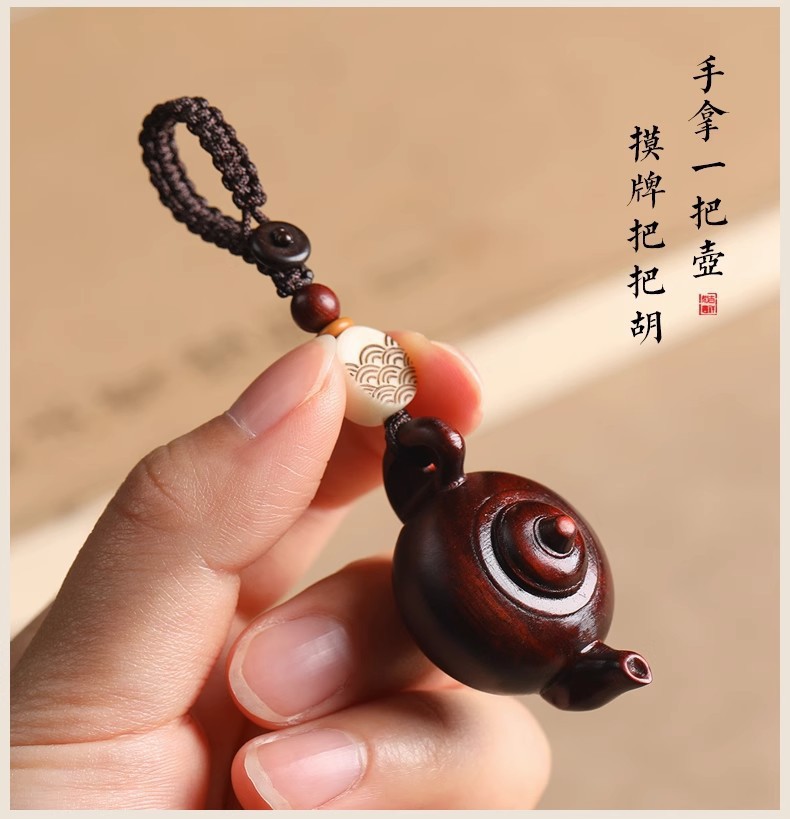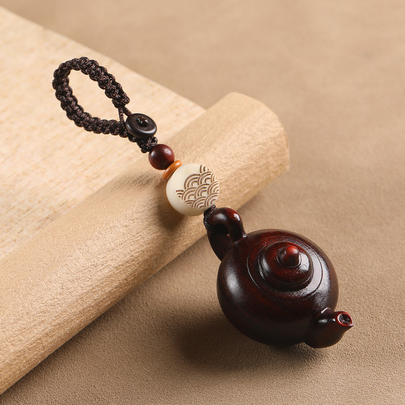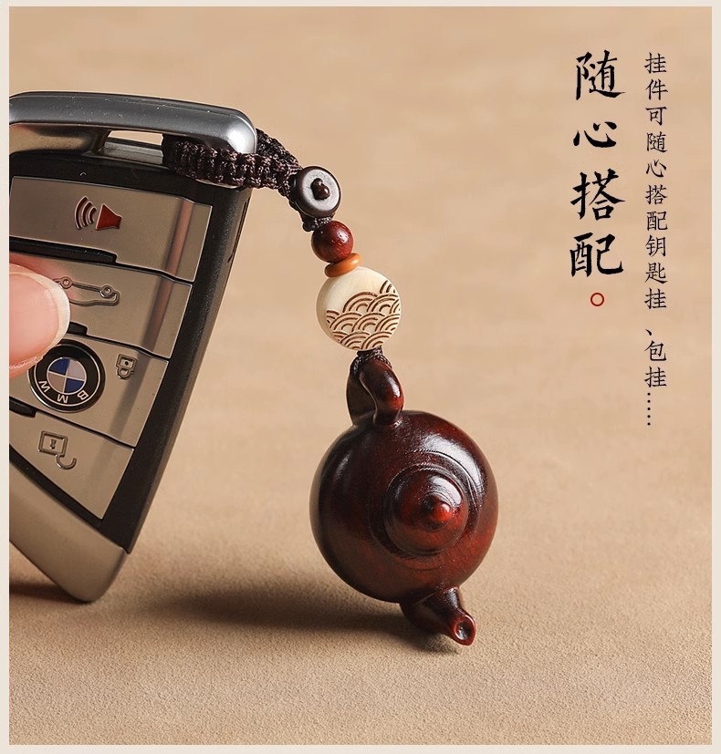 아프리카 로즈 우드 핸들 냄비 자동차 키 체인 펜던트 핸들 Hu 주전자 핸들 조각 남성과 여성의 휴대 전화 체인 펜던트스토어 가기