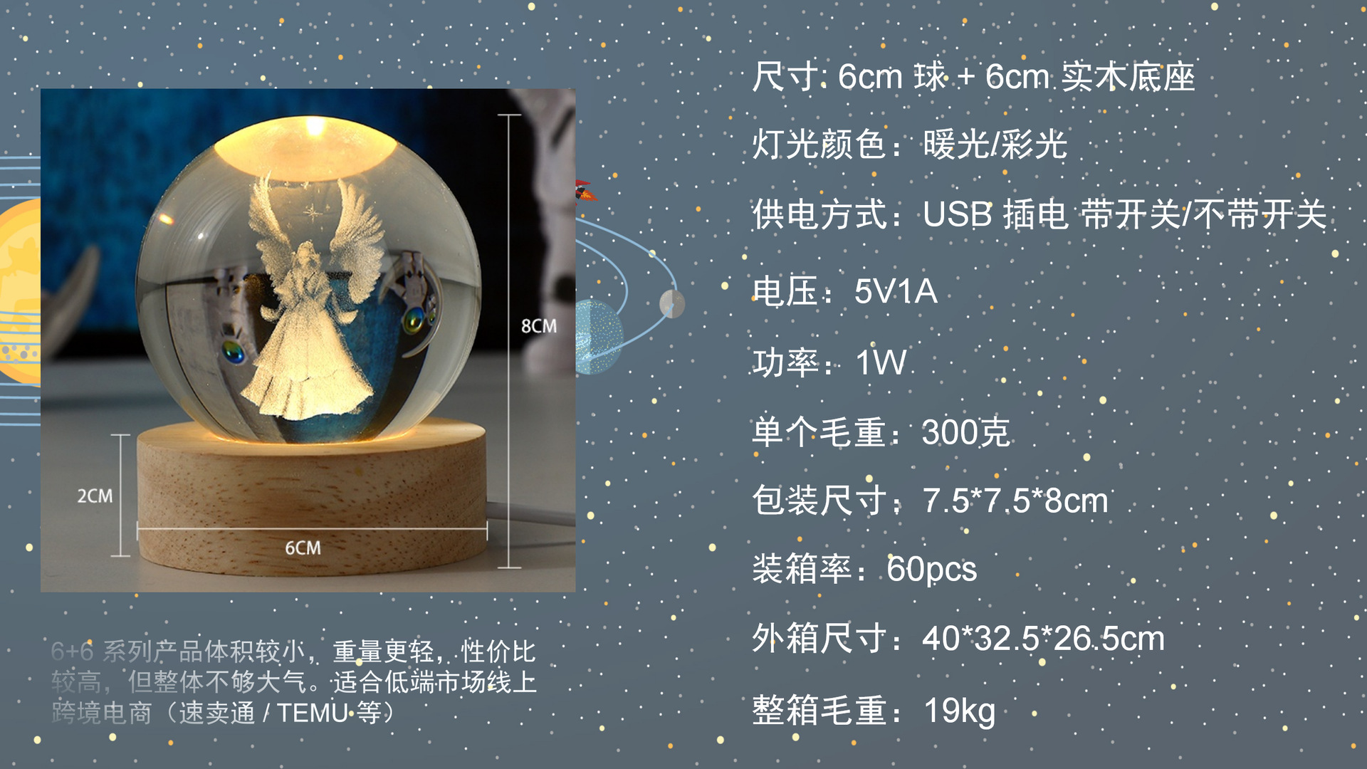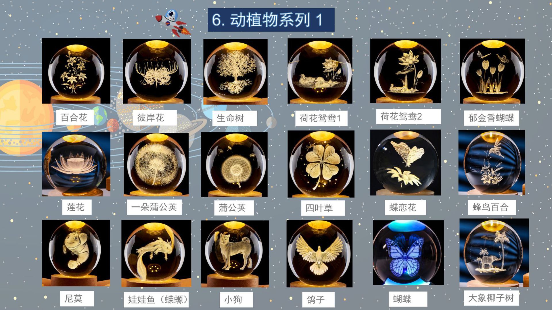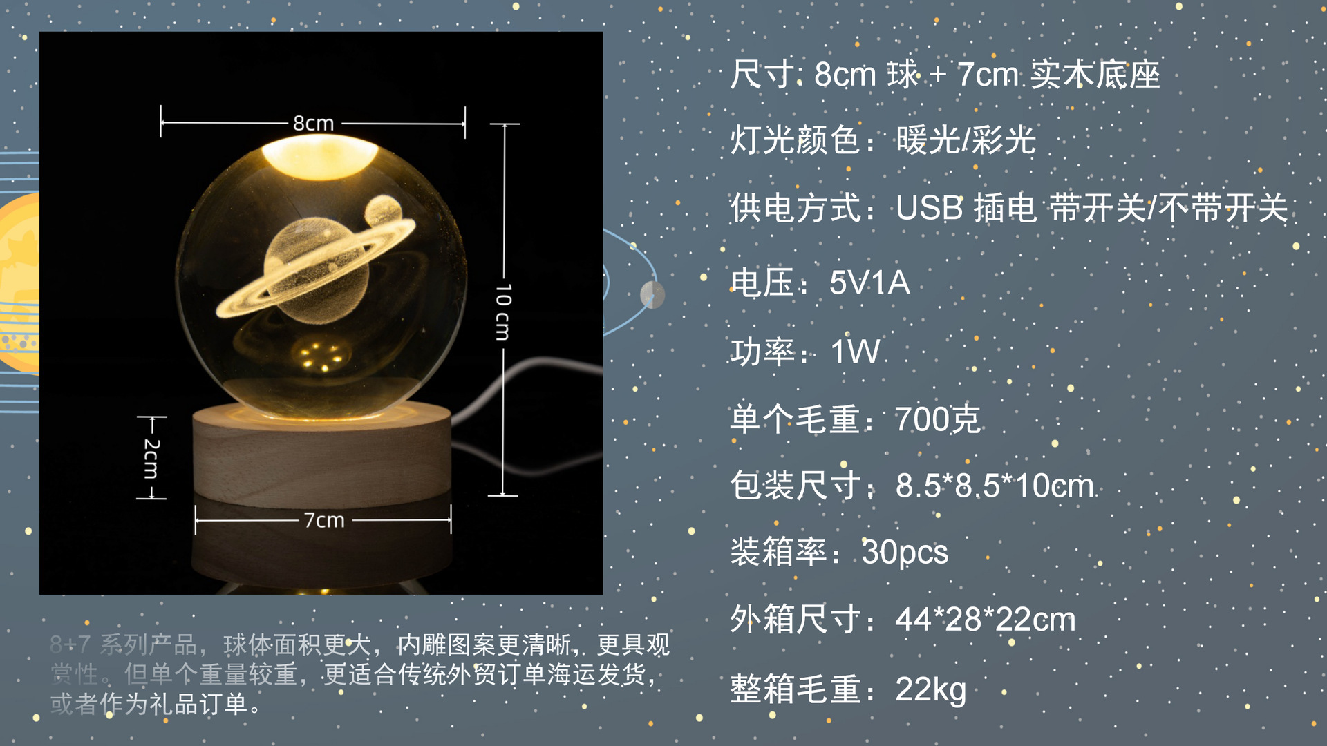 스타 토성 창조적 인 크리스탈 볼 밤 빛 빛나는 나무베이스 장식품 유리 공 3D 조각 공룡 크로스-테두리스토어 가기