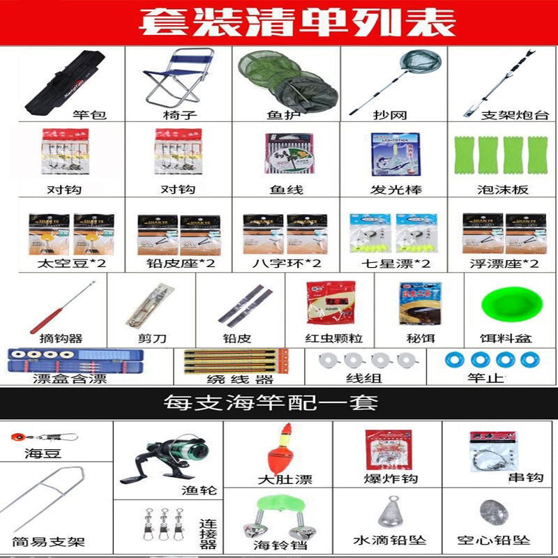 낚싯대 세트 조합 손 막대 바다 막대 풀 세트 낚시 기어 초보자 낚싯대 울트라 빛 슈퍼 하드 세트 낚시 Ruiziyin스토어 가기