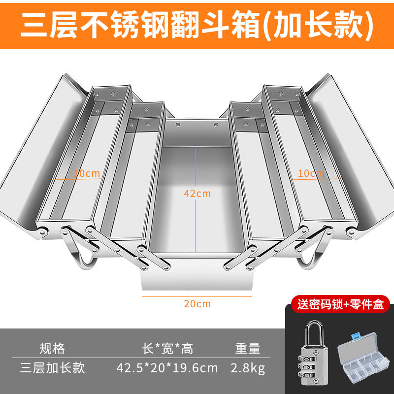 스테인레스 스틸 도구 산업 도구 저장 상자 접이식 가정용 틸트 박스 다기능 3 층 잠금 장치로 두껍게