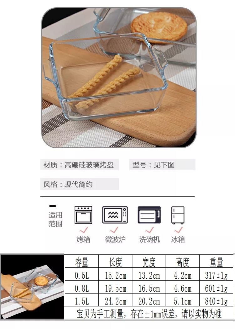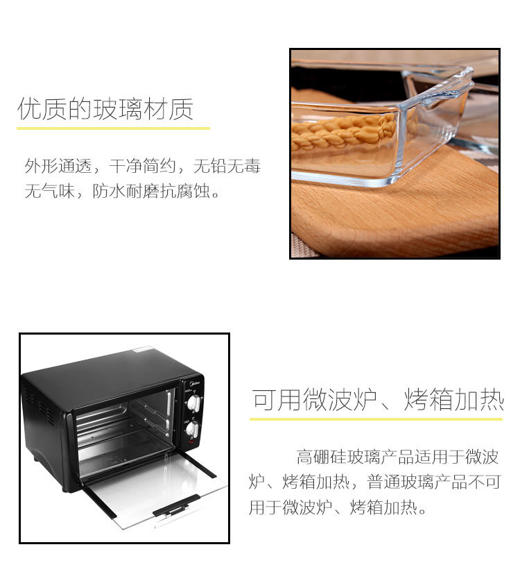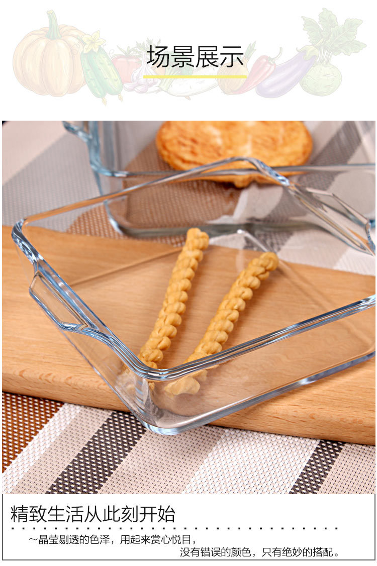 25N 내열성 유리 굽기 팬 투명한 마이크로파 오븐 가정용 구운 쌀 굽기 플레이트 사각형 직사각형 라운드스토어 가기