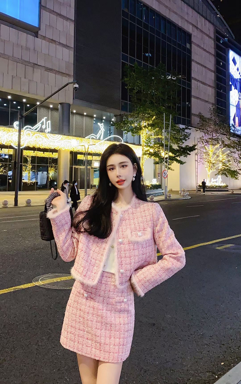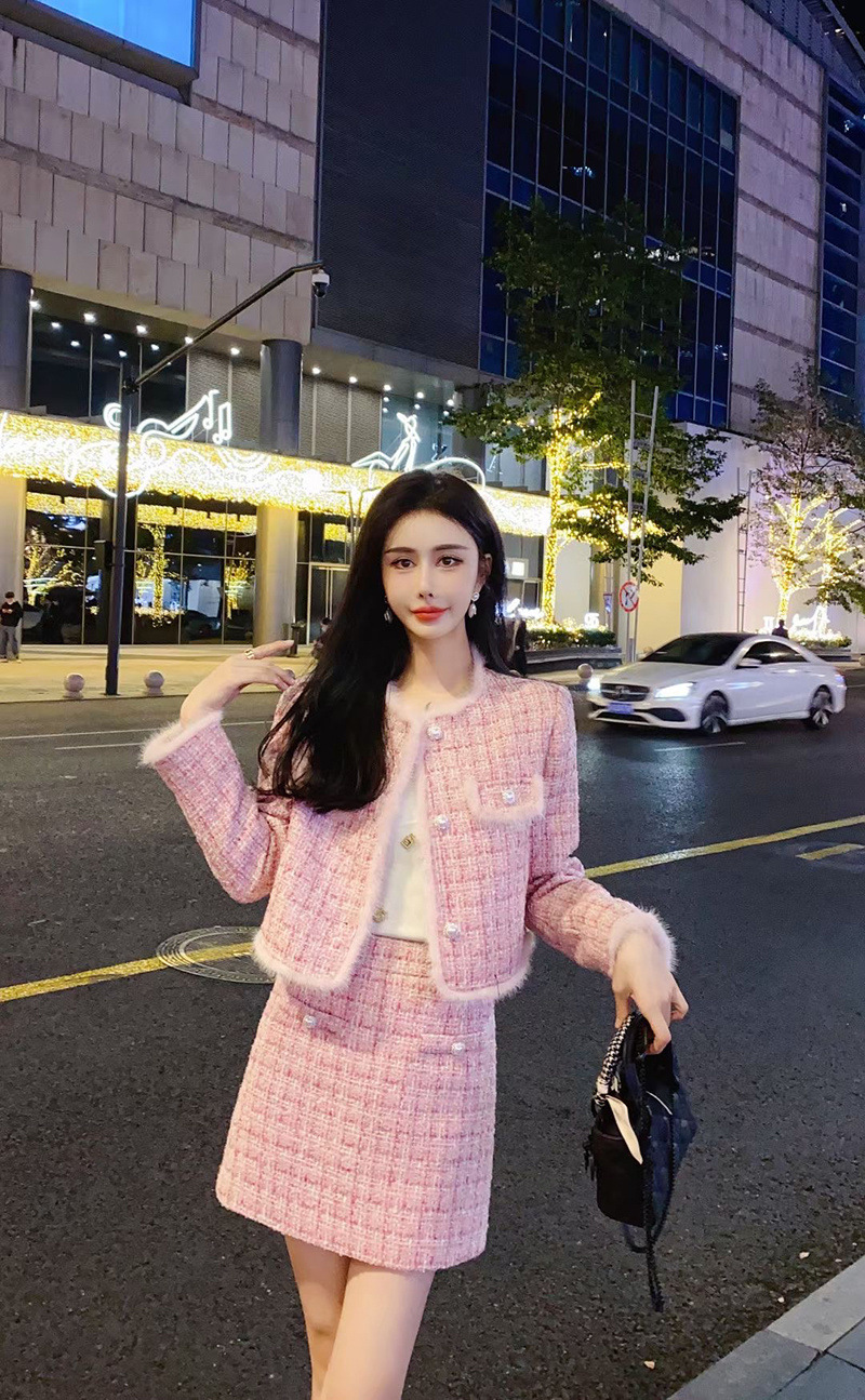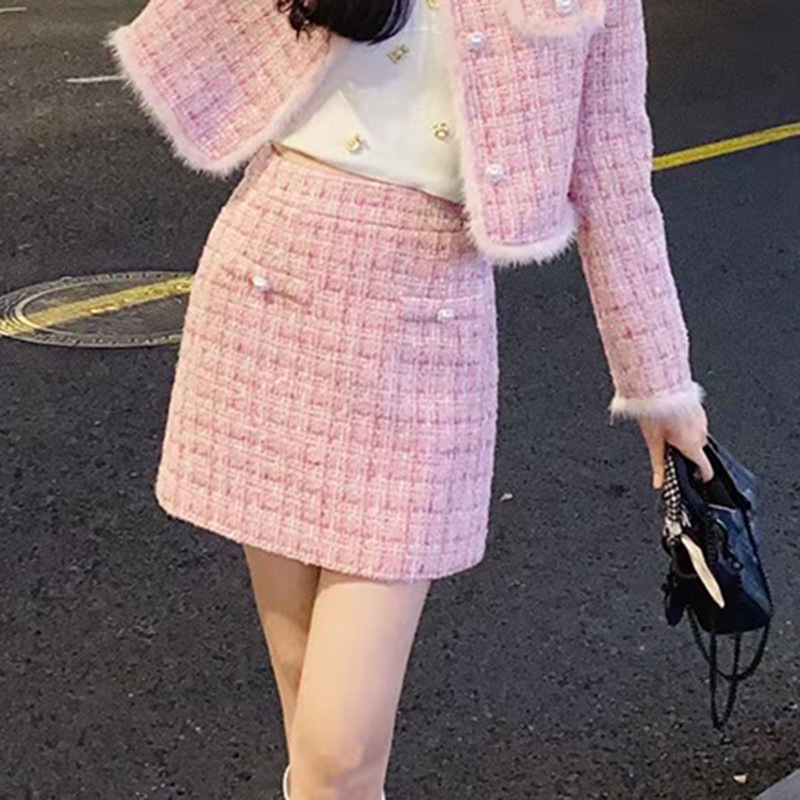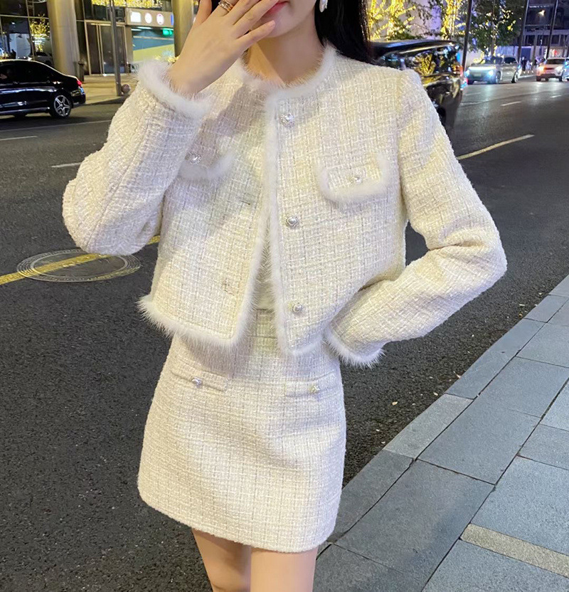 고급 향기로운 스타일에 대한 면화 향긋한 세트 여성의 가을과 겨울 새로운 두꺼운 짧은 재킷 스커트 투피스 세트스토어 가기