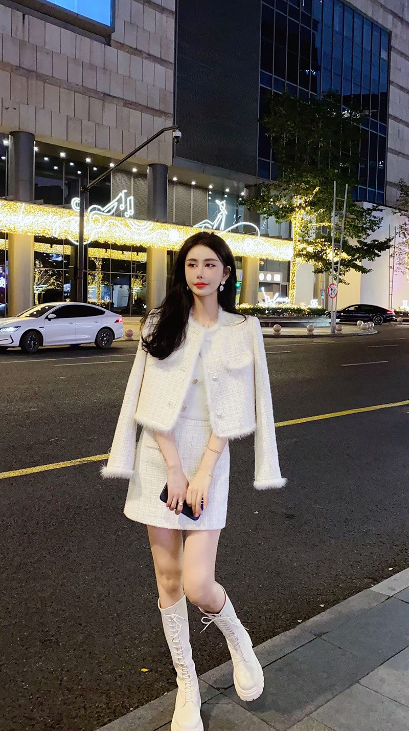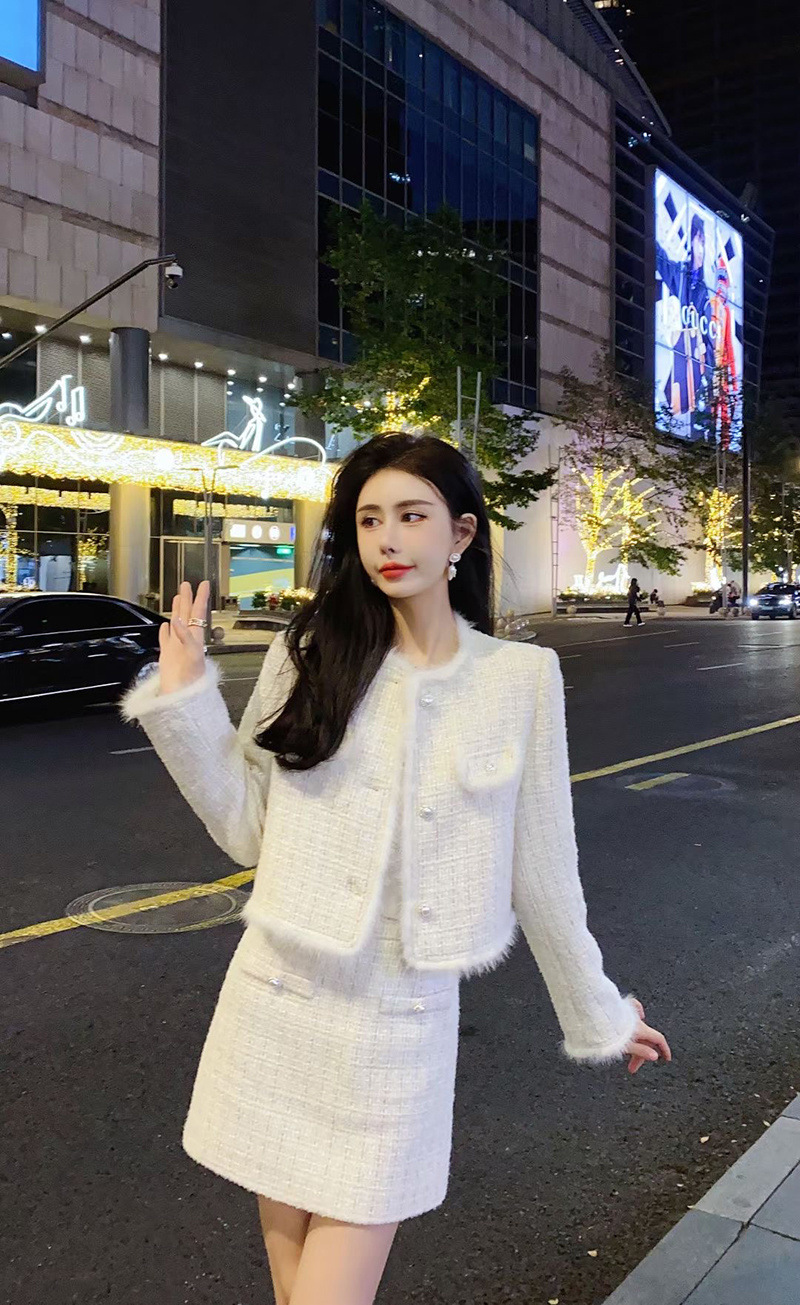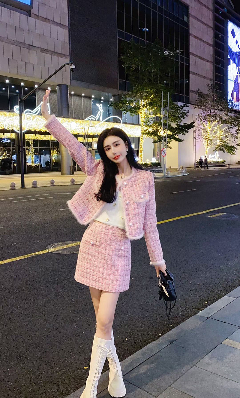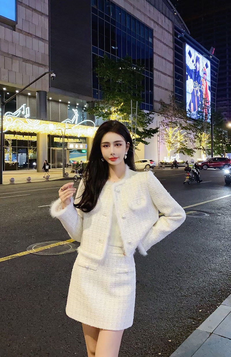 고급 향기로운 스타일에 대한 면화 향긋한 세트 여성의 가을과 겨울 새로운 두꺼운 짧은 재킷 스커트 투피스 세트스토어 가기