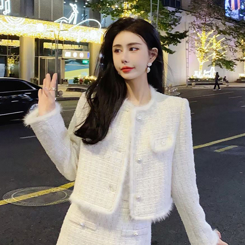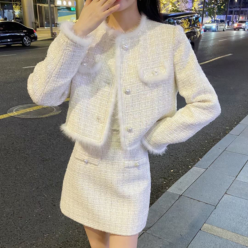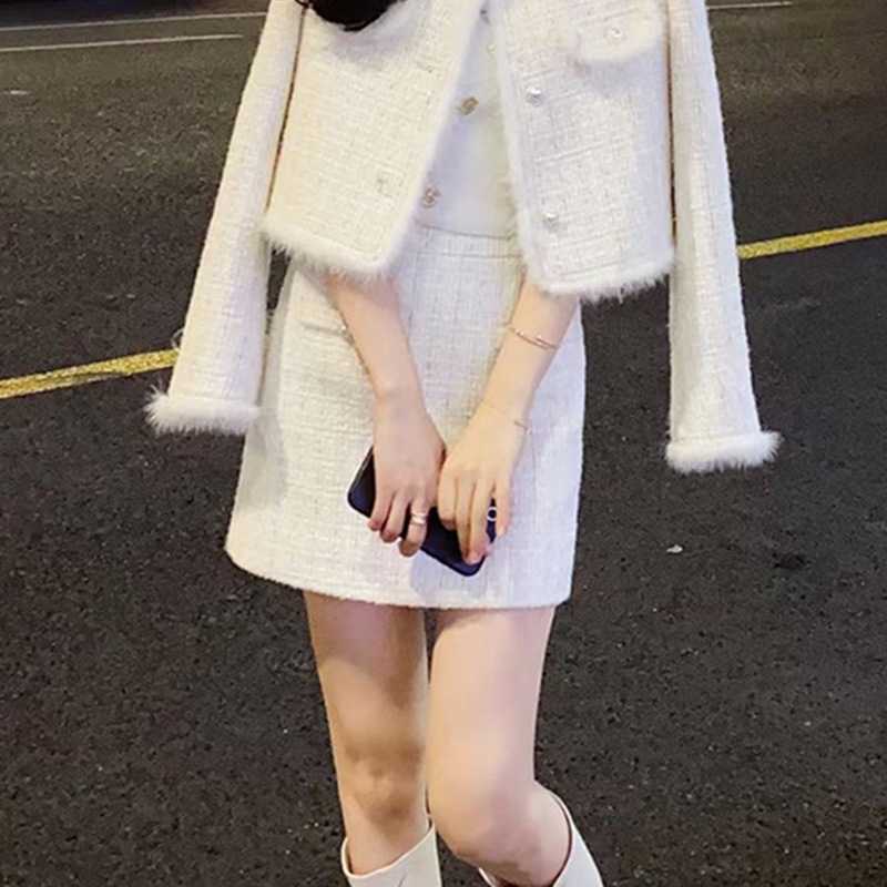 고급 향기로운 스타일에 대한 면화 향긋한 세트 여성의 가을과 겨울 새로운 두꺼운 짧은 재킷 스커트 투피스 세트