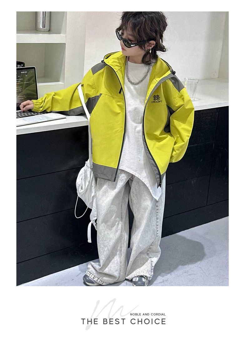 소년의 봄 컬러 매칭 코트 2025 새로운 스타일 중첩 소년의 리퍼 슈아이 프라이드 스트리트 방풍 러스크 의류 봄과 가을 패션스토어 가기