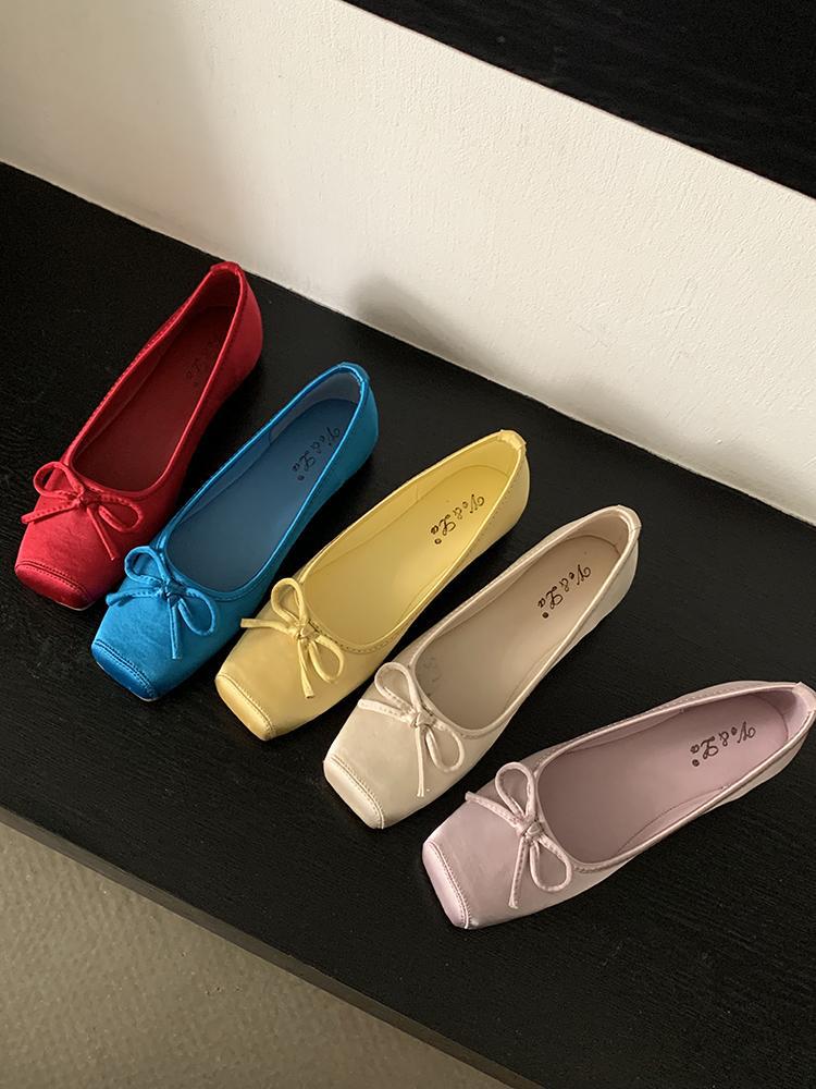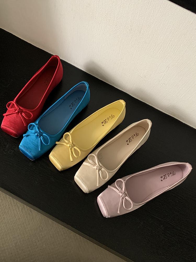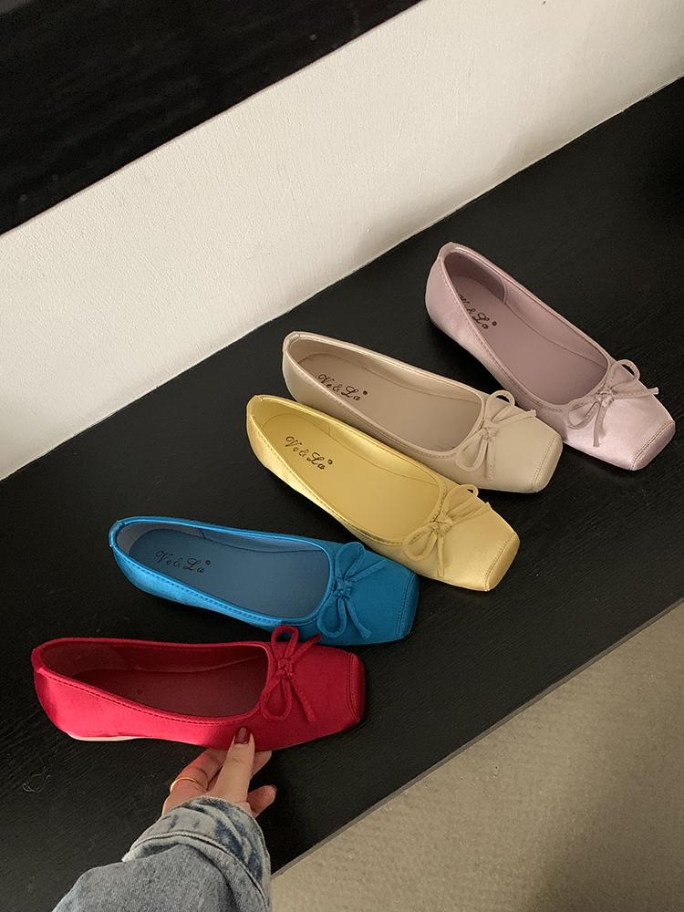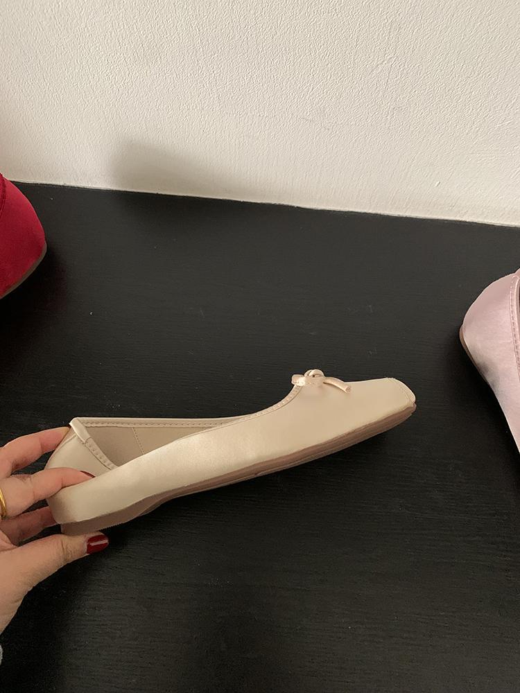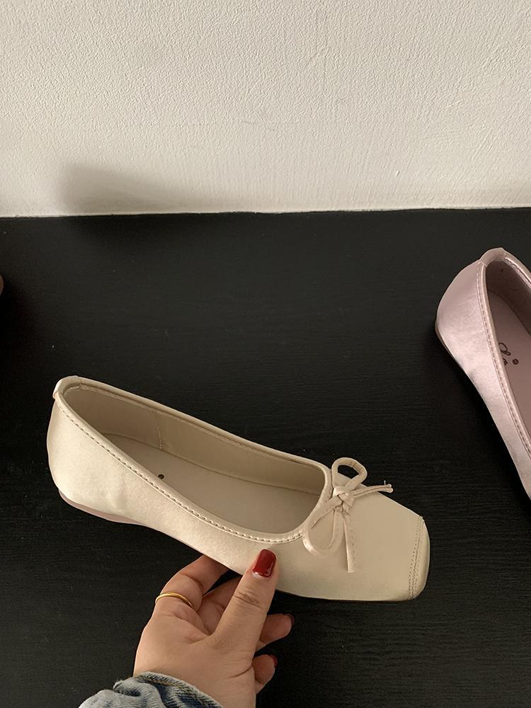 2025 새로운 스타일 내부 높이 발레 신발 밀크 신발 달콤한 스타일 활 광장 머리 얕은 입 슬립 온 신발