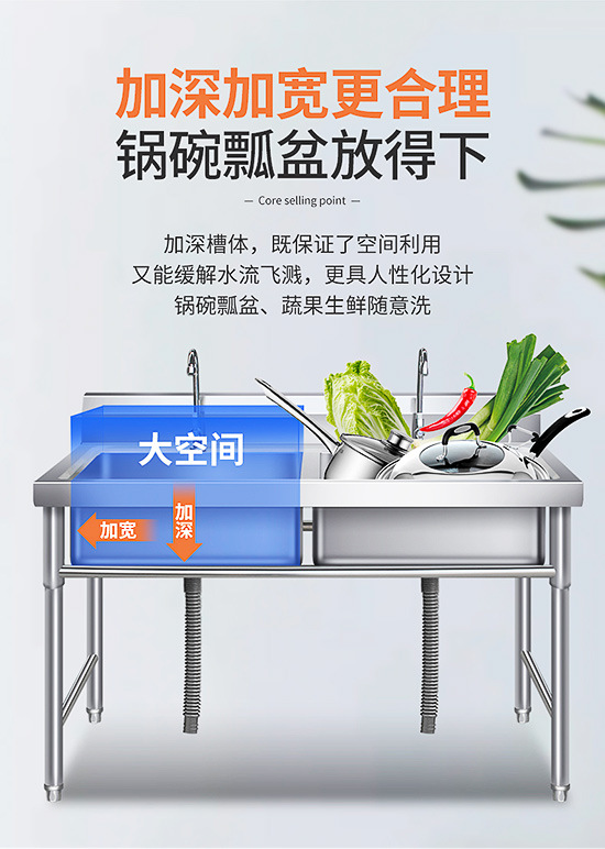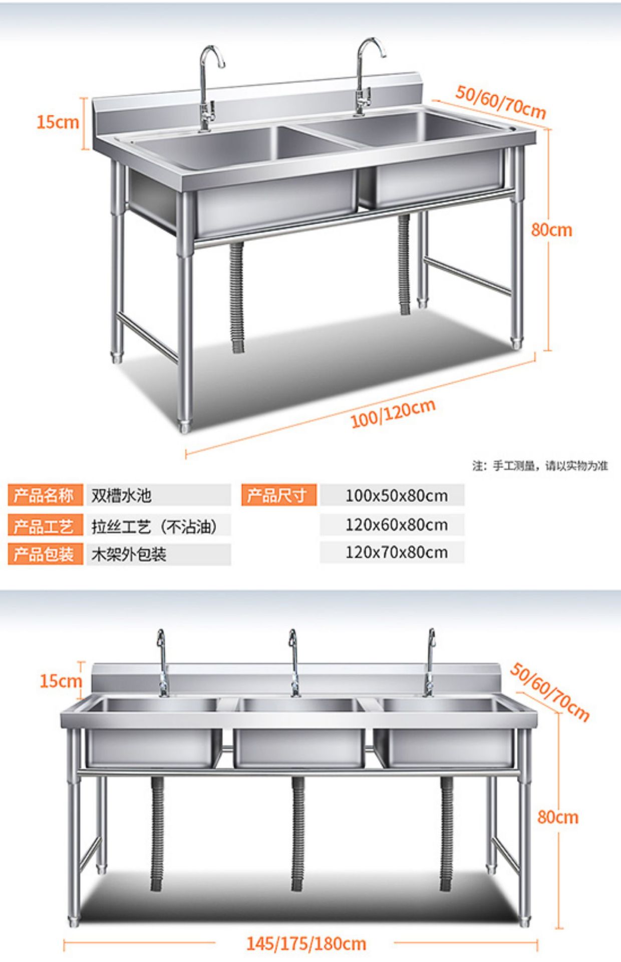 플랫폼 상업용 싱크대 가정용 세척 분지 스테인레스 스틸 싱크 싱크 싱크 싱크와 싱글 및 더블 3 싱크 주방 야채 싱크스토어 가기