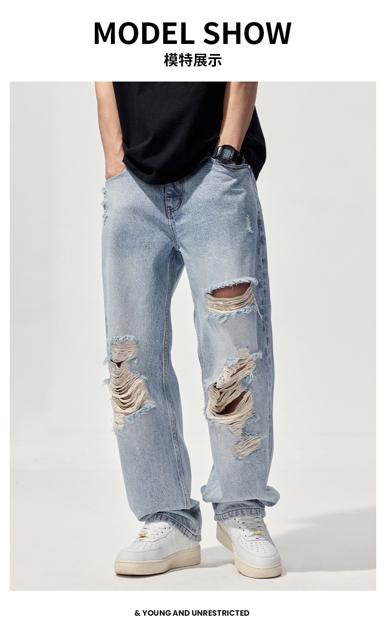 찢어진 청바지 남성 스트레이트 루즈 트렌디 브랜드 2025 여름 새로운 스타일 펜던트 미국 캐주얼 봄과 가을 바지스토어 가기