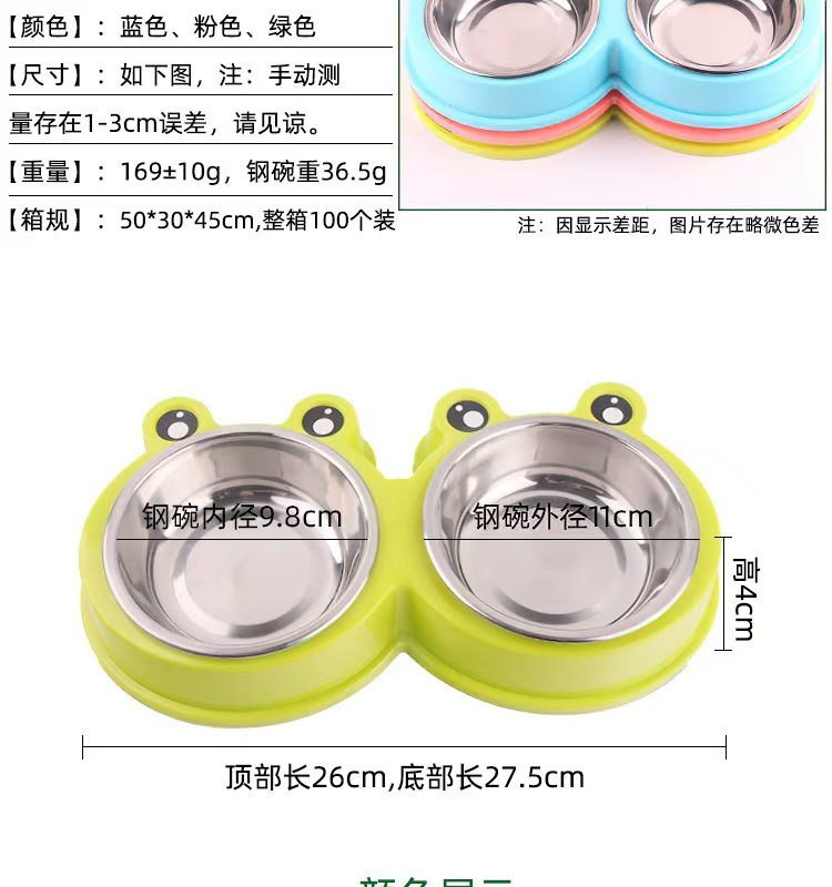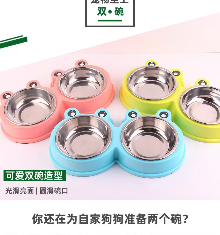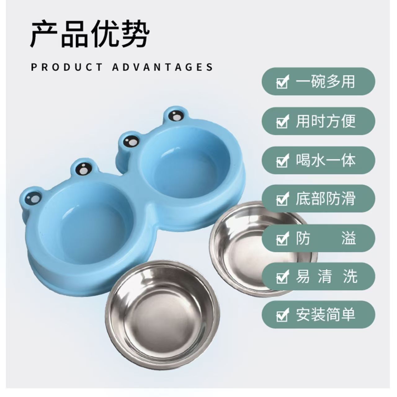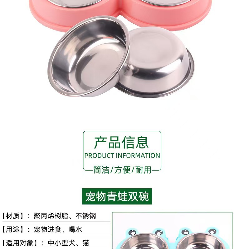 이중 목적 미끄럼 내구성있는 애완 동물 용품을 마시고 먹기위한 새로운 고양이, 개 및 개구리 더블 볼 스테인레스 스틸 애완 동물 피더